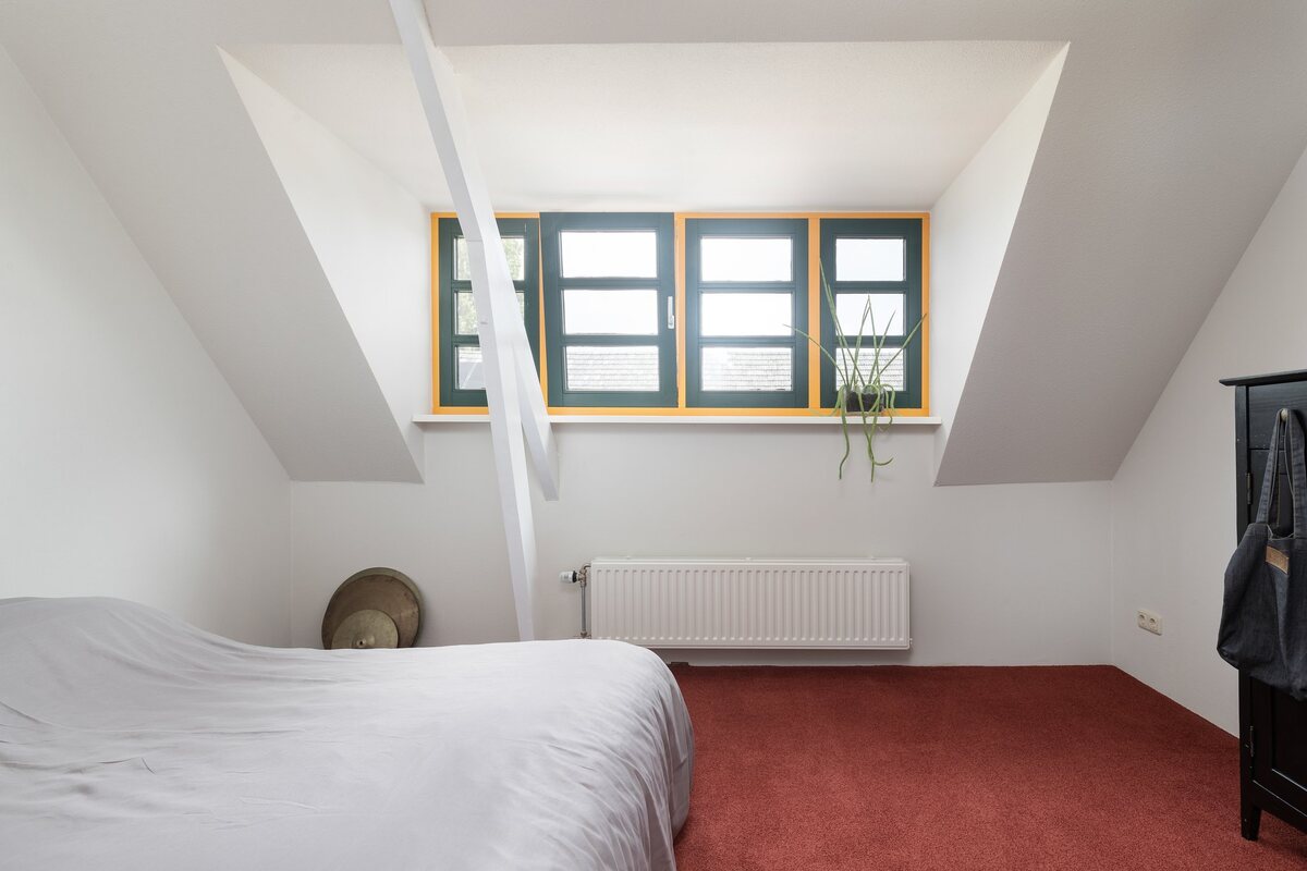 Tweede verdieping: ruime overloop met toegang tot twee slaapkamers van beide ca. 11m². Daarnaast is er nog een wasruimte aanwezig. Hier hangt tevens de c.v. ketel. Vanaf de overloop is er via een vlizotrap nog toegang tot een ruime bergzolder.