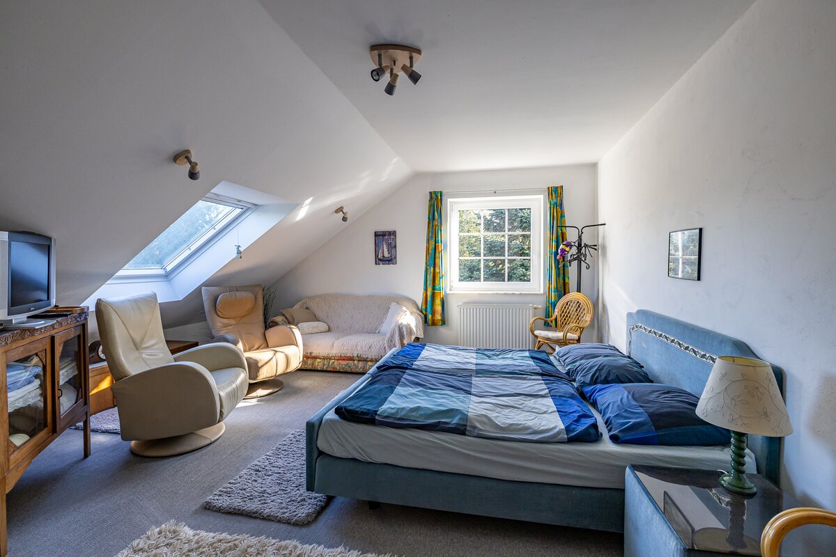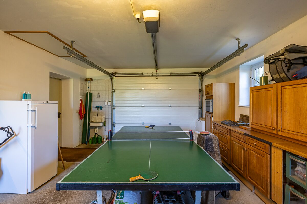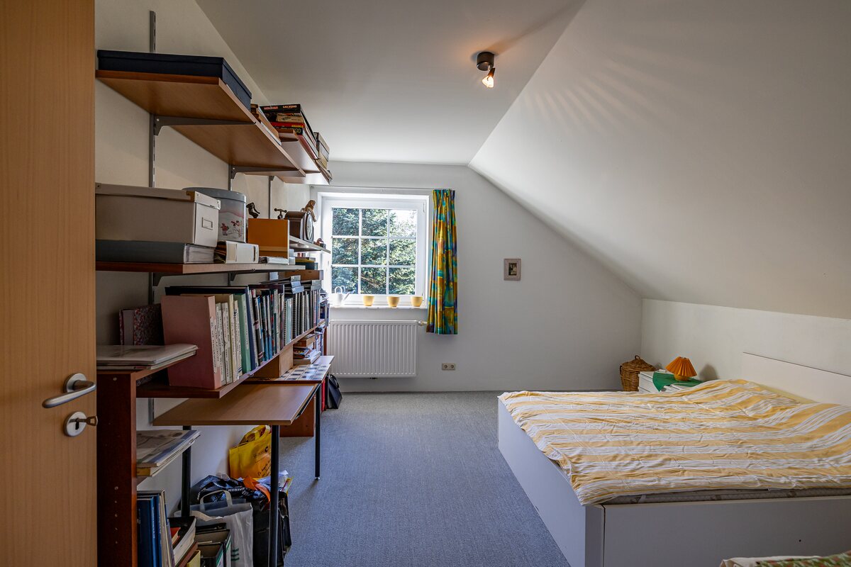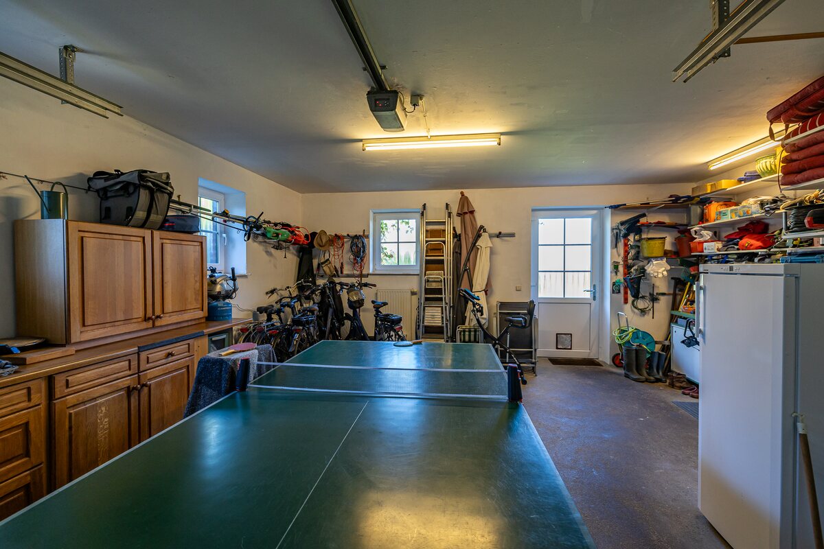 Begane grond: hal/entree, toilet, tuingerichte living (ca. 56 m2) v.v. schuifpui naar terras, half open keuken v.v. diverse inbouwapparatuur en een 2e schuifpui, bijkeuken (10 m2) v.v. wasmachineaansluiting en tuindeur. Via de hal ook toegang tot de ouderslaapkamer (15 m2)en aansluitend de eerste badkamer met douche en wastafel.De grote garage (34 m2) is ook te bereiken via de bijkeuken. Tevens met grote bergzolder.Eerste verdieping: overloop, 3 grote slaapkamers (22, 18 en 14 m2, grote berging met cv-opstelling en een tweede badkamer (9 m2) met ligbad, 2e toilet, douche en wastafel. Tweede verdieping: vlia vlizotrap: bergzolder (bruto 28 m2).