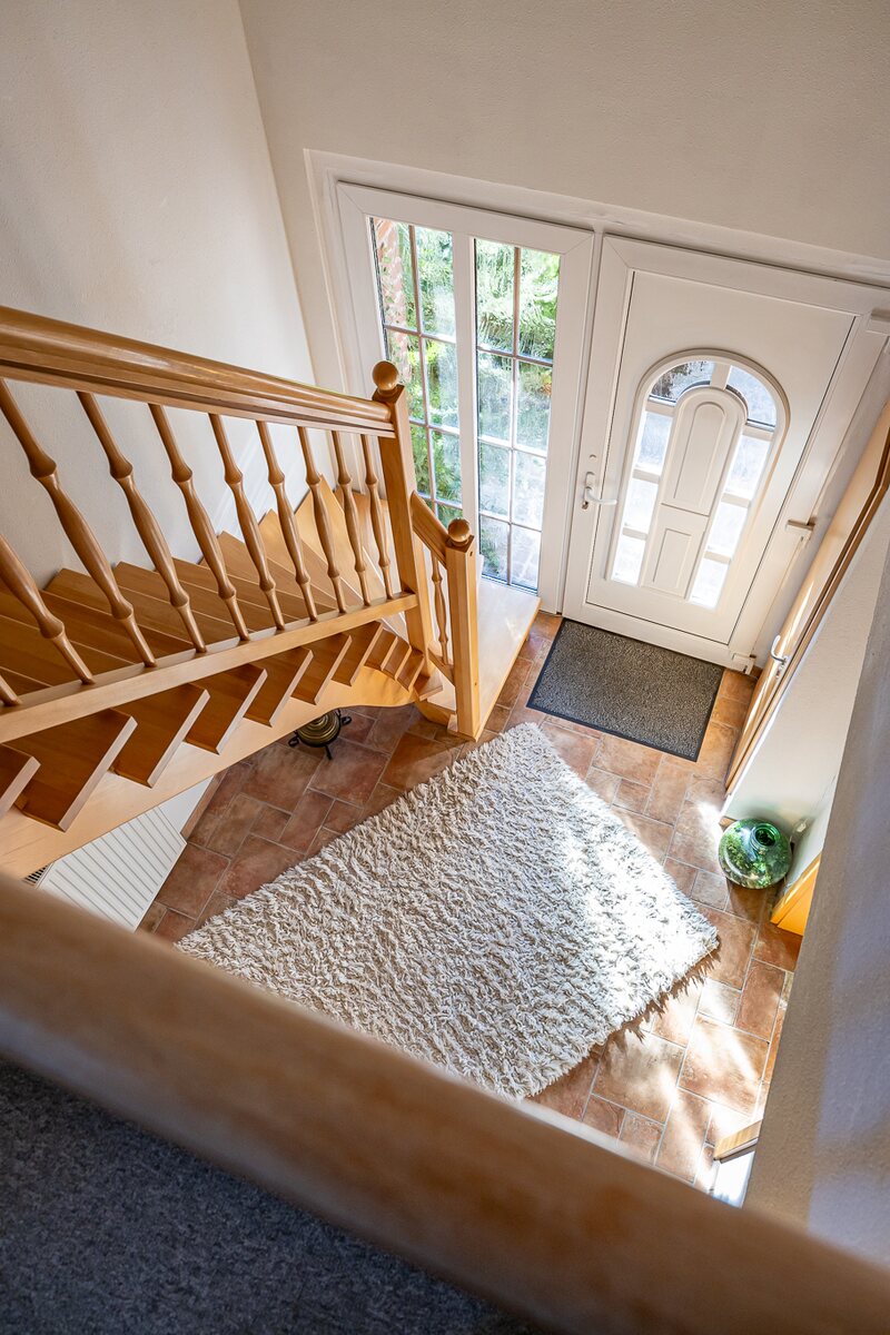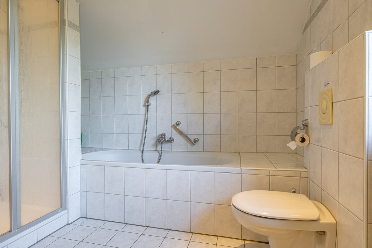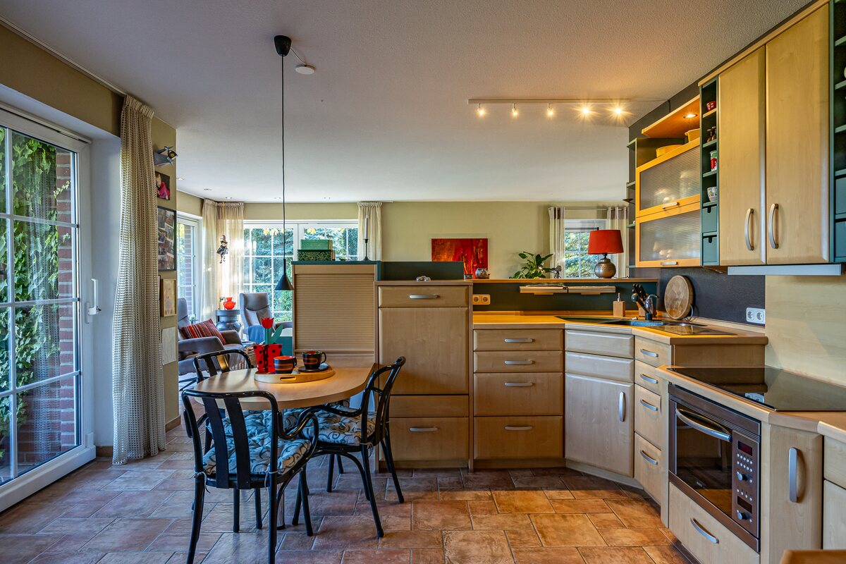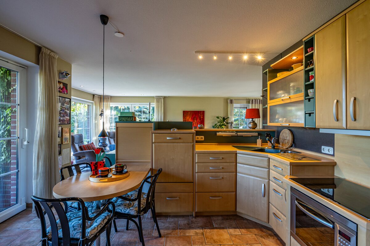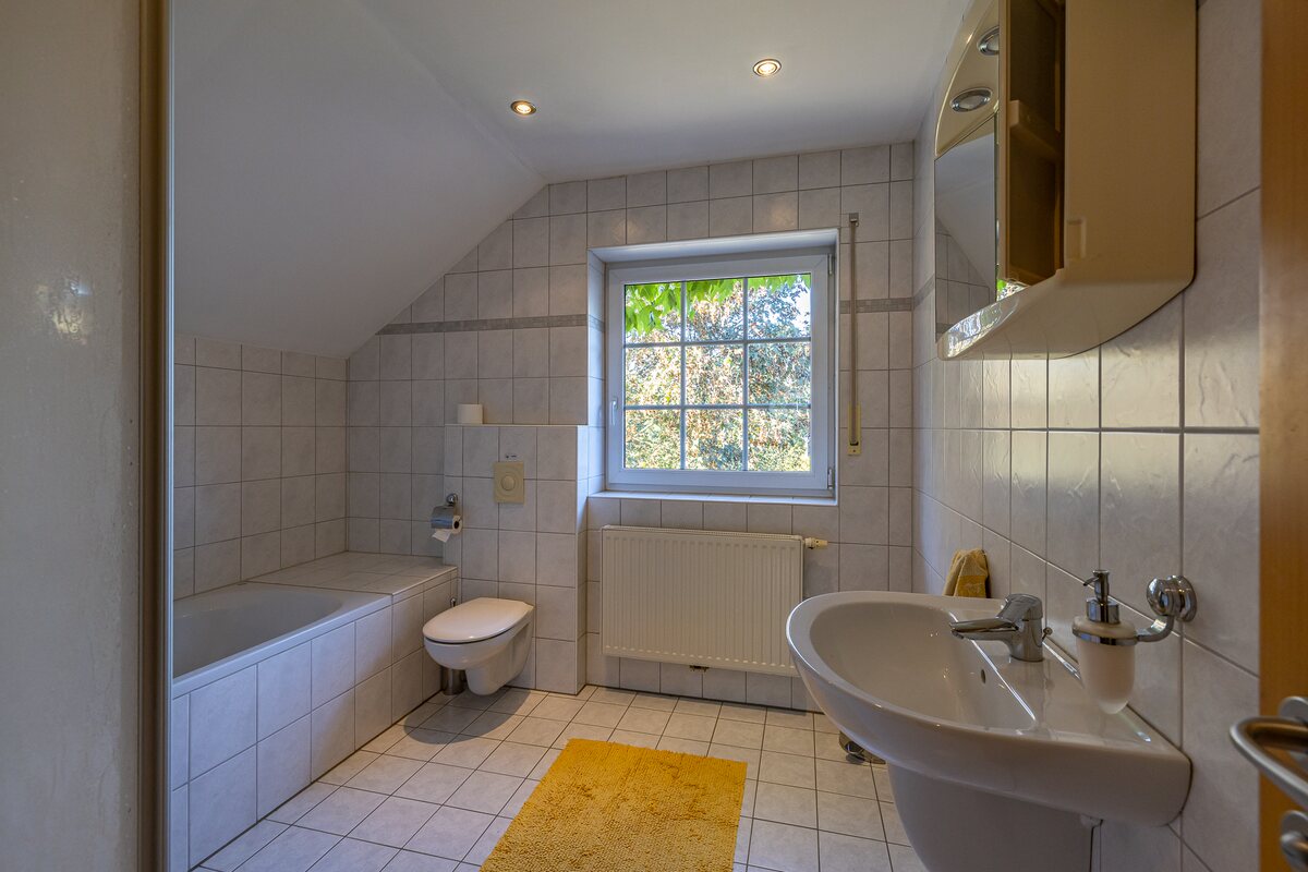 Begane grond: hal/entree, toilet, tuingerichte living (ca. 56 m2) v.v. schuifpui naar terras, half open keuken v.v. diverse inbouwapparatuur en een 2e schuifpui, bijkeuken (10 m2) v.v. wasmachineaansluiting en tuindeur. Via de hal ook toegang tot de ouderslaapkamer (15 m2)en aansluitend de eerste badkamer met douche en wastafel.De grote garage (34 m2) is ook te bereiken via de bijkeuken. Tevens met grote bergzolder.Eerste verdieping: overloop, 3 grote slaapkamers (22, 18 en 14 m2, grote berging met cv-opstelling en een tweede badkamer (9 m2) met ligbad, 2e toilet, douche en wastafel. Tweede verdieping: vlia vlizotrap: bergzolder (bruto 28 m2).