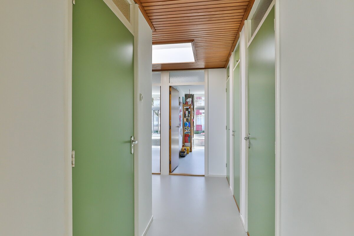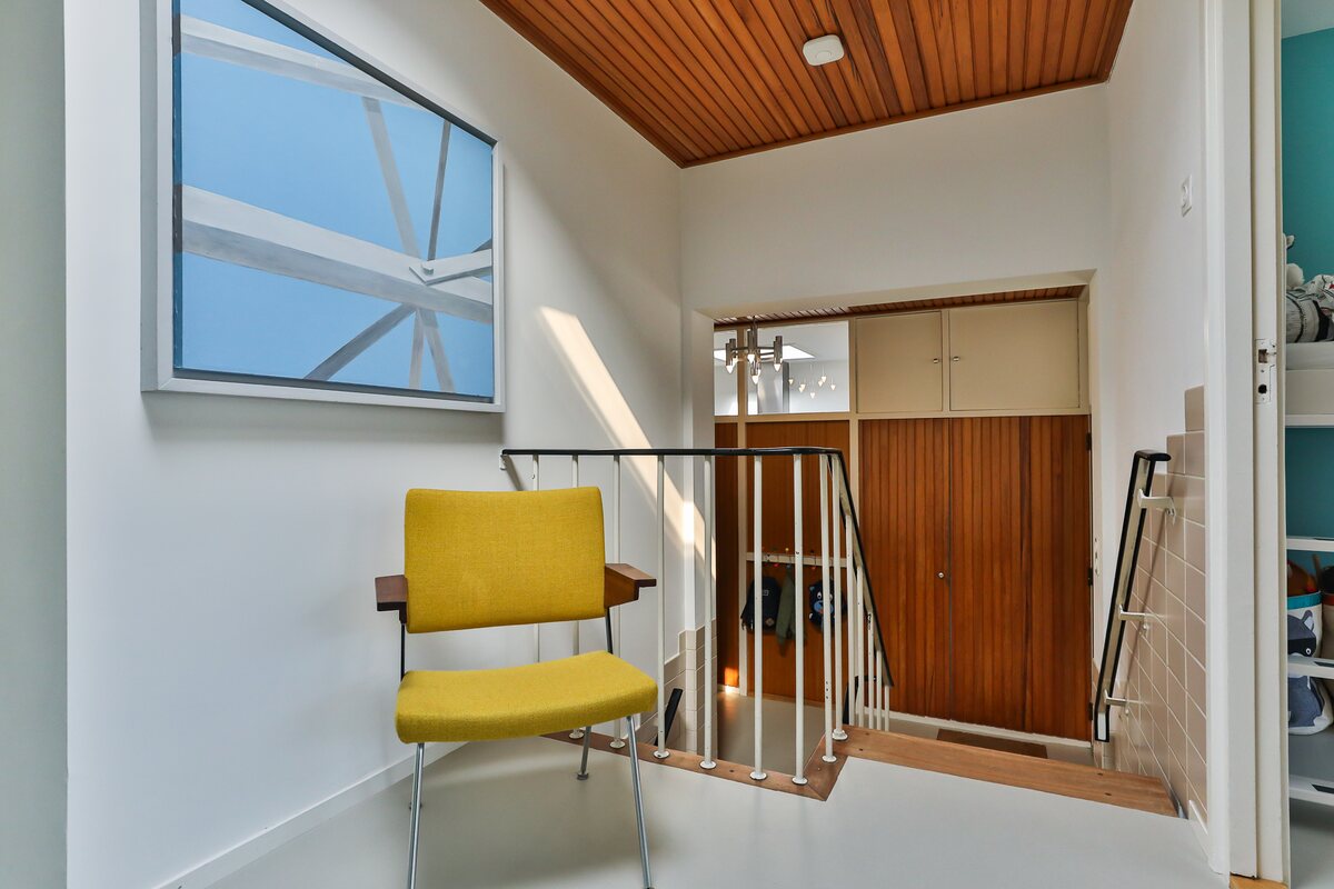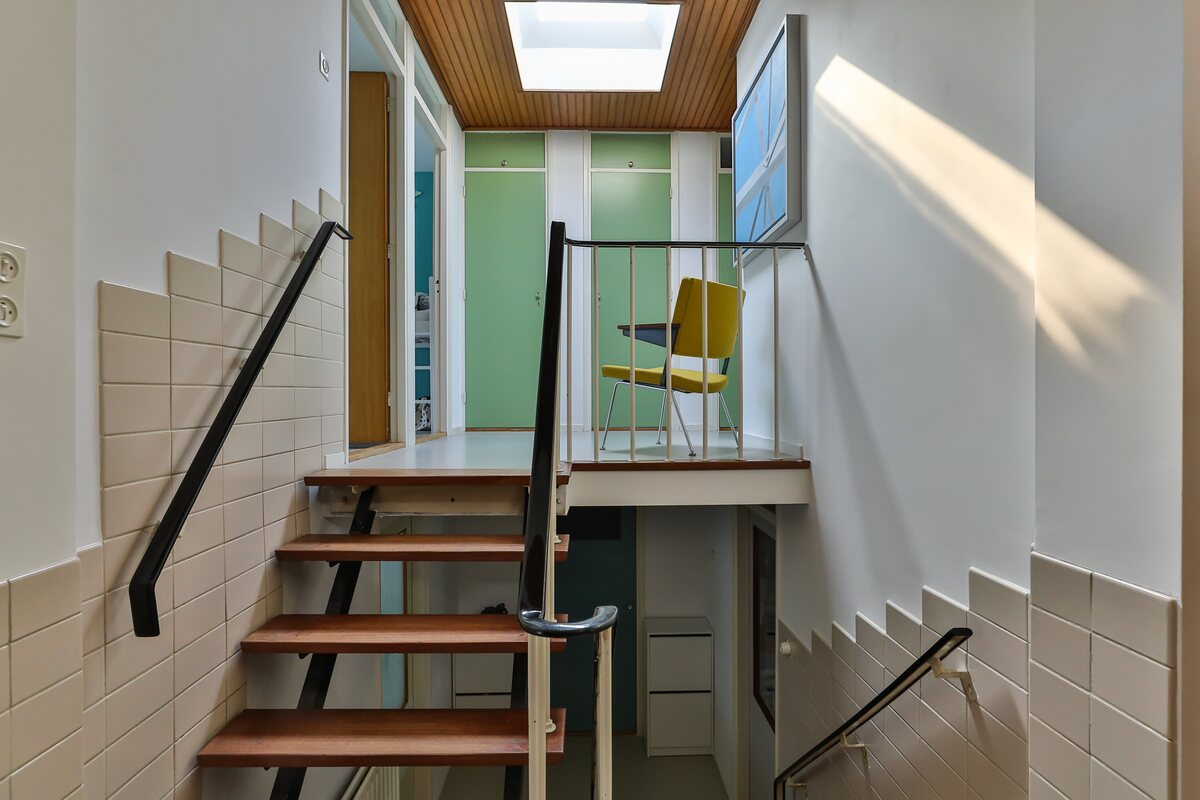 Verkopers aan het woord:In 2011 kochten wij deze geweldige split-level woning aan de Groen van Prinstererlaan. We waren op slag verliefd opdit huis. We vielen voor de entree, met de prachtige Japanse Esdoorn en de royale hal met de fraaie tegeltjes, maarbovenal op de jaren '60 vibe die het huis heeft. De woning werd in 1963 door het Bouwfonds gerealiseerd, door hetRotterdamse architectenbureau Margry en Jacobs (de basis voor het hedendaagse MAS Architectuur). Het split-levelontwerp maakt dat je met relatief kleine bewegingen over de korte trappen heel snel door alle drie de lagen van hethuis navigeert en dat je makkelijk in contact staat met alle verblijven. Typisch voor de tijd is de hoeveelheid glas enlicht. Er is veel contact met buiten, maar tegelijk is er ook veel privacy: aan de achterzijde is er geen bebouwing enzowel voor als achter is er een tuin.