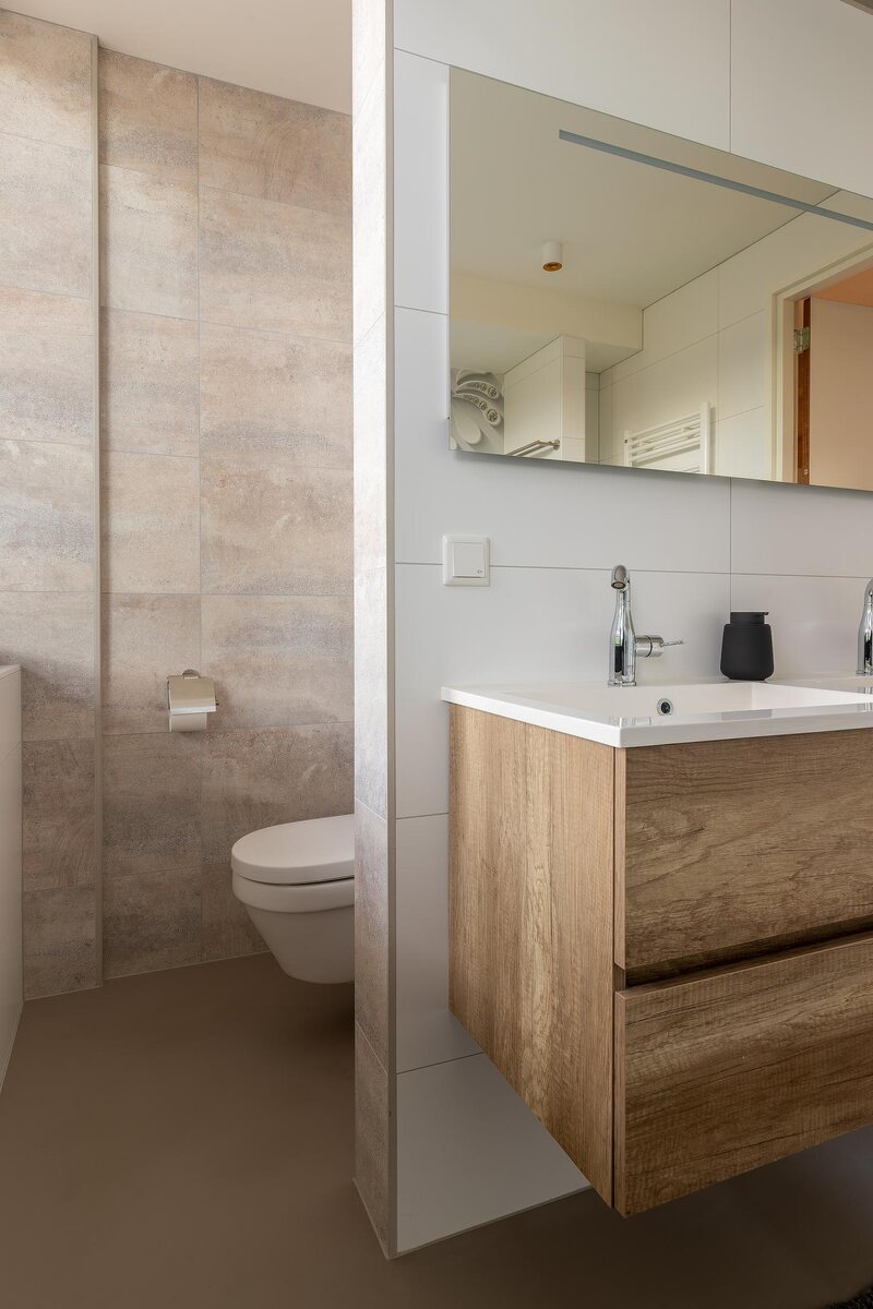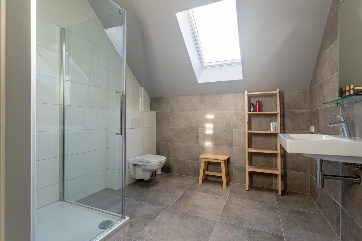Verdieping: overloop met toegang tot een grote slaapkamer (ca. 22 m2) en een tweede badkamer (ca. 8 m2 met douche, toilet, vaste wastafel en een dakraam).Een grote multifunctionele ruimte (ca. 51 m2) met dakramen en de technische ruimte (warmtepomp, WTU en omvormer) geeft diverse gebruiksmogelijkheden. Doorloop naar de entresol (ca. 22 m2).