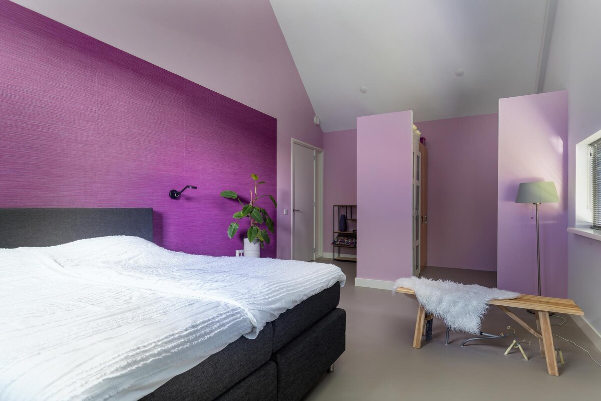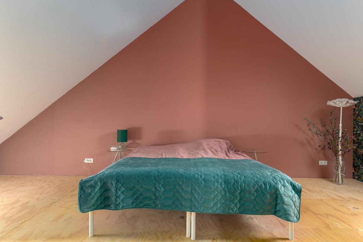 Riante slaapkamer aan de voorzijde (27 m2 inclusief walk-in-closet) met vide tot aan de nok. Aansluitingen voor een eigen open badkamer. (Deze kamer kan ook gebruikt worden als praktijkruimte)Middels een tussenhal vanaf de gang zijn twee ruime slaapkamers (beide 17 m2) bereikbaar met een comfortabele en strakke badkamer (10 m2) die is voorzien van ligbad, inloopdouche, wastafelmeubel en toilet. Een gastentoilet bevindt zich in de hal naast de trap. Inpandige bijkeuken (ca. 4 m2 met wasmachine aansluiting)