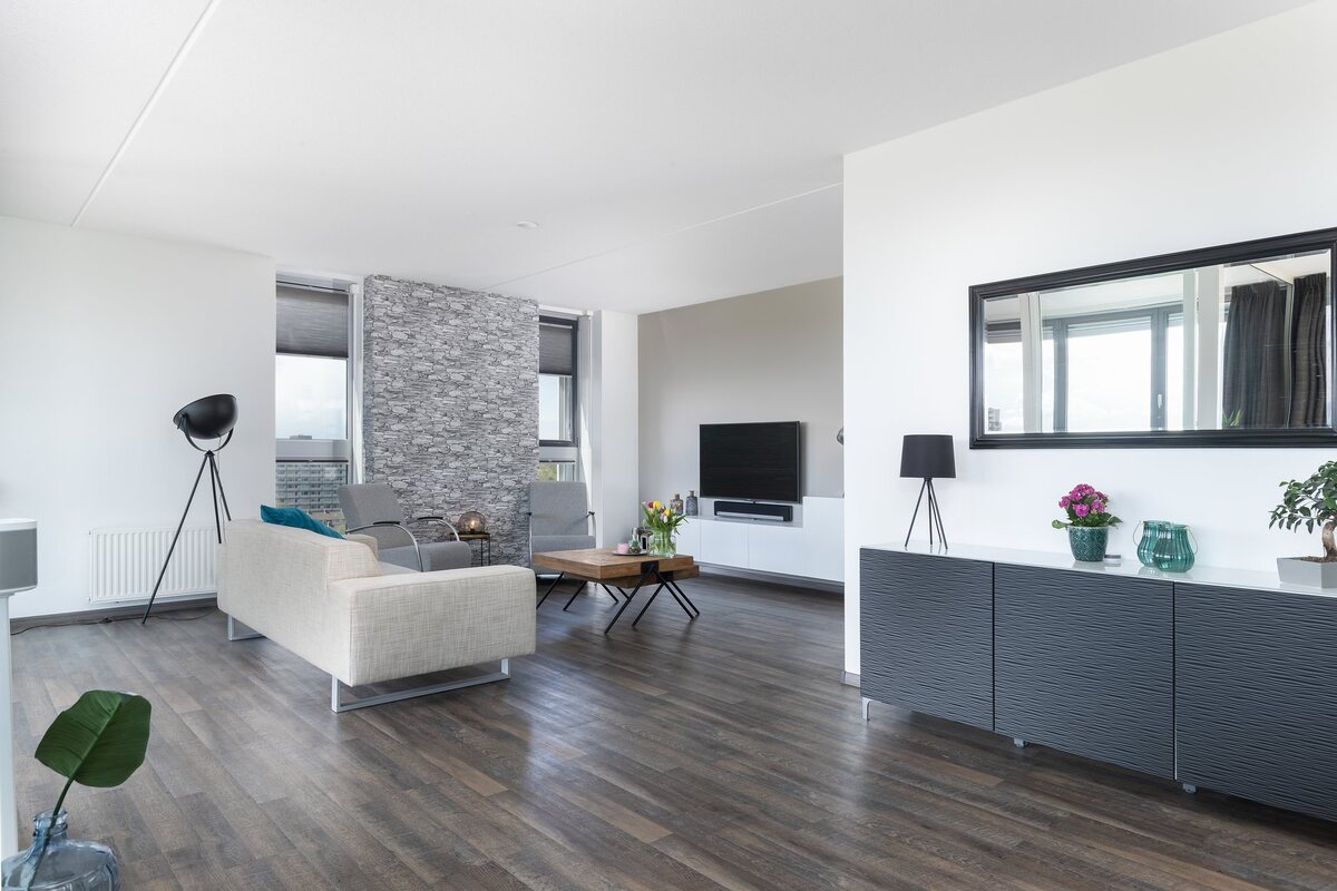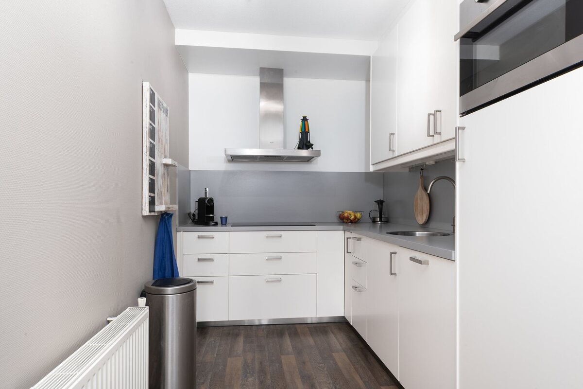 Entree/hal, badkamer met douchecabine, ligbad en wastafelmeubel. Separate bergruimte met plaats voor wasmachine en droger, separaat toilet met fonteintje. Vanuit de hal zijn de 2 slaapkamers van ca. 13 en 16 m2 bereikbaar. De riante en lichte living met open keuken en serre/wintertuin, heeft een woonoppervlak van maar liefst 60 m2! Het moderne keukenblok (2015) in L-opstelling is voorzien van inbouwapparatuur.