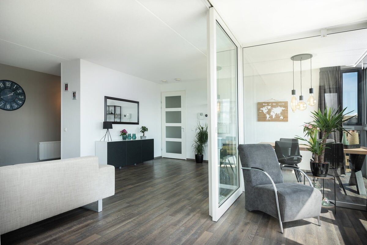 De wintertuin staat voor meer dan een tuin en draagt in elk seizoen bij aan uw woonplezier. De wintertuin is een bijzonder element in het ontwerp. Het houdt in dat een deel van de woonkamer, namelijk het gedeelte dat enigszins uit de gevel steekt, is voorzien van een meerdelig vouwraam dat men kan samenvouwen tot op de wand, waardoor er een soort inpandig balkon ontstaat. Zo kunt u binnen toch buiten zitten!