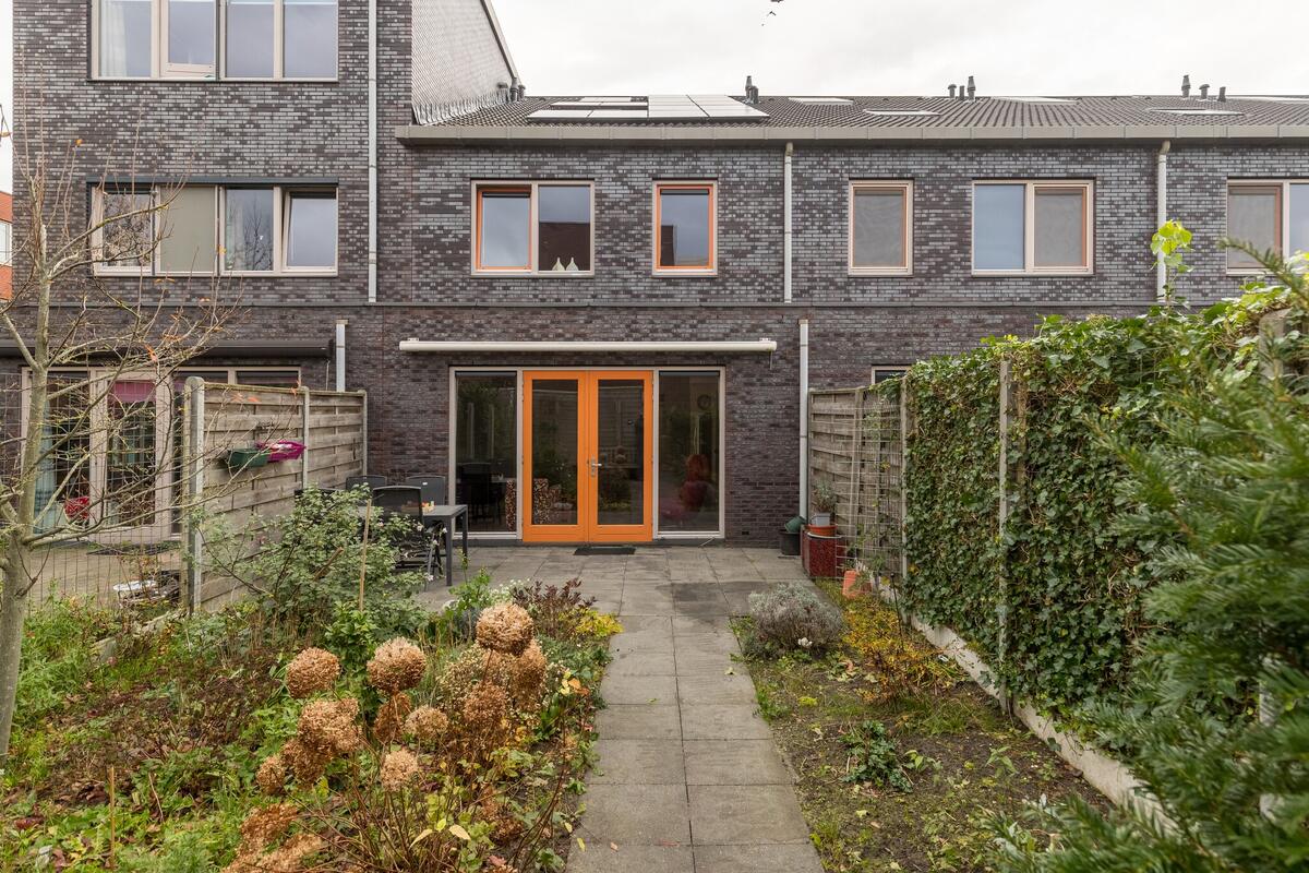 Begane grond: entree, ruime (9 m2) hal, toilet met fonteintje, trapopgang en doorloop naar de woonkamer.Ruime en tuingerichte woonkamer (ca. 34 m2) met laminaatvloer, openslaande deuren naar de tuin en een diepe inloopkast onder de trap.Verzorgde semi-open keuken met inbouwapparatuur (ca. 14 m2 - 2008) met grote raampartij, inductiekookplaat, filterkap, vaatwasser, combi-oven, losse koel-vriescombinatie en een separaat wandmeubel.