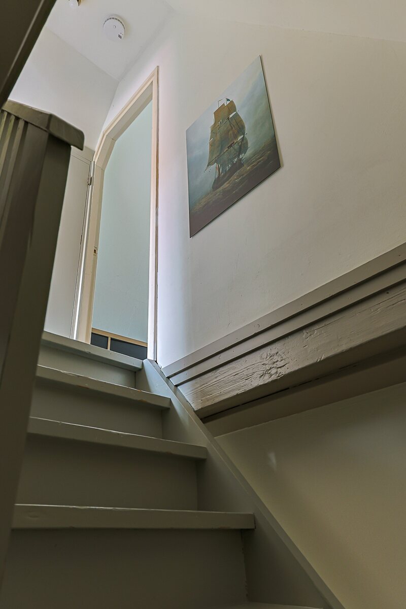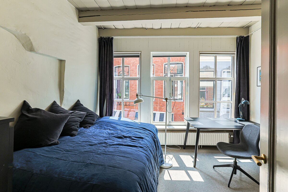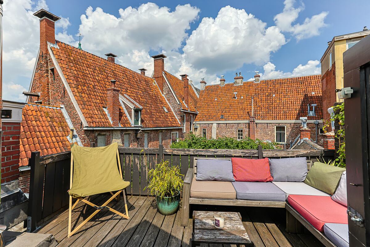 Begane grond: entree, sfeervolle living (oude balken in het zicht) met aan de achterzijde de keuken uit 2016 en een fraaie houtkachel. Deur naar de besloten plaats. Living heeft een grootte van 33 m2.Eerste verdieping: overloop, 2 slaapkamers (15 en 14 m2) en een moderne nieuwe badkamer (2022) van 2 m2. Separaat toilet. De slaapkamer aan de achterkant, die uitkijkt op een van de oudste hofjes van Groningen, geeft je het gevoel van rust in de normaal zo drukke binnenstad. Dit uitzicht is prachtig met al dat groen voor je raam. Tweede verdieping: overloop, aan de voorzijde de derde slaapkamer en aan de achterzijde een vierde kamer die nu in gebruik is als waskamer. Van hieruit is het fraaie dakterras (12 m2) te bereiken. Vanaf het dakterras heb je prachtig uitzicht op de Aa-kerk en ook hier ervaar je een stilte die niet gebruikelijk is in de stad.