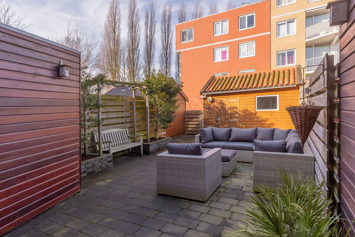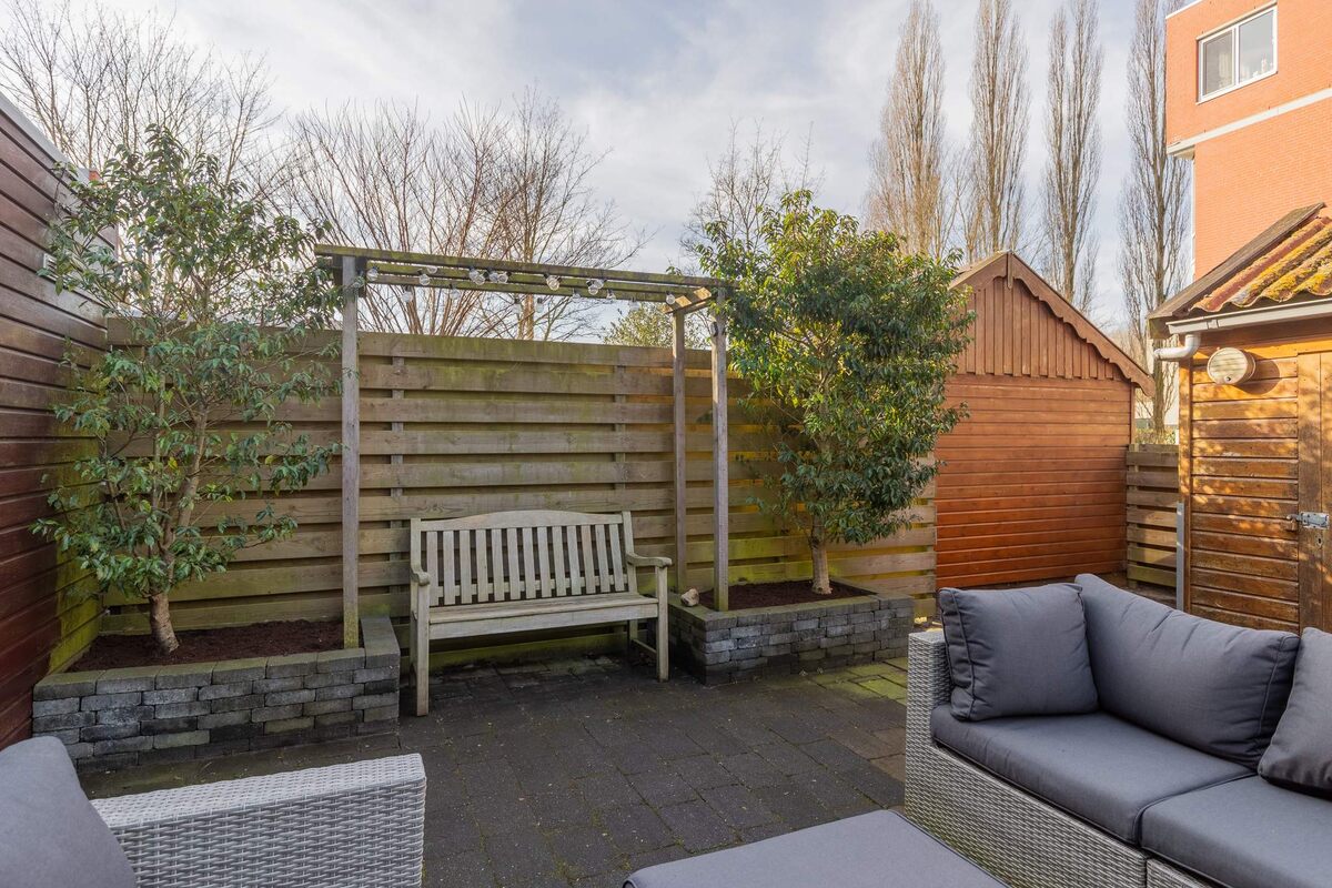 Tuin: Nette en zonovergoten achtertuin met grote vrijstaande houten berging en achterom. 's Zomers de gehele dag in de zon.