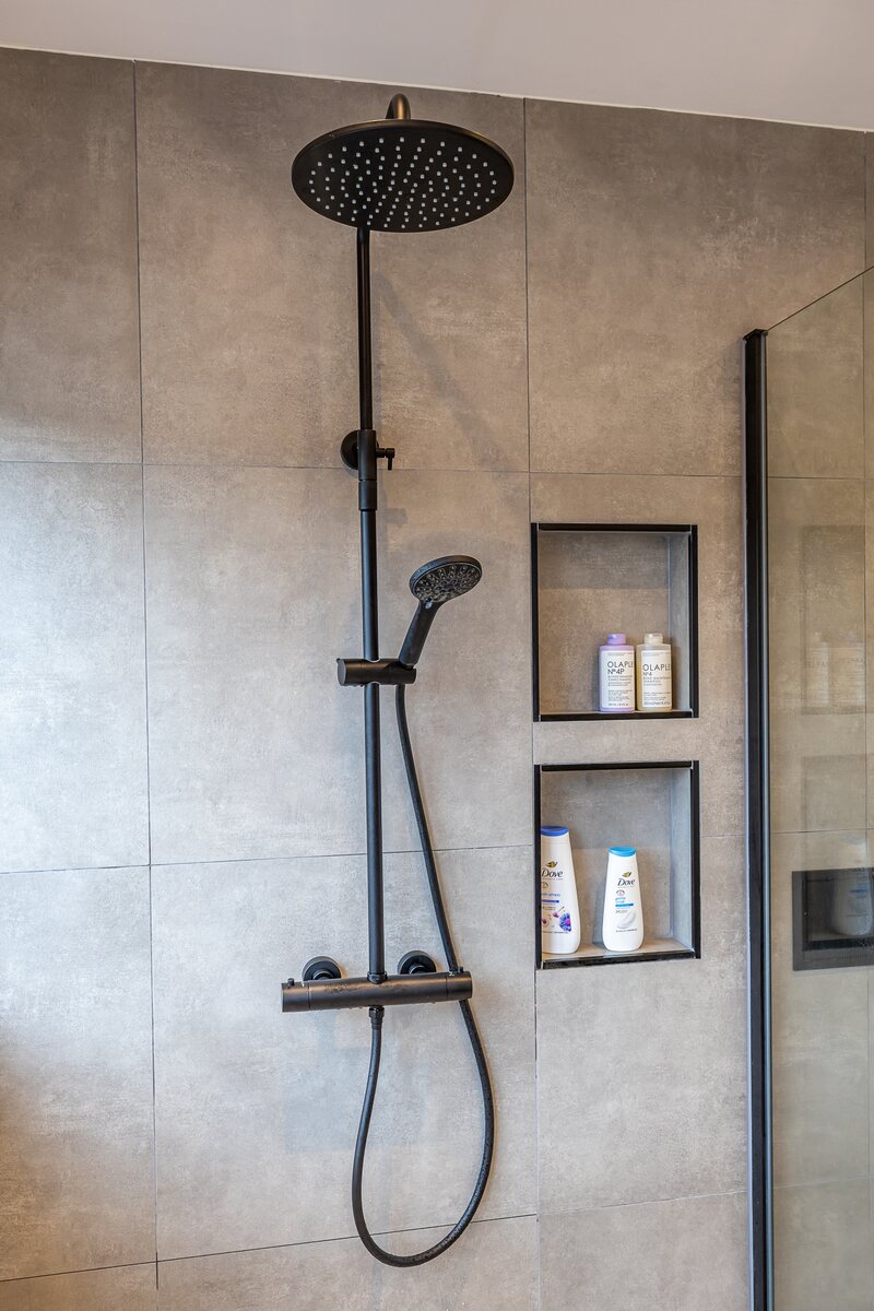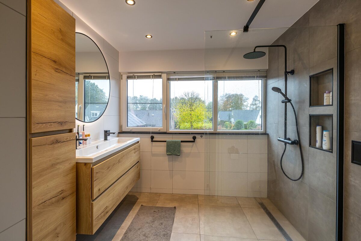 Verdieping: overloop.Twee slaapkamers van ca. 13 en 9 m2.Fraaie en moderne badkamer (ca. 6 m2, dakkapel) met grote inloopdouche, toilet en wastafelmeubel.