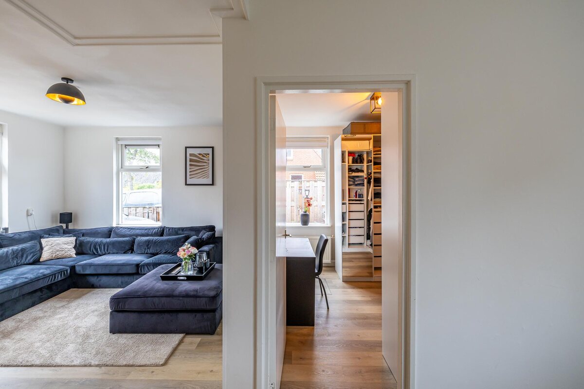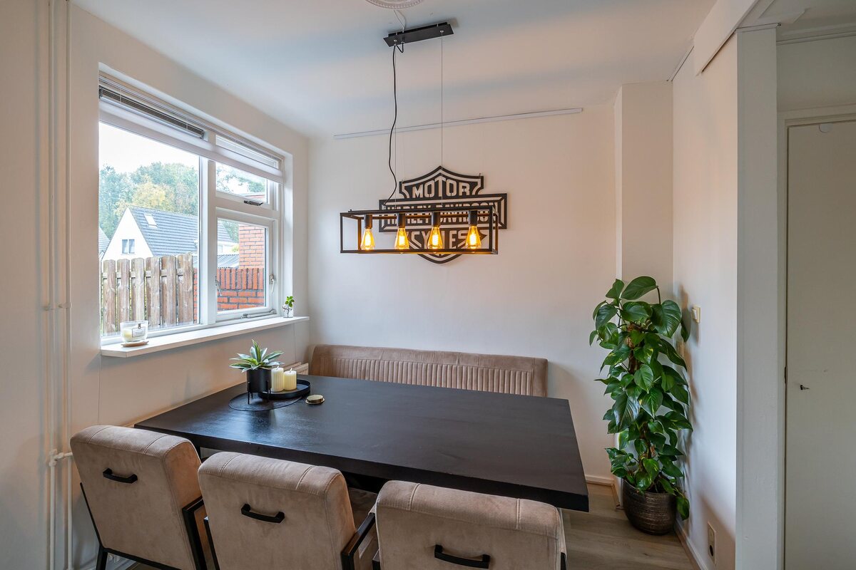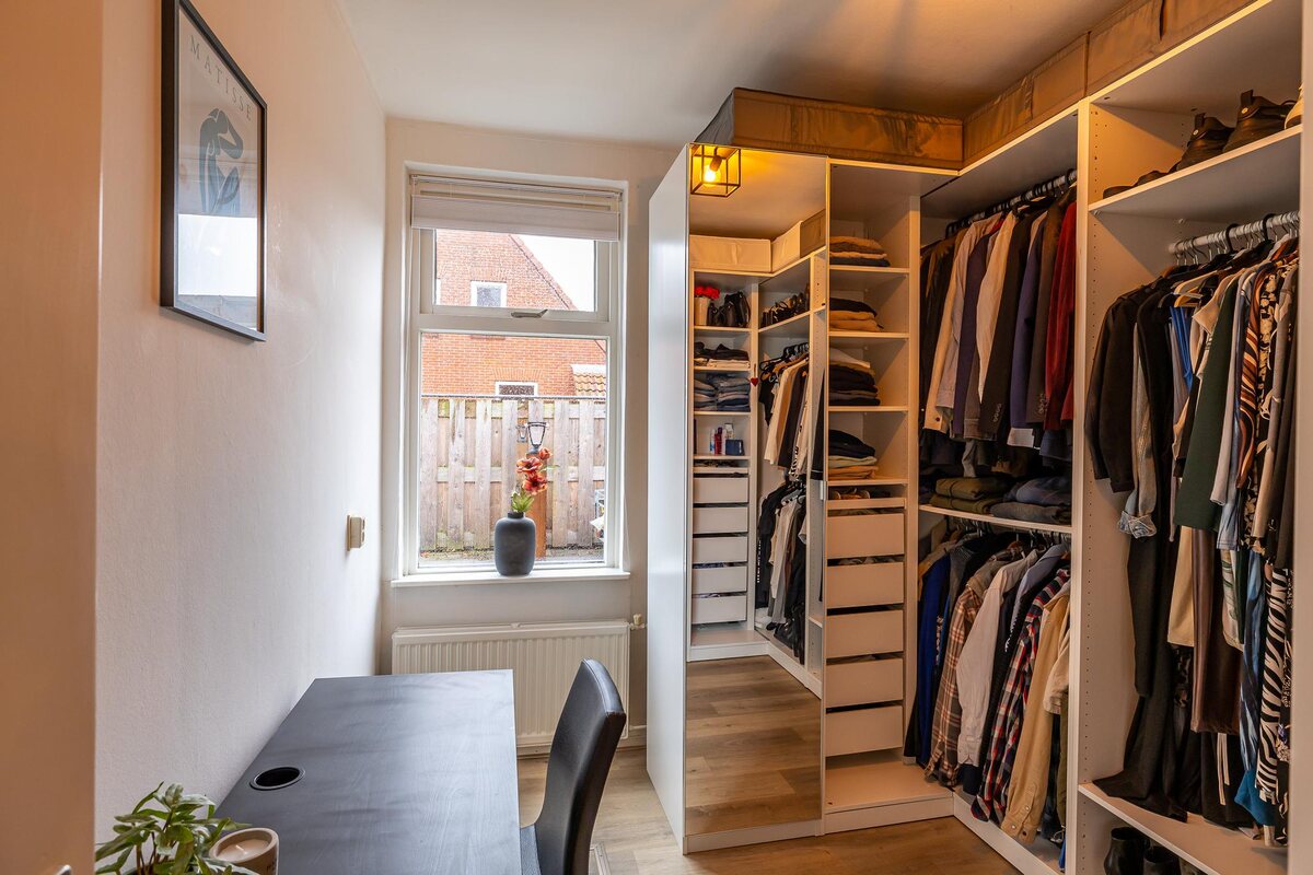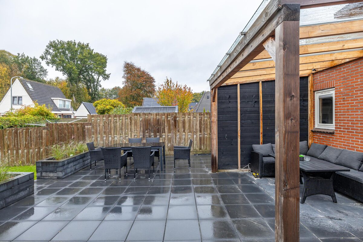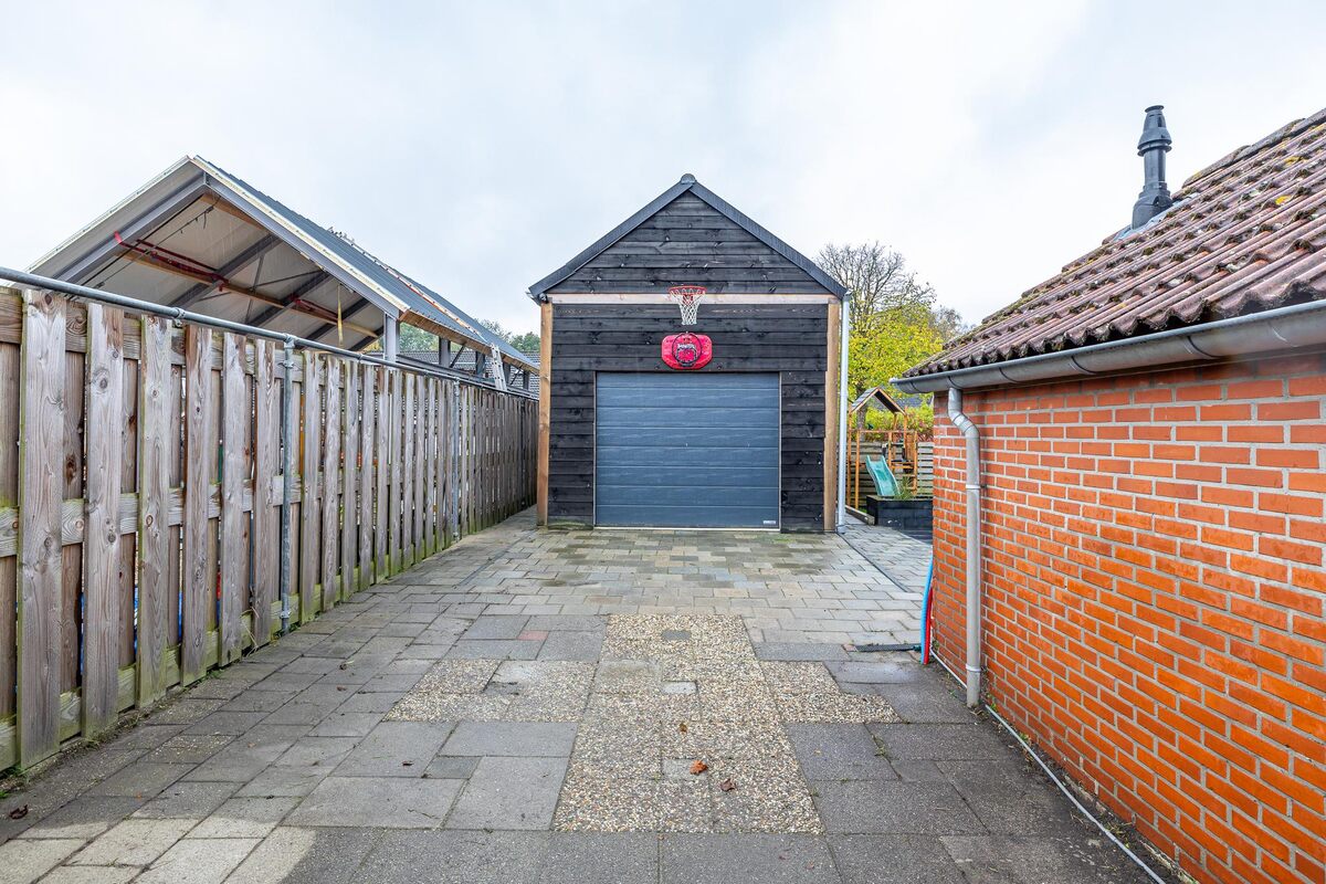 Heerlijke zonovergoten achtertuin (zuidwesten, ca. 20 m. diep) met overdekt terras, gazon een een geweldige kapgarage.De garage (ca. 3,80 bij 9,75 m.) is volledig geïsoleerd, heeft een hoog plafond en een royale zolder.Naast de woning is er ruimte voor ca. 4-5 auto's.