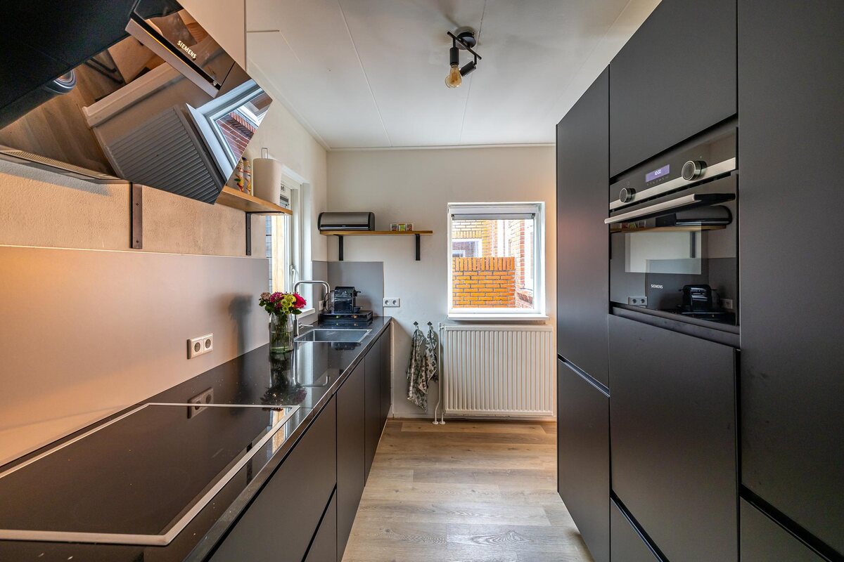 Aan een rustige straat in Harkstede gelegen, uitermate compleet en volledig gemoderniseerd helft van een dubbel woonhuis met gezellige woonkamer, eetkamer, werkkamer, moderne keuken en bijkeuken op de begane grond. Twee slaapkamers en een gave badkamer op de verdieping. Riante achtertuin, grote kapgarage en eigen oprit voor meerdere auto's. Uitermate goed onderhouden en goed geïsoleerd (vloer-, spouw- en dakisolatie, volledig voorzien van HR++ glas - energielabel...)Begane grond: