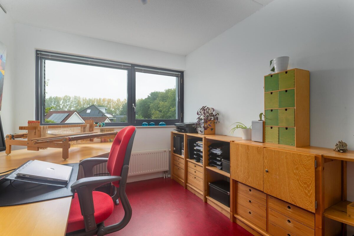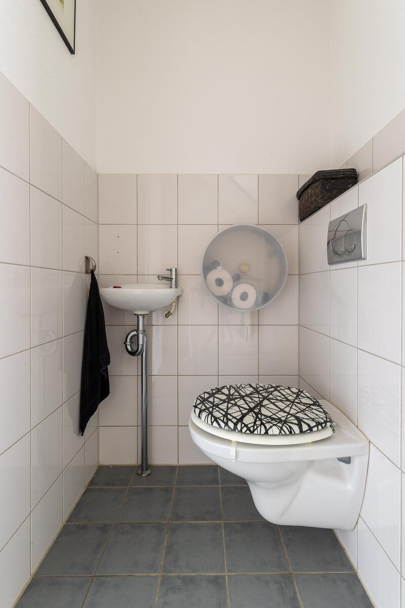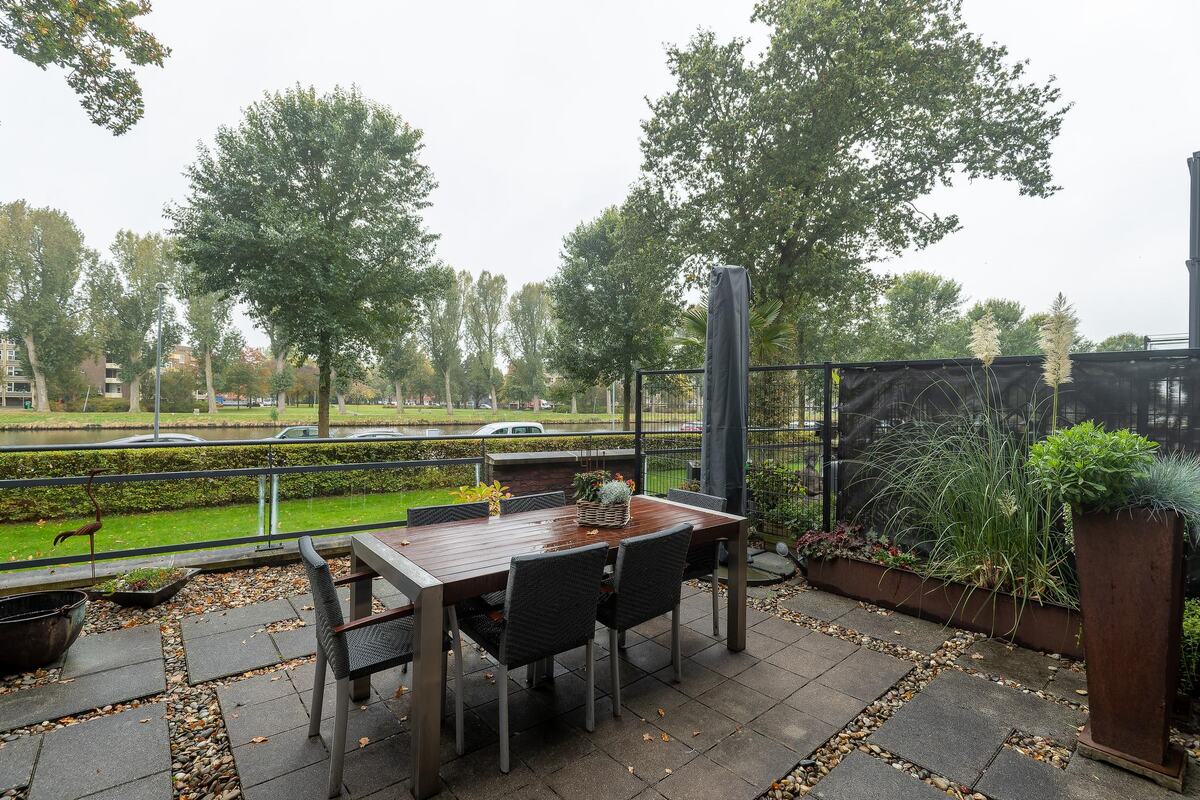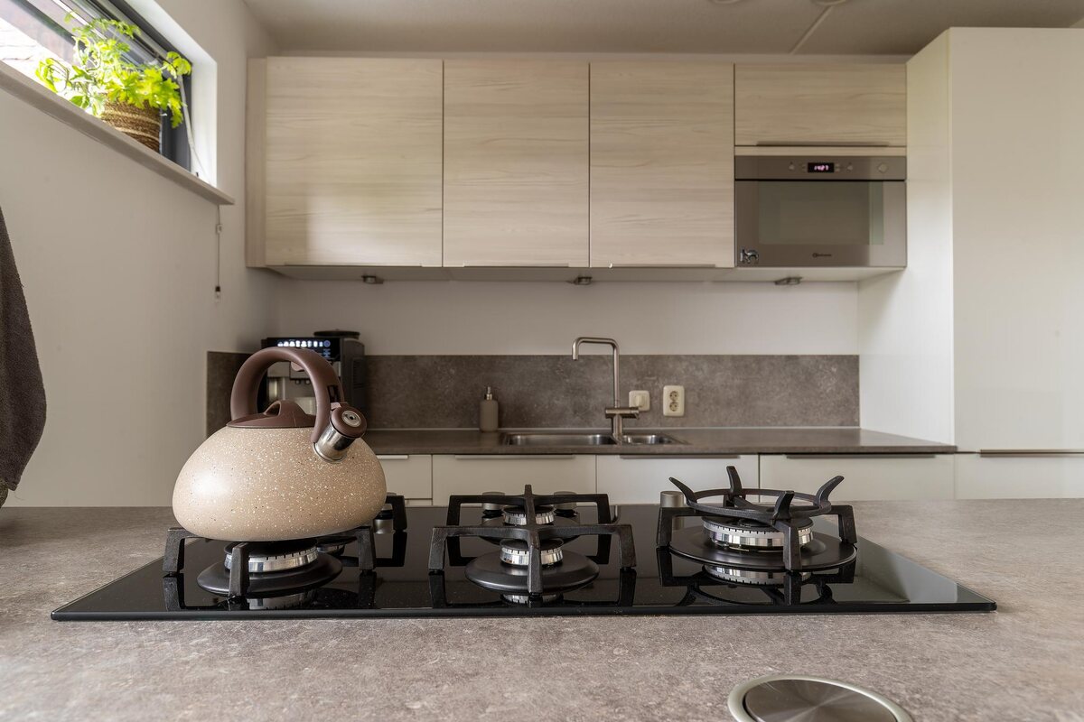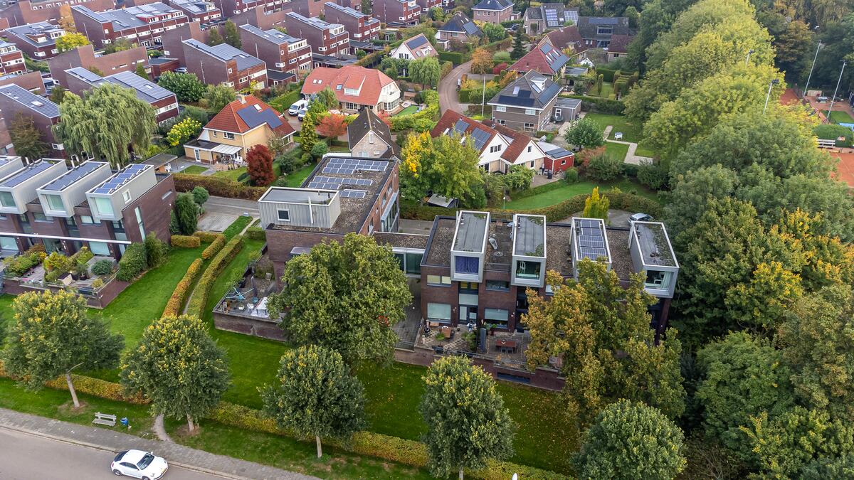 Entree/hal met toilet, deur naar de garage en het basement en trap naar de woonkamer.Unieke woonkamer (ca. 25 m2, plafond op ca. 3,7 meter, grote glaspui op zuid) met erker, openslaande deuren naar de tuin en opstap naar de keuken.Vanuit de woonkamer toegang tot een zonnig terras van ca. 29 m2 aan op het zuid/westen. Heerlijke woonkeuken (ca. 32 m2) met unieke vloer, een balkon naar de woonkamer en een luxe keukeninrichting (2018). Wandmeubel met koelvriescombi, magnetron en een vaatwasser. Kookeiland met gaskookplaat, multifunctionele oven en een op maat gemaakte koof met afzuiginstallatie.
