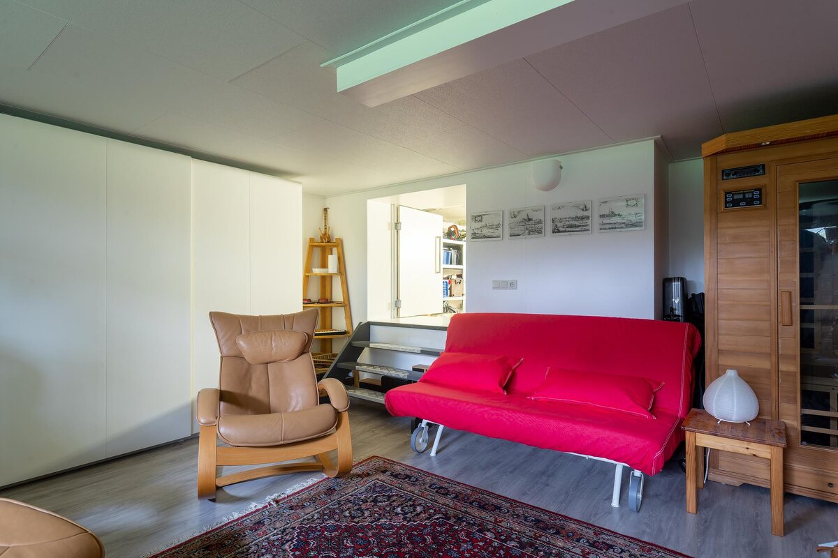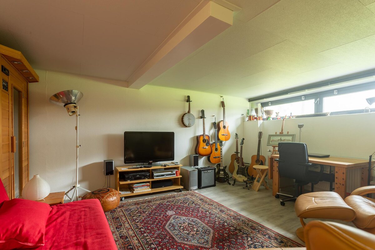Basement: bereikbaar via de garage en een lage doorgang met trap.Met een berging/hobbyruimte van ca. 19 m2 en een multifunctionele ruimte van ca. 24 m2. Geïsoleerd en voorzien van CV verwarming, ramen en een sauna. Plafond op ca. 2,1 m hoogte.