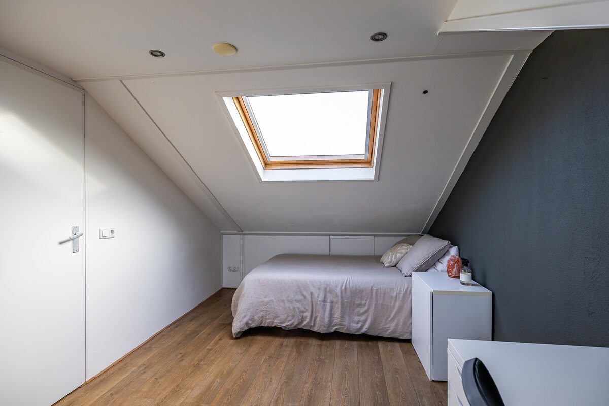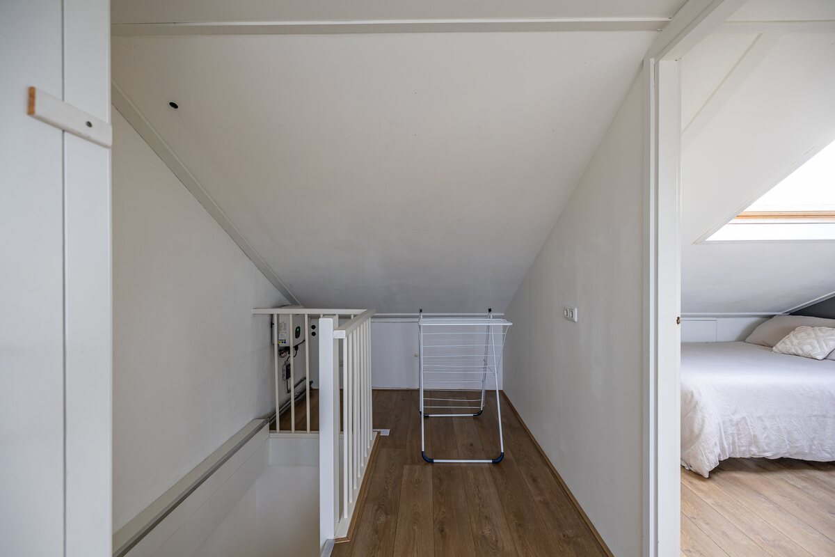 Begane grond: hal/entree met toegang tot de woonkamer en trap naar de verdieping. Gezellige en sfeervolle doorzonwoonkamer met open keuken (totaal ca. 35 m²). Hier ligt een mooie gietvloer met vloerverwarming. Tussenhal met toilet onder de trap. Moderne keuken voorzien van inbouwapparatuur: vaatwasser (2023), koelkast (2023), oven (2019), 5-pits gaskookplaat met afzuigkap en deur naar de tuin.Eerste verdieping: overloop met kast voor de witgoed aansluiting. Twee slaapkamers van beide ca. 13 m², waarvan de slaapkamer aan de voorzijde beschikt over een grote luxe walk-in closet. Nette moderne badkamer (2019) met inloopdouche, tweede toilet en wastafelmeubel.Tweede verdieping: royale overloop met werkplek en kast met de cv-ketel. Grote zolderkamer van ca. 15 m² met dakkapel en bergruimte achter de knieschotten.