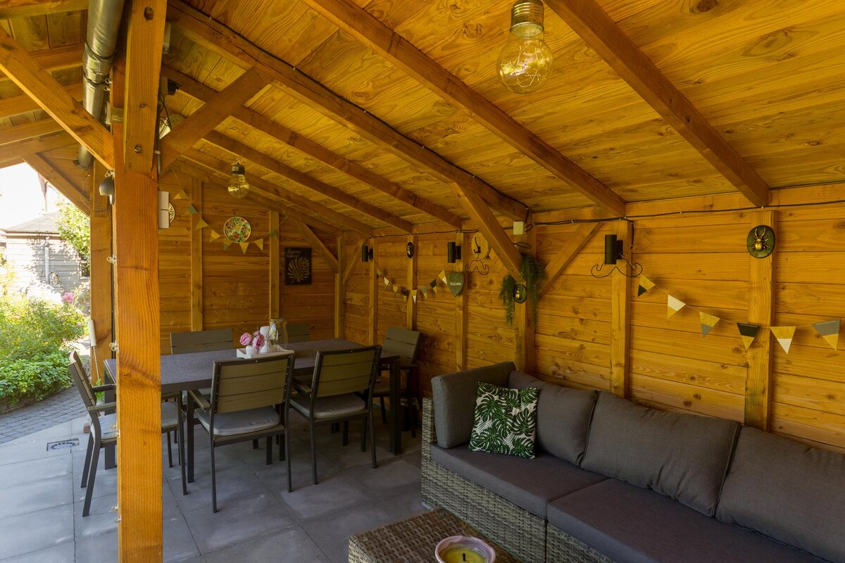 Voor de liefhebber: riante en zonovergoten achtertuin (maar liefst 29 meter diep en 11 meter breed), vol op het zuiden met terrassen, fraaie borders, een gave vrijstaande veranda met mooie houten overkapping en achterom.