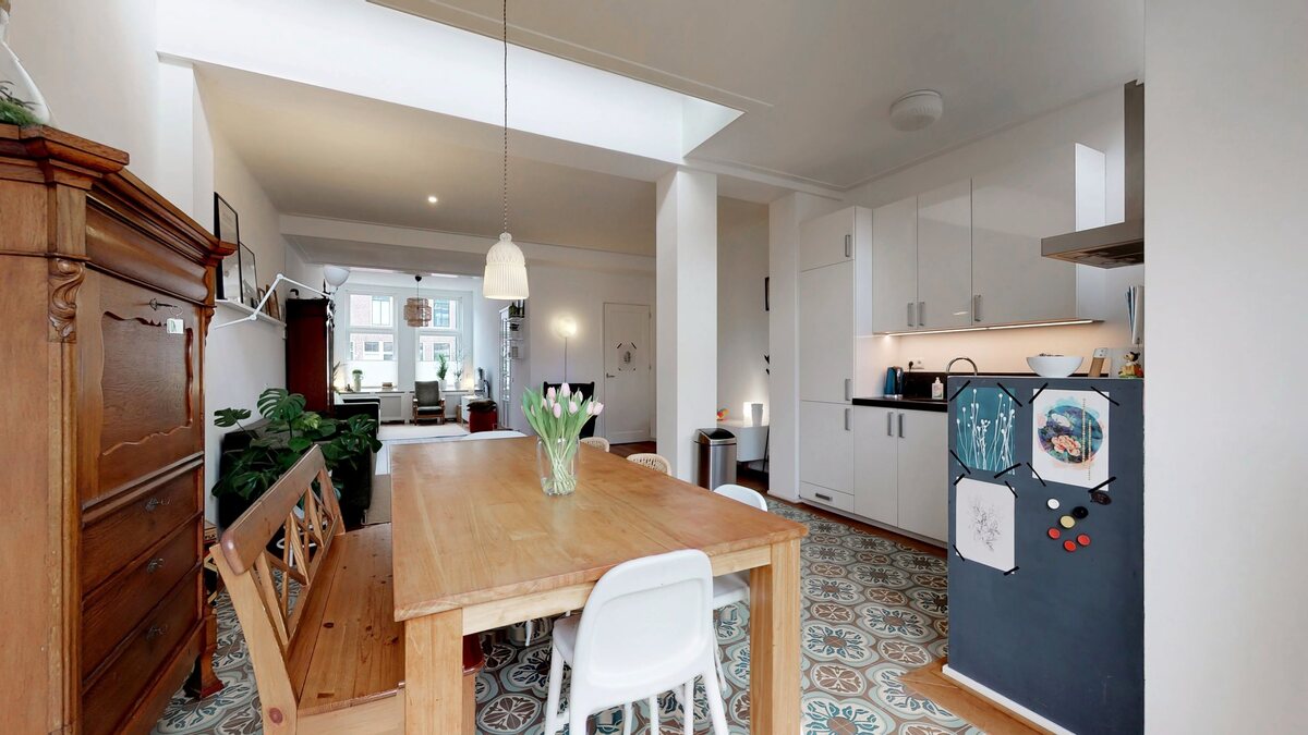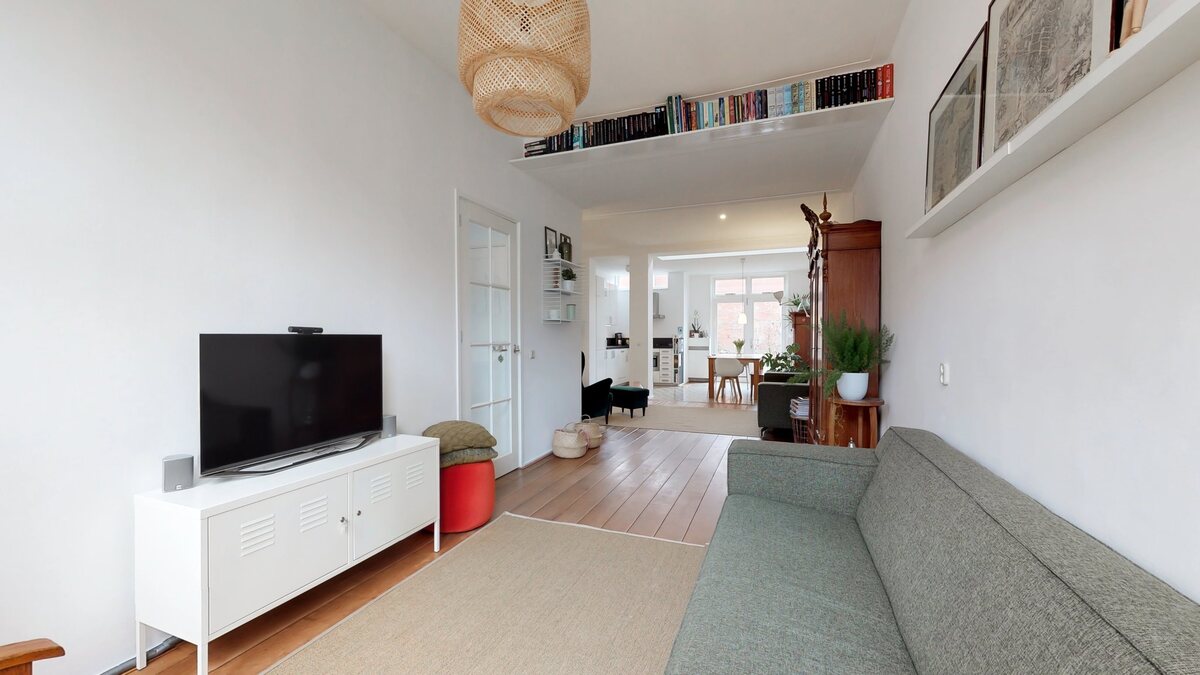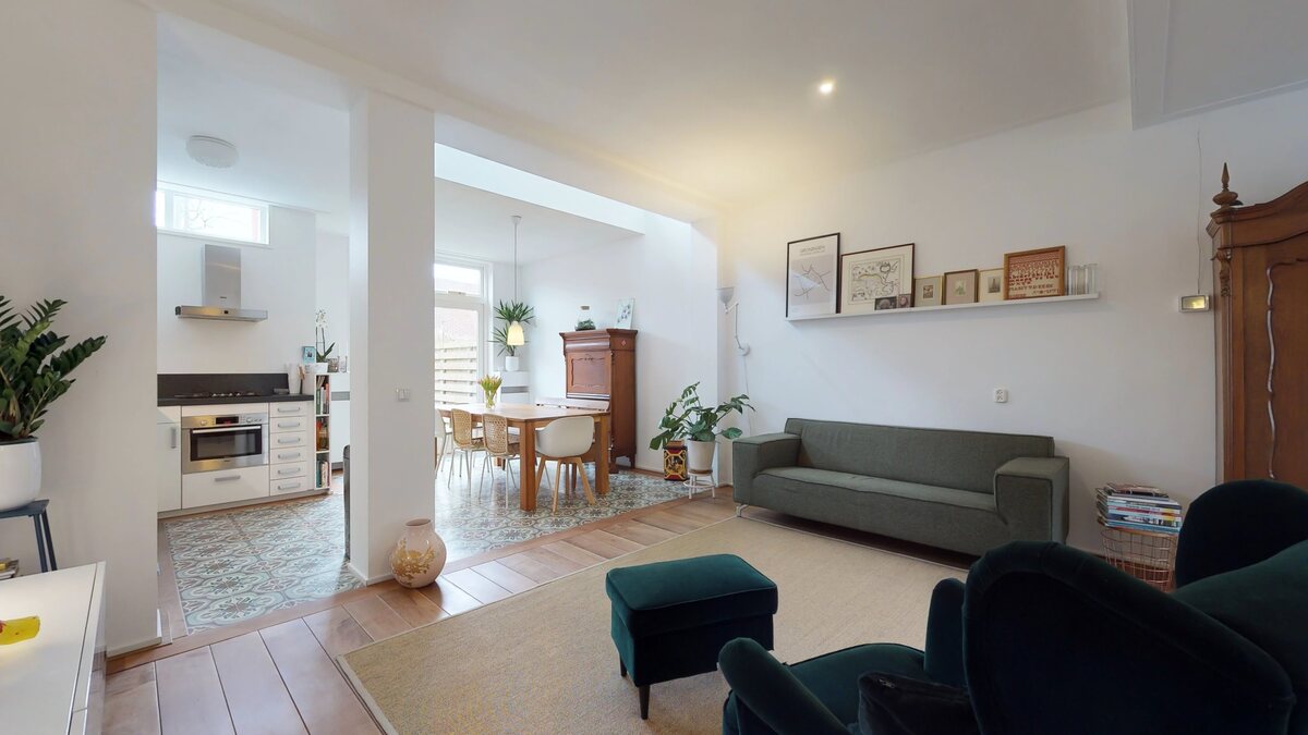 Begane grond: entree/hal, meterkast en toilet. Via de hal toegang tot de smaakvolle living (55 m2). Aan de voorzijde het zitgedeelte en het middenstuk is perfect voor een een grote eettafel. Aan de achterzijde van de woning bevindt zich de open keuken voorzien van inbouwapparatuur. De achterzijde is onder architectuur uitgebouwd en geeft de woning extra ruimte en karakter. Via de keuken toegang tot de tuin ter grootte van 65m2. Verder een mooie berging, welke onderdeel uitmaakt van de verbouwing. Eerste verdieping: overloop, 2 grote slaapkamers (19 en 16 m2), nette badkamer en separaat toilet. De slaapkamer aan de achterzijde biedt toegang tot een prima dakterras van bijna 20 m2!Tweede verdieping: ruime overloop (met lichtkoepel) nog eens 2 slaapkamers (16 en 15 m2). Verder bevindt zich op deze verdieping nog een wasmachineruimte ter grootte van 3 m2.