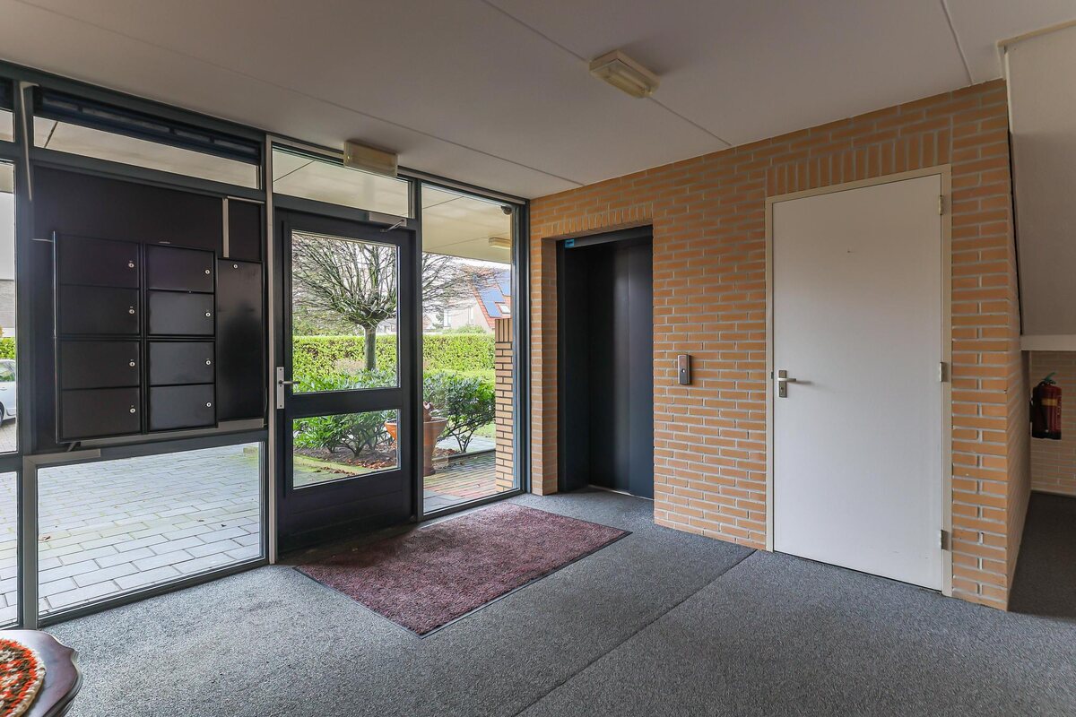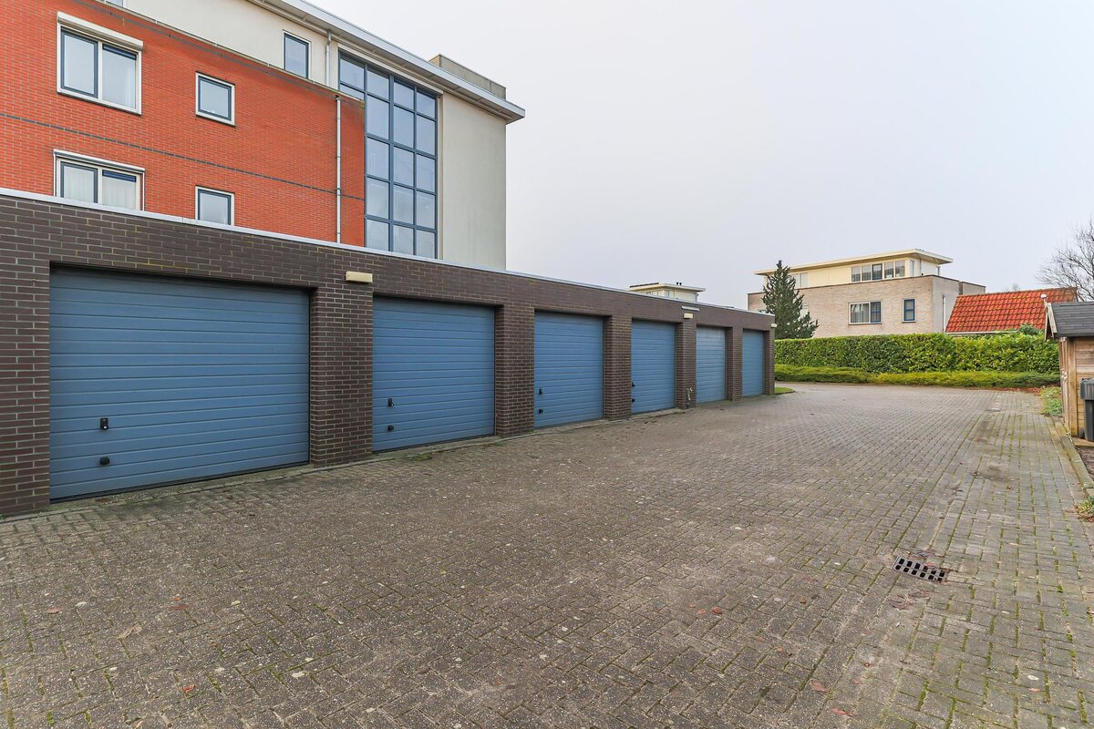 Begane grond: gemeenschappelijke entree met intercom, trappenhuis, een lift en toegang tot de inpandige garages. De garage is ca. 22 m² groot en is voorzien van een elektrisch deur. Daarnaast is er nog een ruimte om de fietsen neer te zetten en de containers te plaatsen.