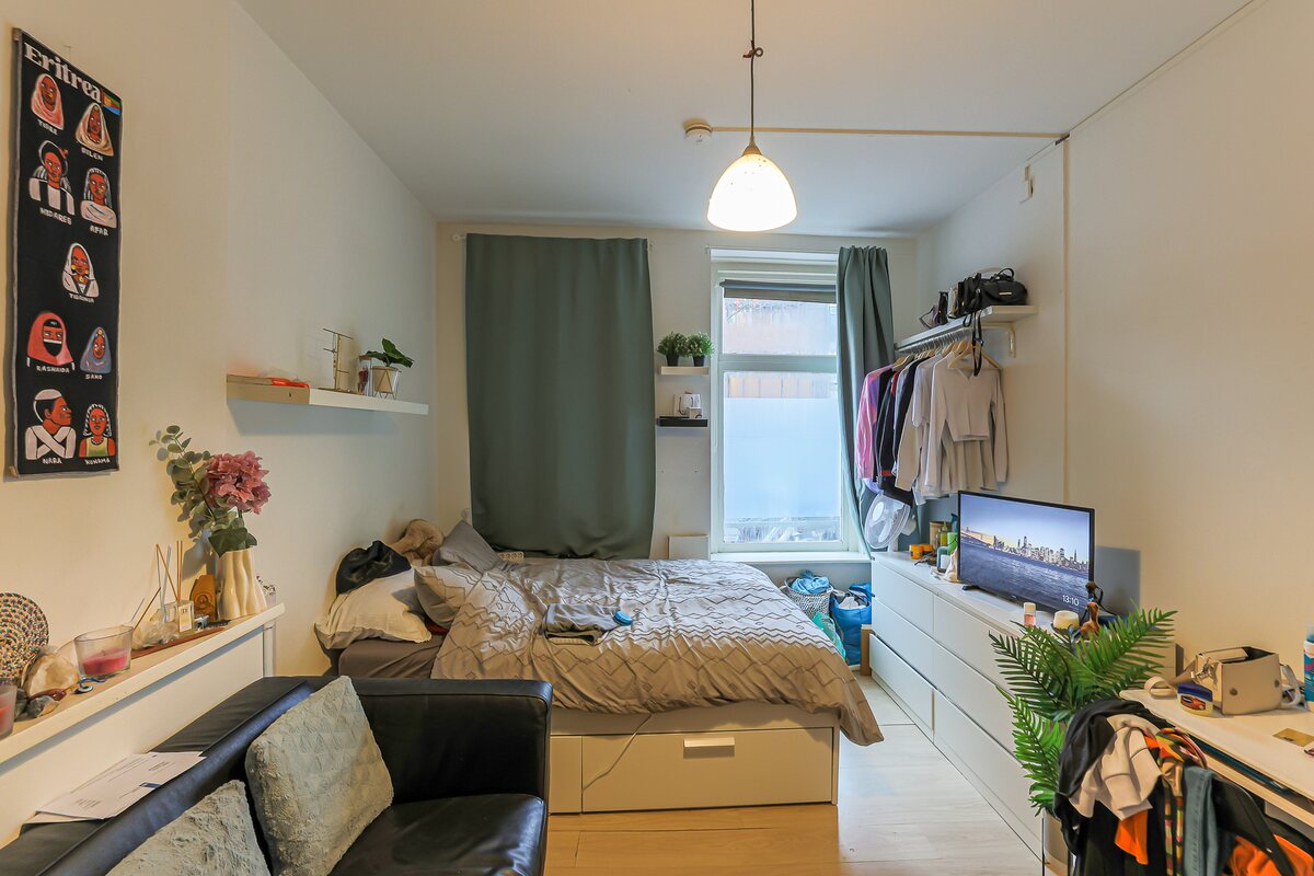 Entree met gang voorzien van uitgebreide en moderne meterkast, gemeenschappelijk toilet, trap verdieping en toegang tot alle vertrekken.Drie kamers van 16, 17 en 20 m2 (NEN) , allen voorzien van laminaatvloer, eigen douchecabine, aanrecht met inductiekookplaat en een koelkast.Verdieping: overloop met wasmachine en wasdroger.Drie kamers van 19, 20 en 20 m2 (NEN), allen voorzien van laminaatvloer, eigen douchecabine, aanrecht met inductiekookplaat en een koelkast.Bijzonderheden: