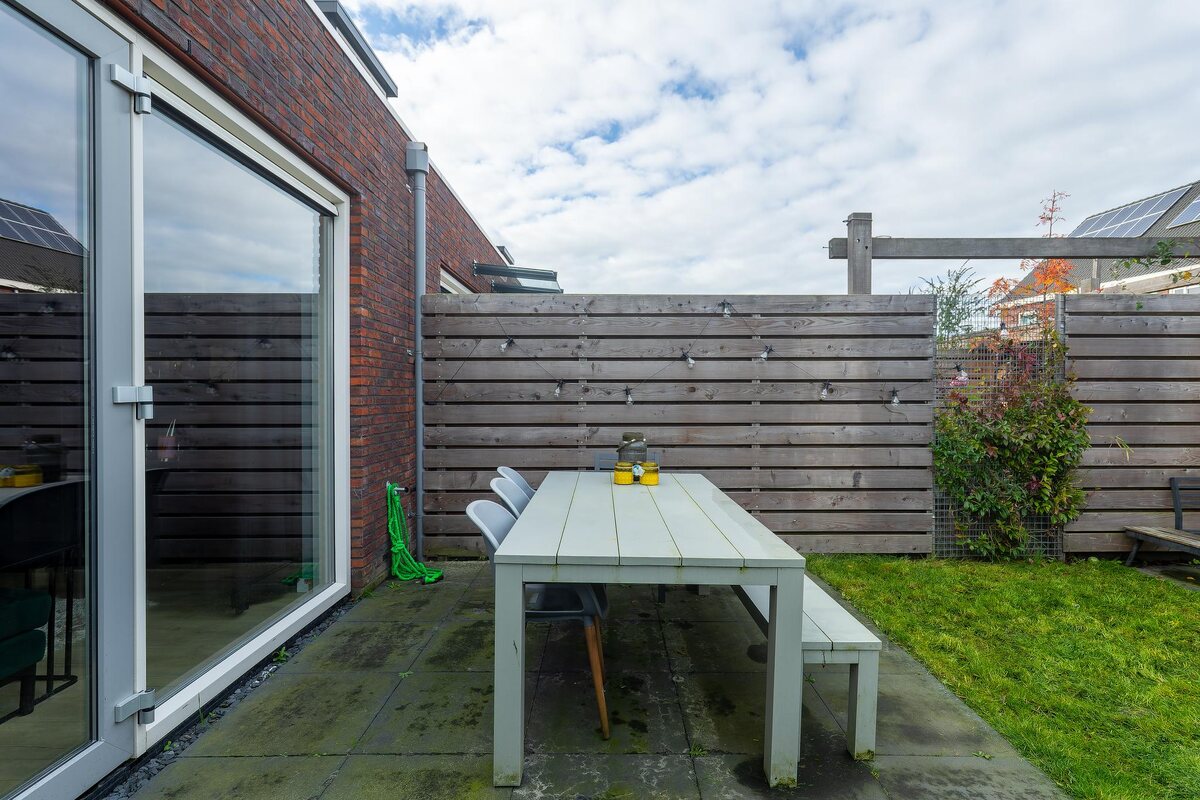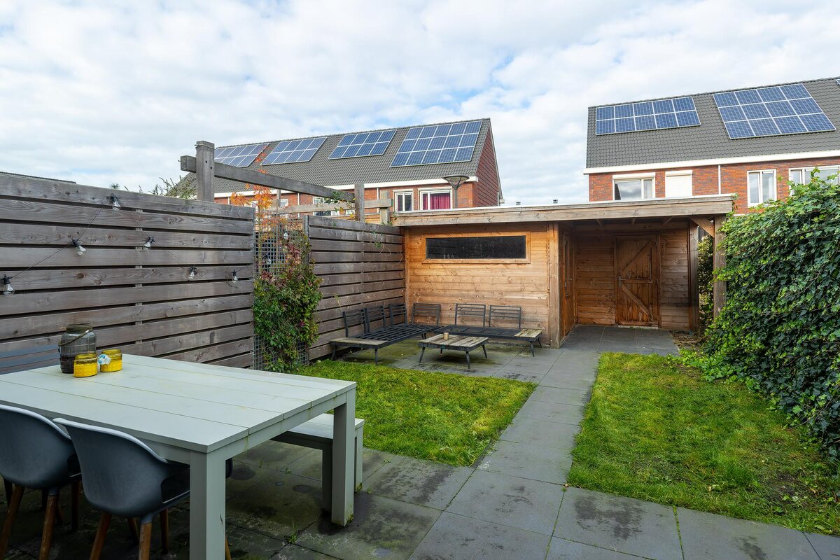 Voortuin en fijne besloten achtertuin (bijna 60 m2) met houten vrijstaande berging (8 m2) en overkapping. Verzorgd geheel. Tuin ligt op het noordwesten (middag- avond zon!)