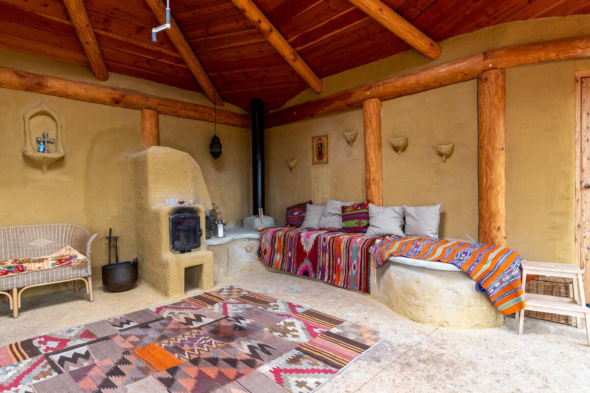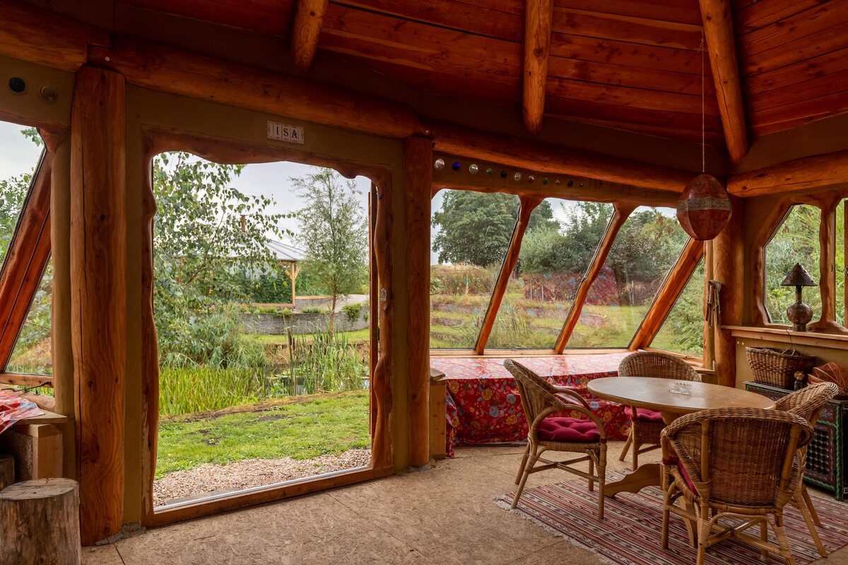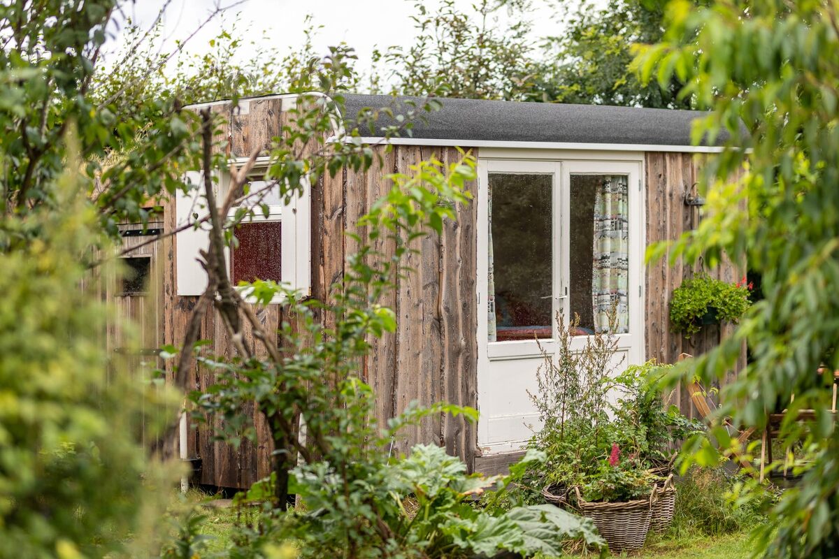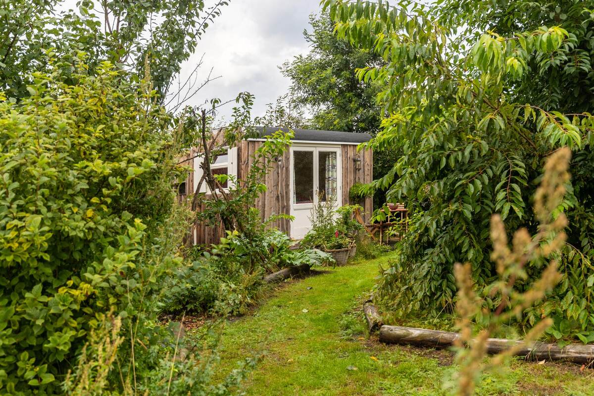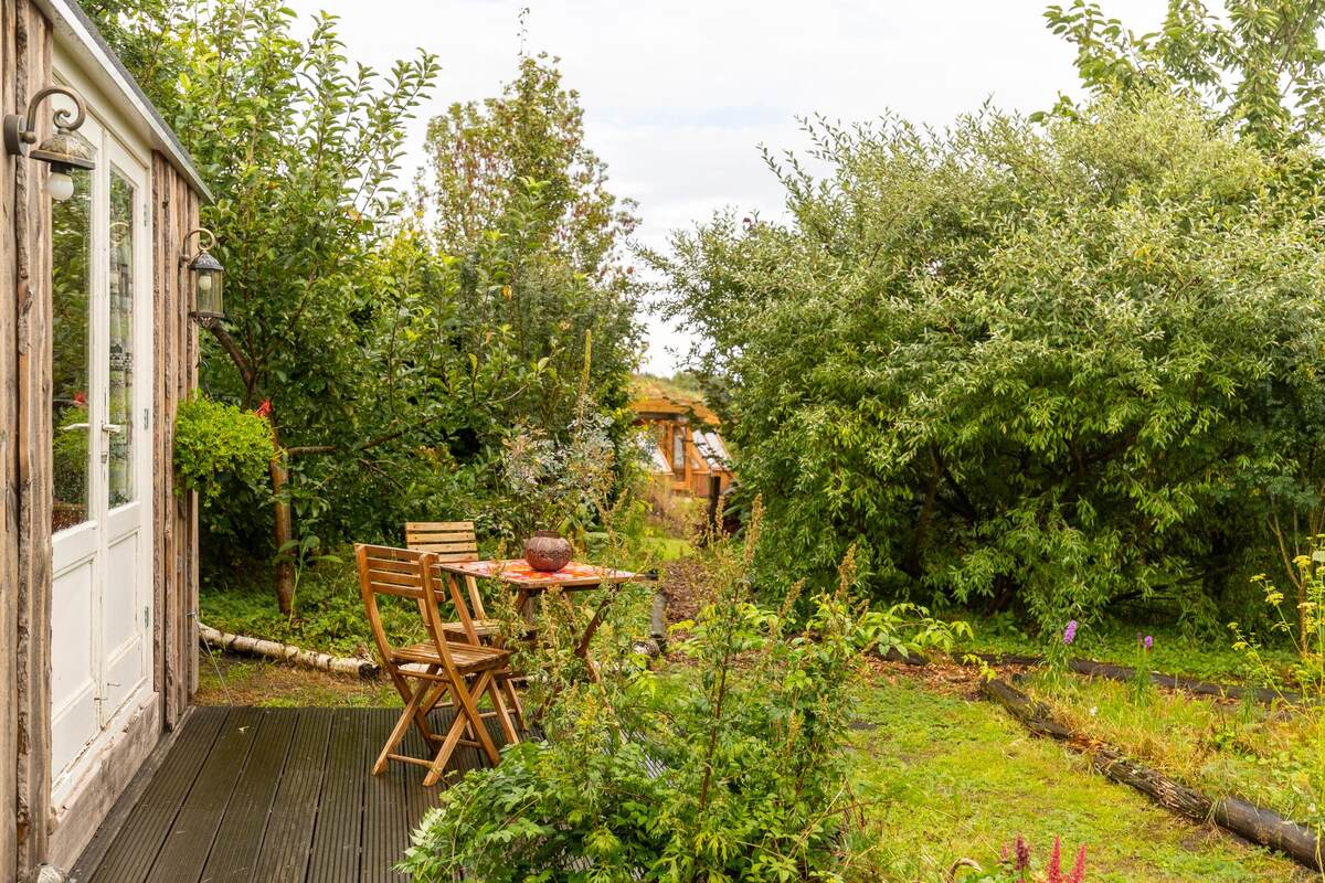 - Ecohuis: (ca. 38 m2) opgetrokken uit fraaie sporenconstructie met leem, oven, keukentje, uniek handgesneden kozijnwerk. Hoog plafond met dakkoepel. Water en elektra voorbereiding is aanwezig. Permacultuur systeemtank aanwezig. Aangebouwde badkamer (moet nog worden geïnstalleerd). Zicht op de tuin en vijver.- Kas: (ca. 25 m2) met robuuste houtconstructie (red ceder), volledig voorzien van (beveiligd) dubbel glas, pantry en een ruime aangebouwde schuur met water en elektra- pipowagen (ca. 8 m2) met vast bed, pantry, natuurtoilet en dito douche. Elektriciteit en water.- verlaagd en gemetseld buitenkookterras (ca. 30 m2) met balkenconstructie en originele pizzaoven.