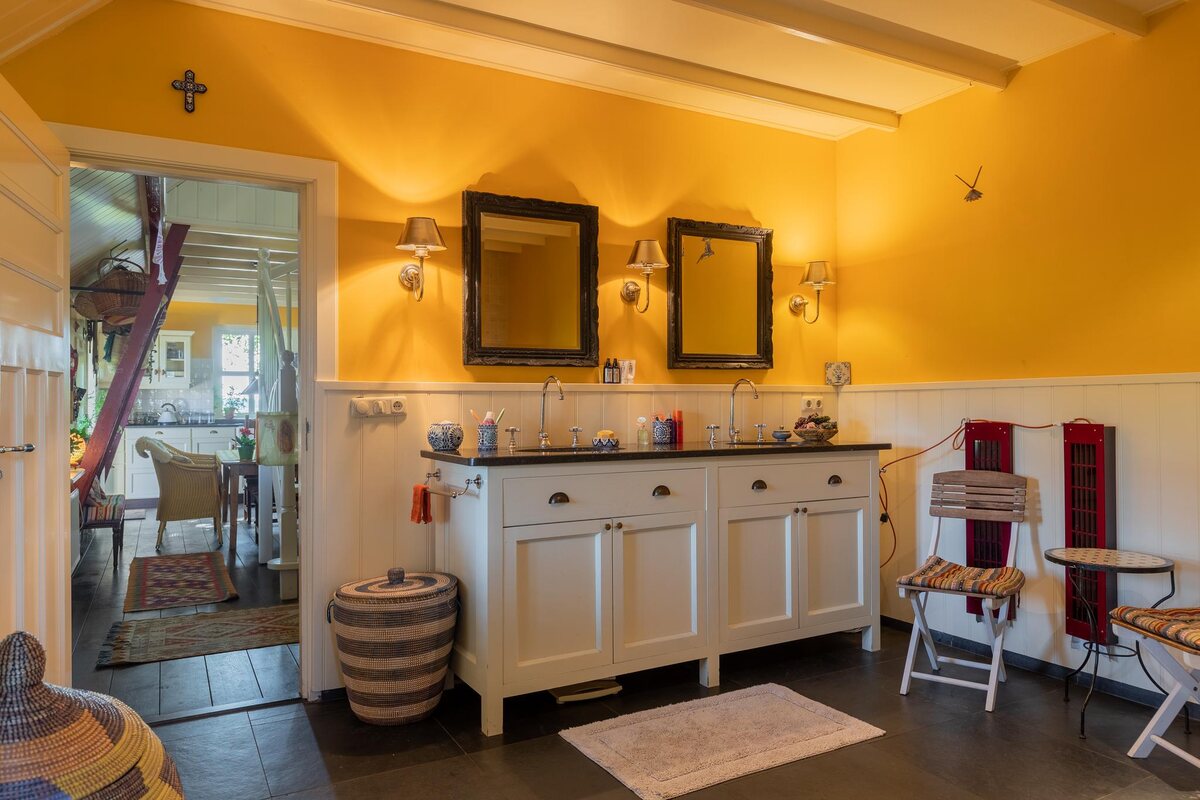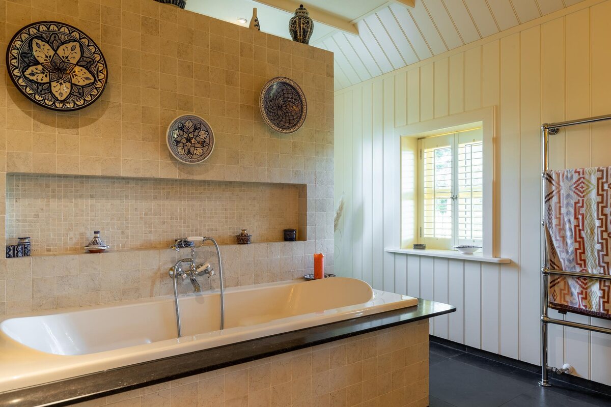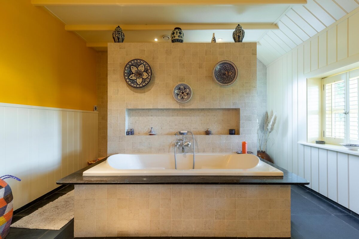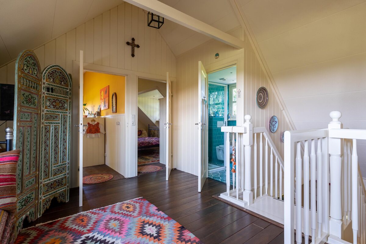Hal/entree (ca. 9 m2) met vaste garderobekast met wasmachine aansluiting en CV ketel (HR 2008 eigendom).Heerlijke en ruim bemeten doorzonwoonkamer (ca. 48 m2) met erker, hoog balkenplafond, houtkachel, openslaande deuren naar de tuin en houten vloerdelen.Royale woonkeuken (ca. 32 m2, houten vloerdelen) met wandmeubel voorzien van inbouw apparatuur, een open trap naar de verdieping, doorloop naar de badkamer en loopdeur naar de tuin.Riante en comfortabele badkamer (ca. 19 m2) met ligbad, inloopdouche, wastafelmeubel en toilet.Verdieping: ruime overloop met dakkapel en toegang tot alle vertrekken.Drie slaapkamers van 12, 12 en 14 m2, waarvan de laatste met inloopkast. Alle slaapkamers hebben uniek en onovertroffen uitzicht over de prachtige omgeving. Compacte badkamer (ca. 3 m2) met douche, wastafelmeubel en tweede toilet.