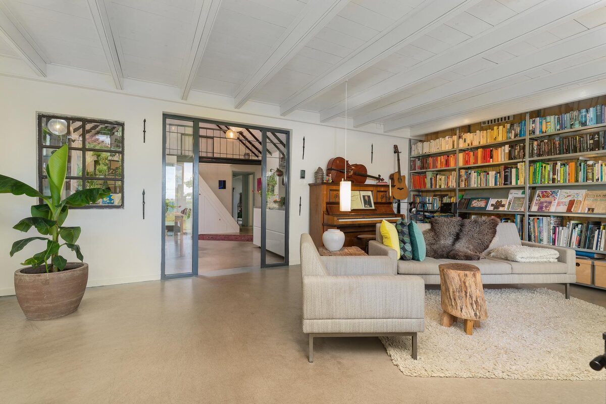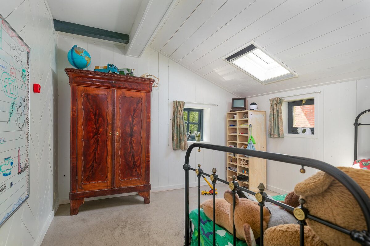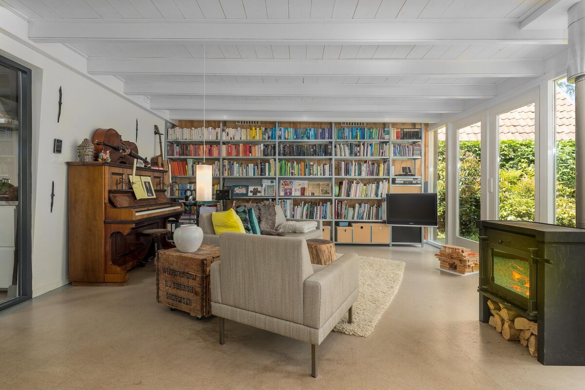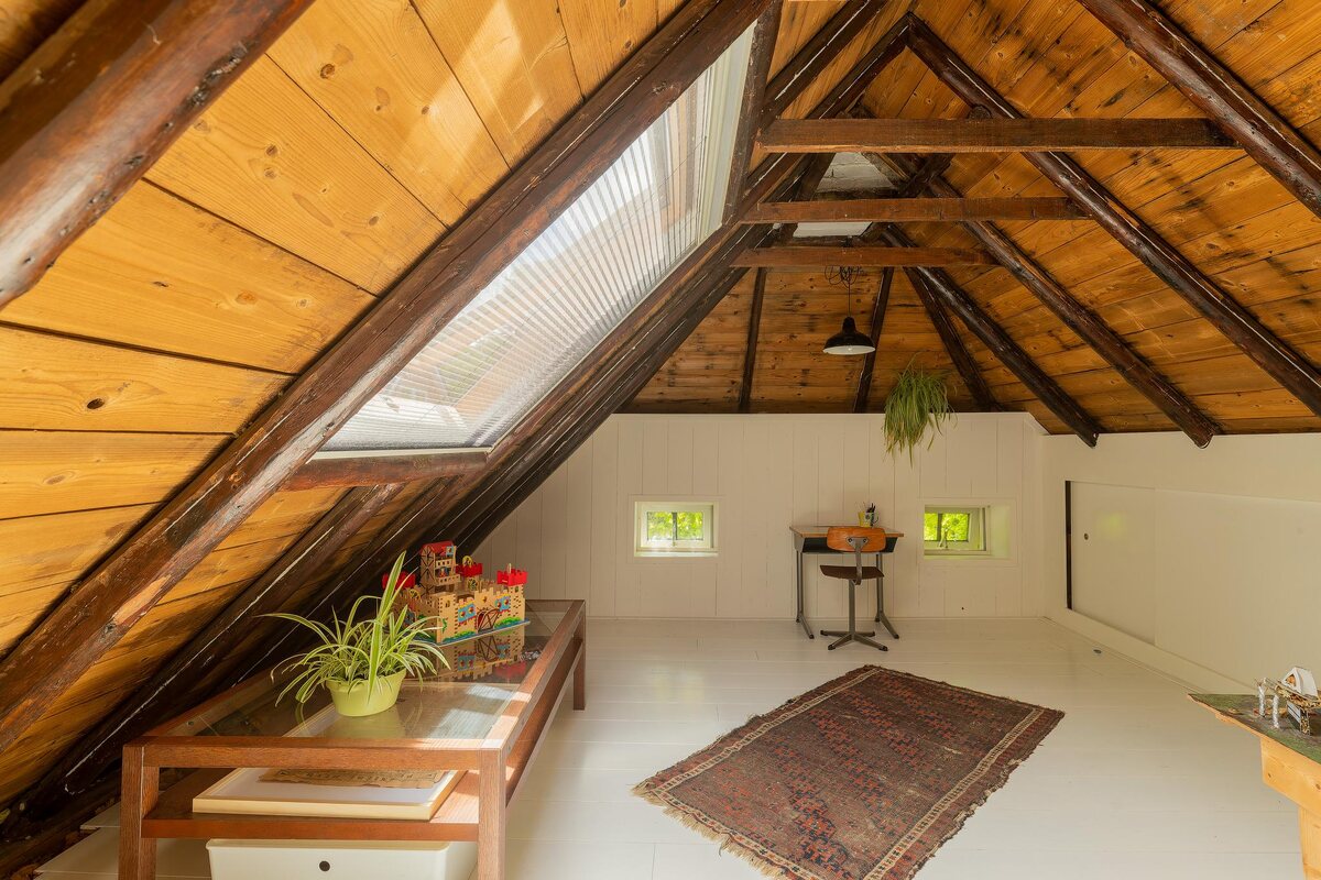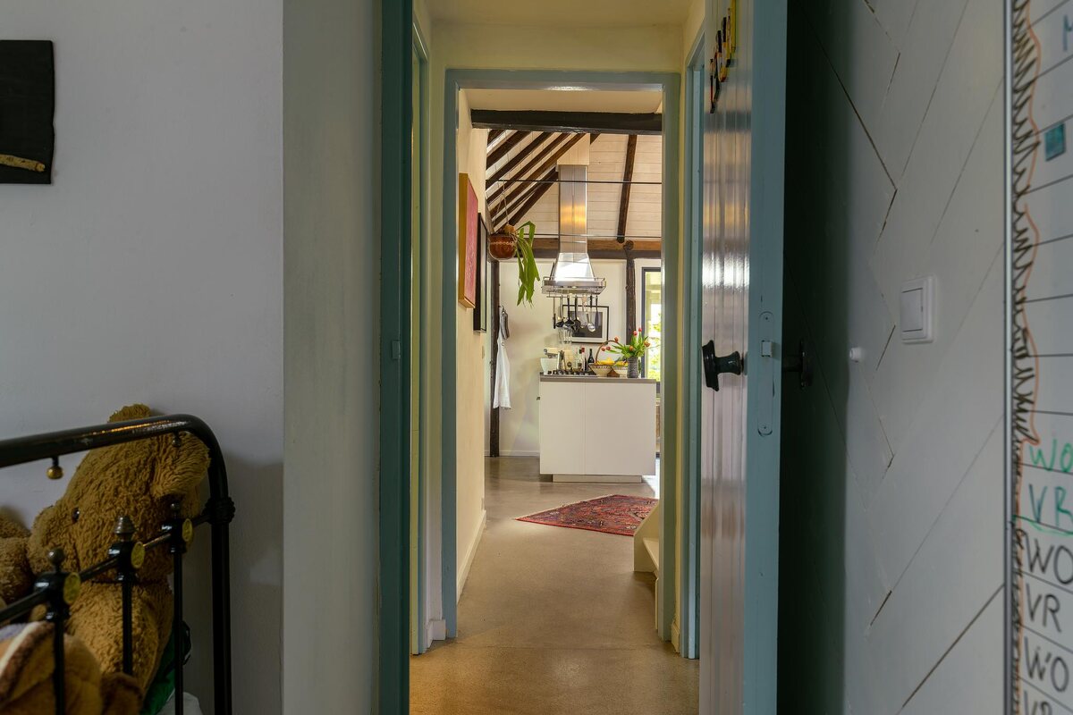 Hal/entree via de zijgevel.Unieke en riante woonkeuken (ca. 38 m2, vloerverwarming) in de voormalig deel van het huis, met industriële (gecoate) betonvloer, openslaande deuren naar de zijtuin en zicht op de prachtige sporenkap met dakbeschot. De keuken is verder voorzien van een kookeiland en wandmeubel met alle gemakken: oven, koelvriescombi en gaskookplaat met afzuigkap. Let op: deze geweldige hoge ruimte vormt het hart van de woning met toegang tot een mezzanine met een werk-, slaap- of speelvertrek en toilet.Doorloop middels fraaie glazen deur naar de woonkamer (ca. 31 m2) in de achteruitbouw welke is voorzien van een fraai balkenplafond, een houtkachel met nieuwe schoorsteen en zicht op de achtertuin en achtergelegen landerijen.Vanuit de keuken is een achterhal bereikbaar met toegang tot twee slaapkamers en de badkamer.Slaapkamer 1 (ca. 16,5 m2) met vaste kastenwand en sfeervolle wandbekleding.Slaapkamer 2 (ca. 9 m2) met dakraam.Moderne badkamer (ca. 7 m2) met ligbad, douche, wastafelmeubel, tweede toilet en vaste (laden)kast met wasmachine aansluiting. Verdieping: bereikbaar via open trap en een klein inpandig balkon.Slaapkamer 3 (ca. 10 m2) met dakraam.