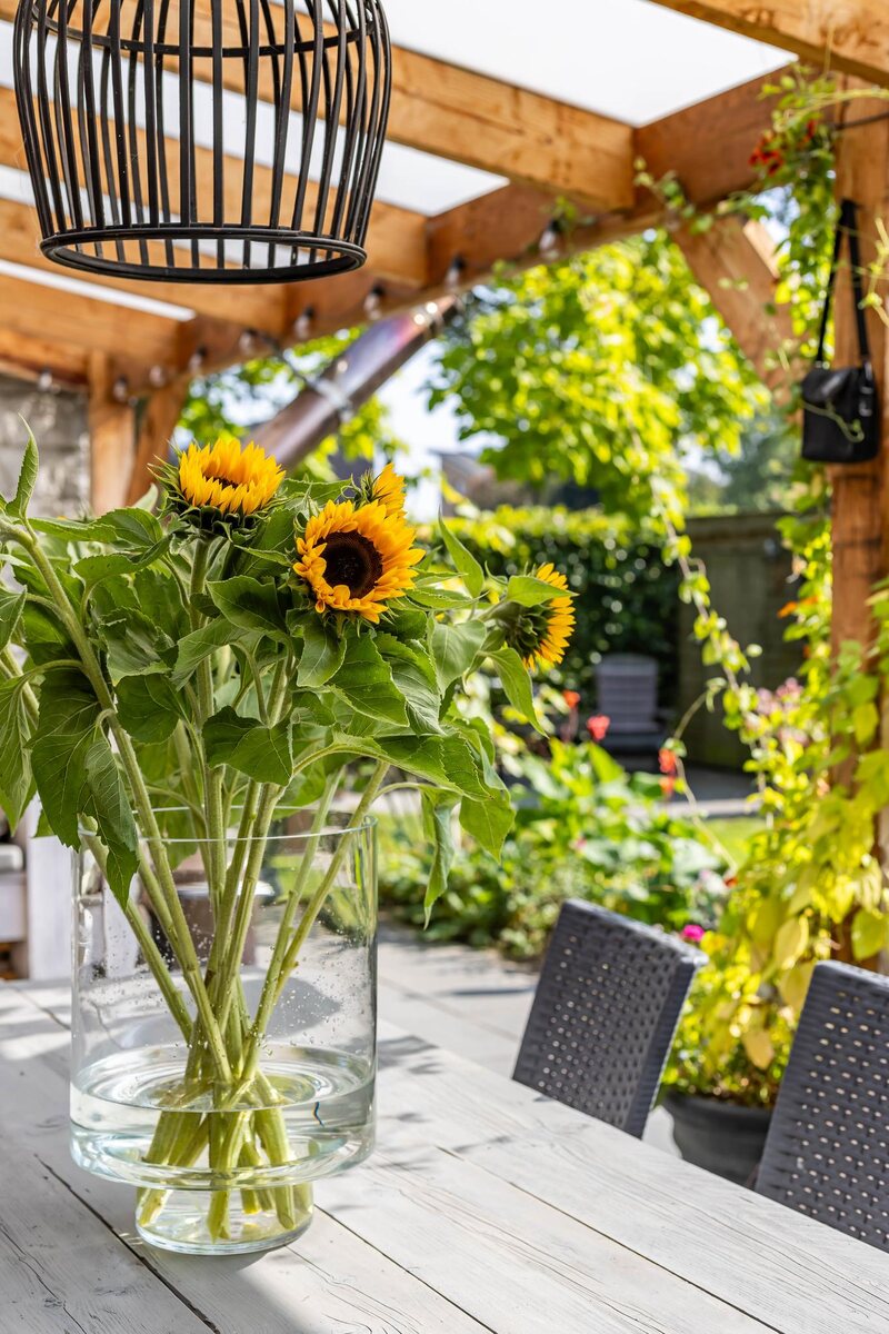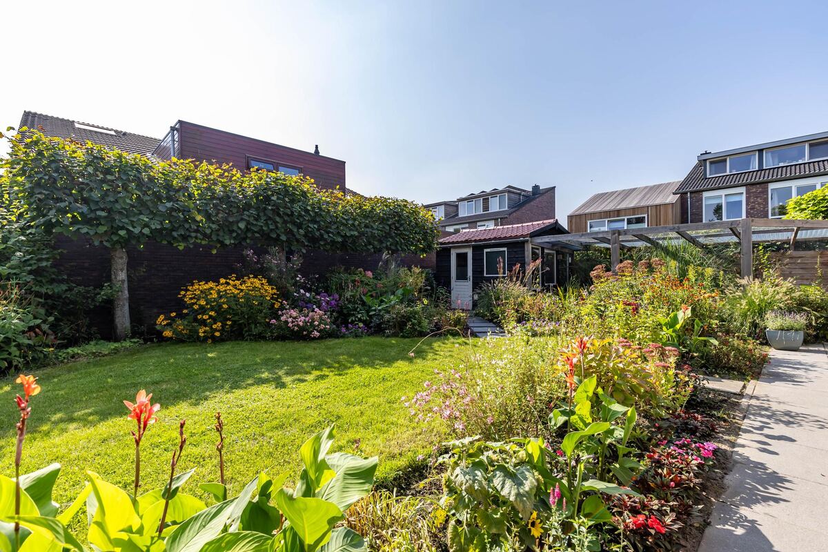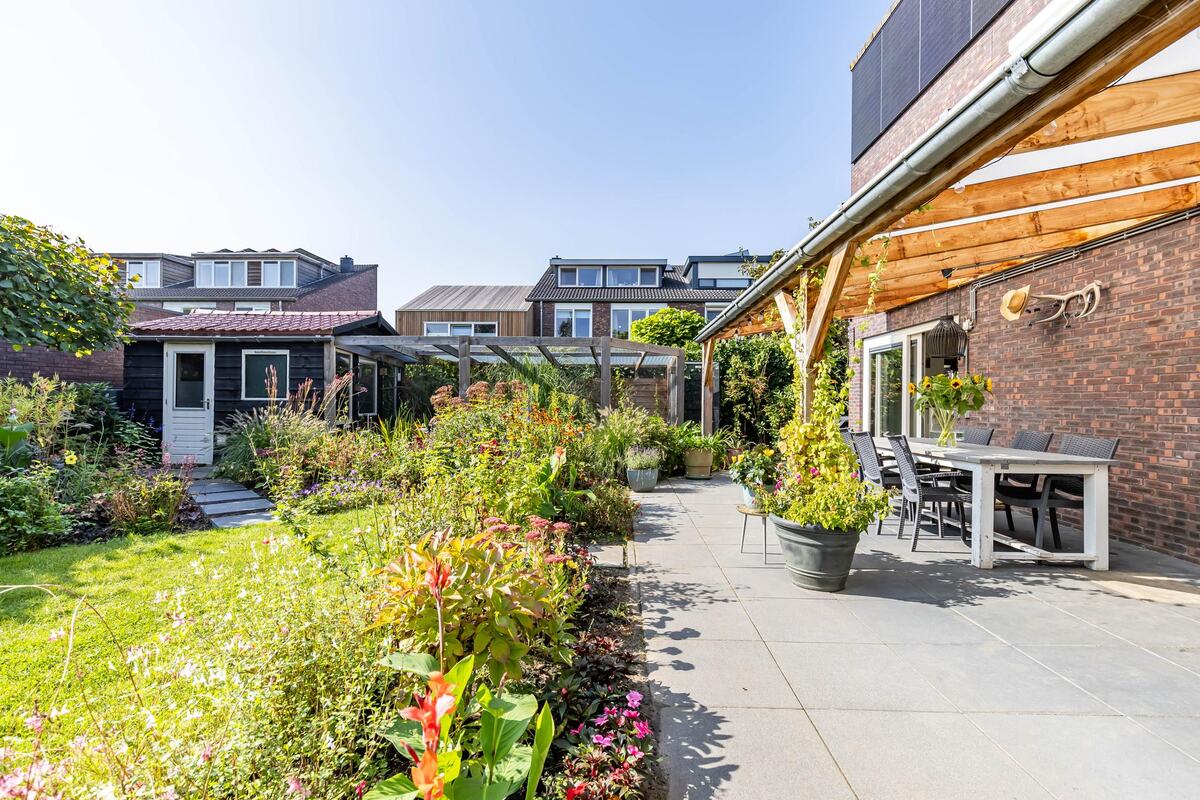 Het perceel is 550 m2 groot en de royale tuin (ca. 250 m2) op het zuiden is fraai aangelegd met o.a. terras, gras, volière en prachtige planten en bloemen. De zonnige tuin beschikt over een houten tuinberging en biedt voldoende privacy. De veranda biedt extra comfort. De oprit aan de voorzijde biedt plaats voor meerdere auto's.