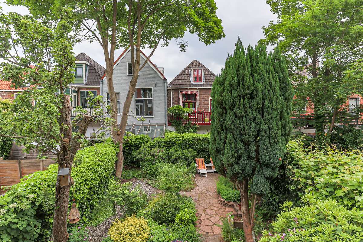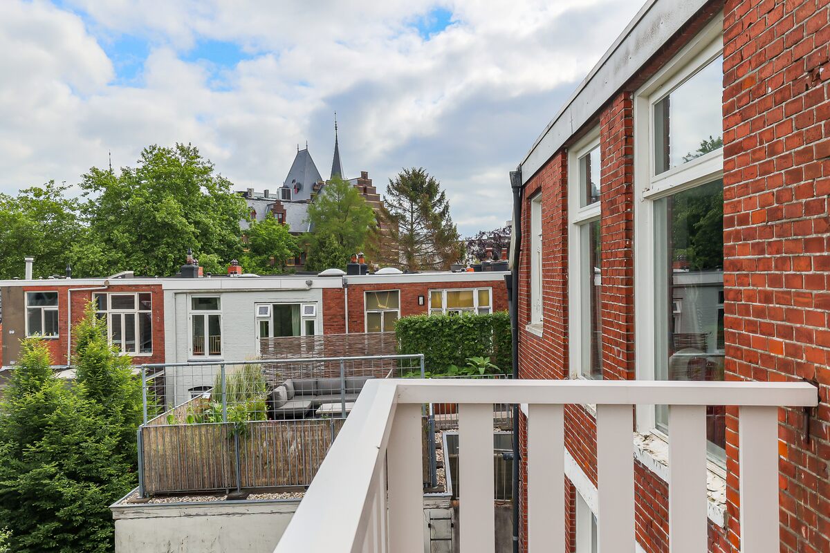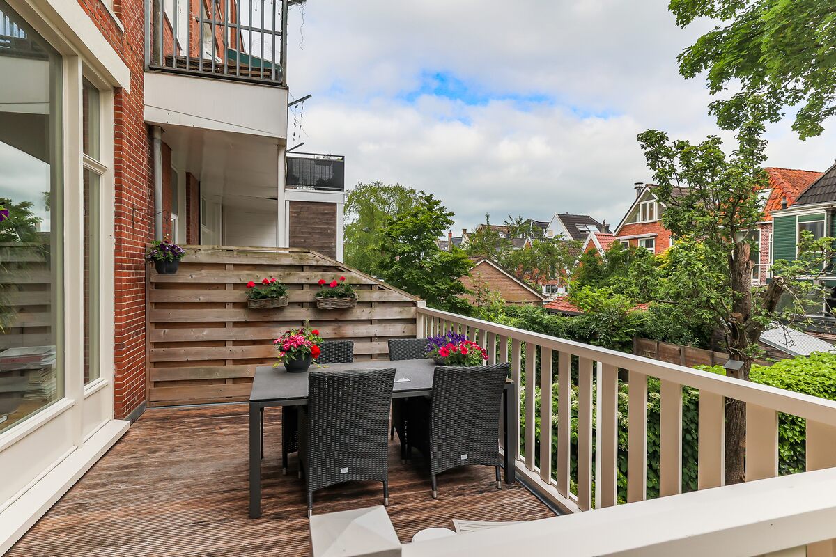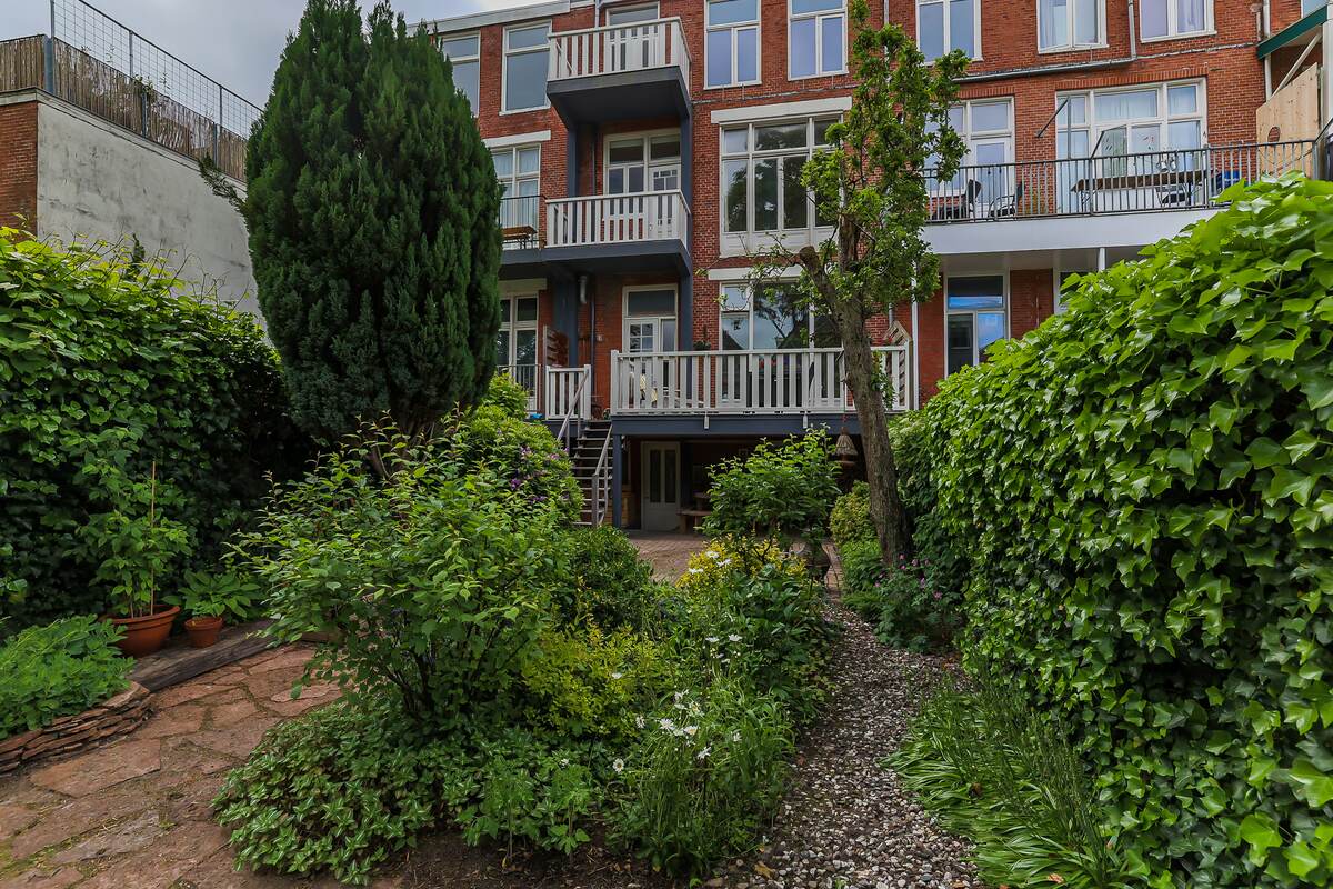 Fijne en diepe tuin op het noordwesten. Veel groen en ca. 125 m2 groot. Vanuit de beletage toegang tot een groot balkon. Ook daaronder is het lekker zitten. Zie de foto's.