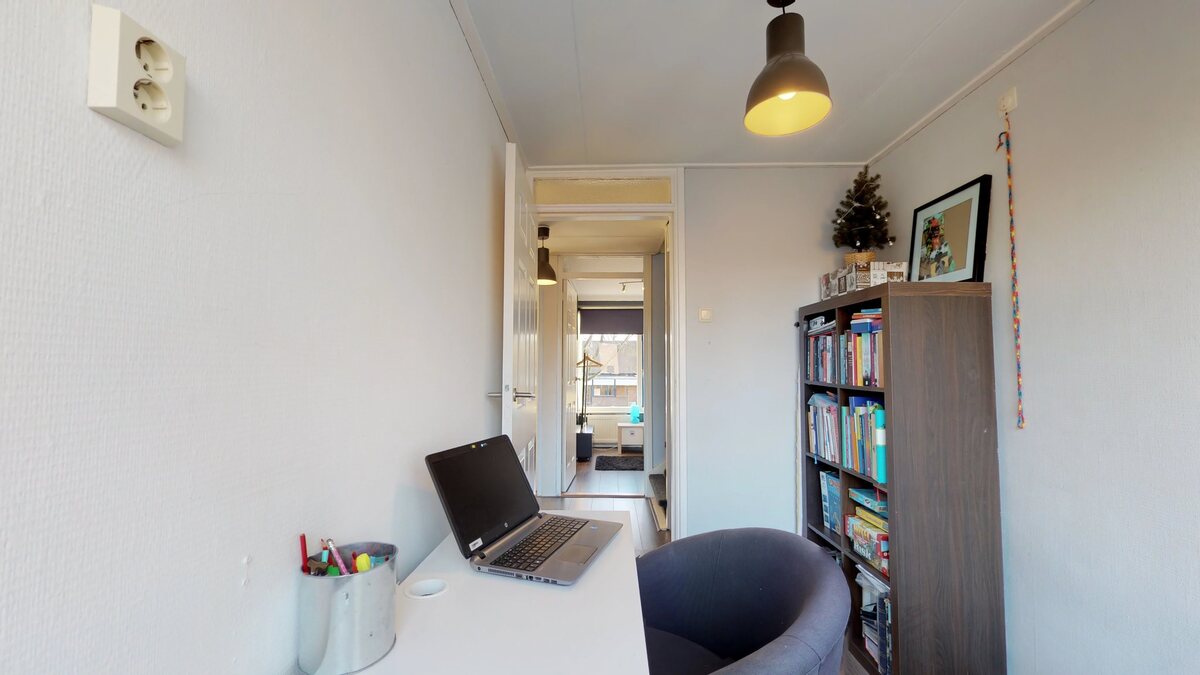 Begane grond: entree, tochtportaal met meterkast, hal/gang met toilet, trapkast en trapopgang, L-vormige woonkamer met moderne open keuken (2016) met inbouwapparatuur. De woonkamer en keuken zijn totaal ca. 34 m2. Dubbelde bijkeuken met aansluitpunt voor de wasmachine en drogerEerste verdieping: overloop, 4 slaapkamers (ca 11, 10, 6 en 5 m2), en moderne badkamer (2017).Tweede verdieping: overloop met zolderruimte en een 5e slaapkamer (ca 16 m2) met wasmeubel en vaste kastruimte.