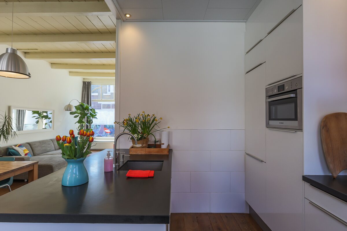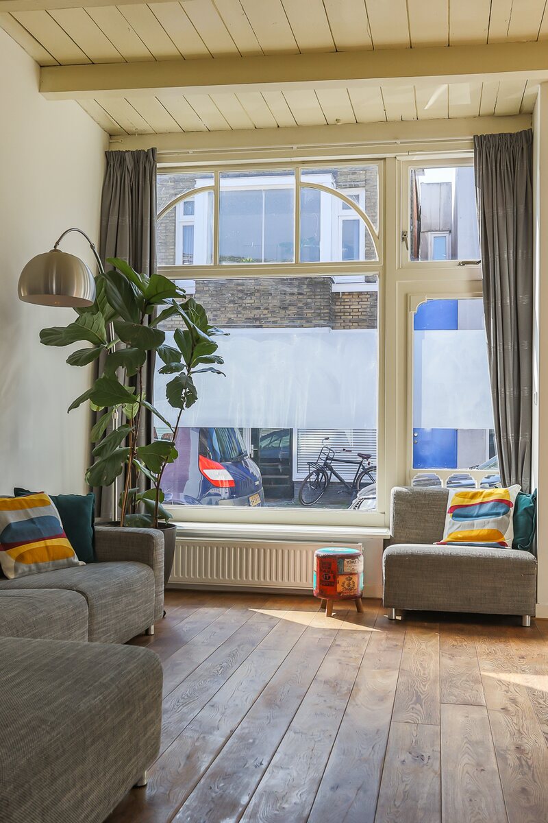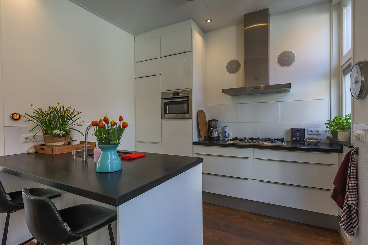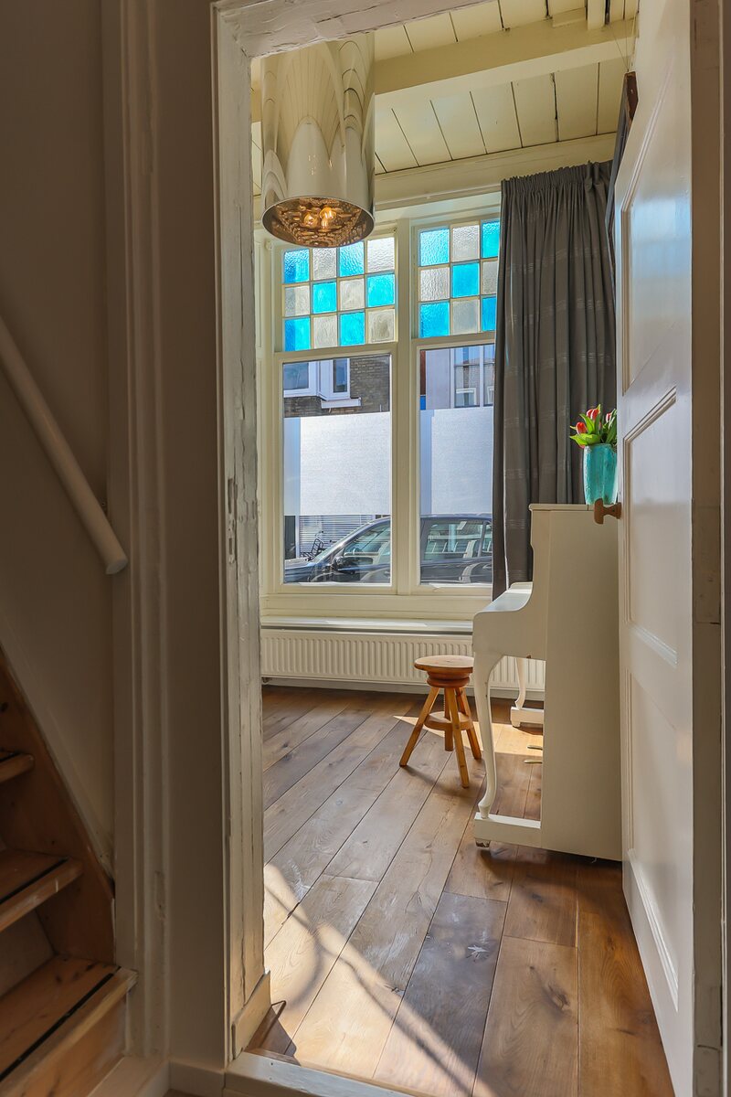 INDELING PAND Begane grond; hal, hangend toilet met fontein (2021), Stijlvolle U-vormige woonkamer ca. 42 m2 met een massief eikenvloer en strakke open keuken (2012), verdeeld over 2 blokken. Voorzien van inbouwapparatuur, een barretje en granieten blad. Fraaie hoge plafonds. Strak gestuukte wanden. Glas-in-lood ramen. Prachtig!Eerste verdieping; overloop, 3 slaapkamers (18, 9 en 9 m2). De 2 kleine slaapkamers staan in verbinding met elkaar. Nette badkamer met douche en wastafel. Separaat 2e toilet en een wasmachineruimte. Woonoppervlakte: 97 m2