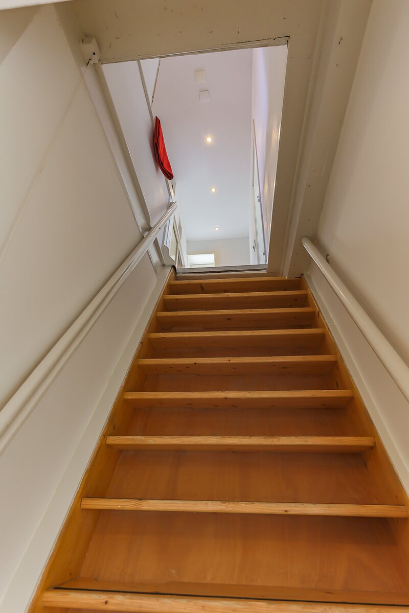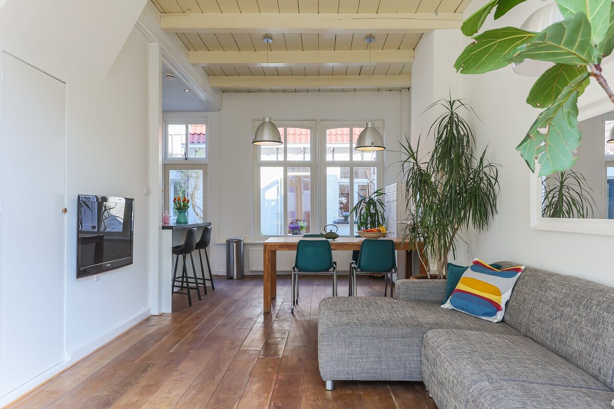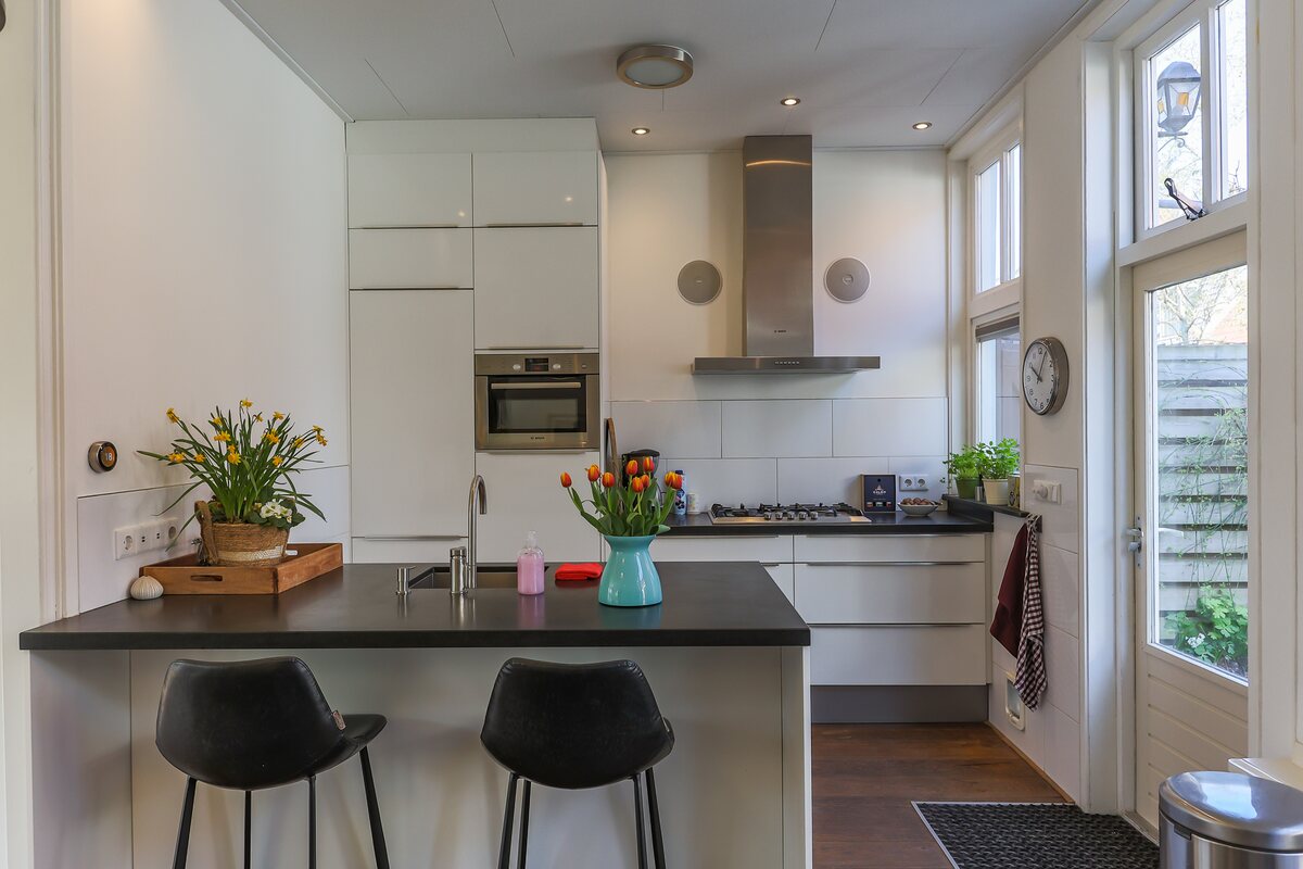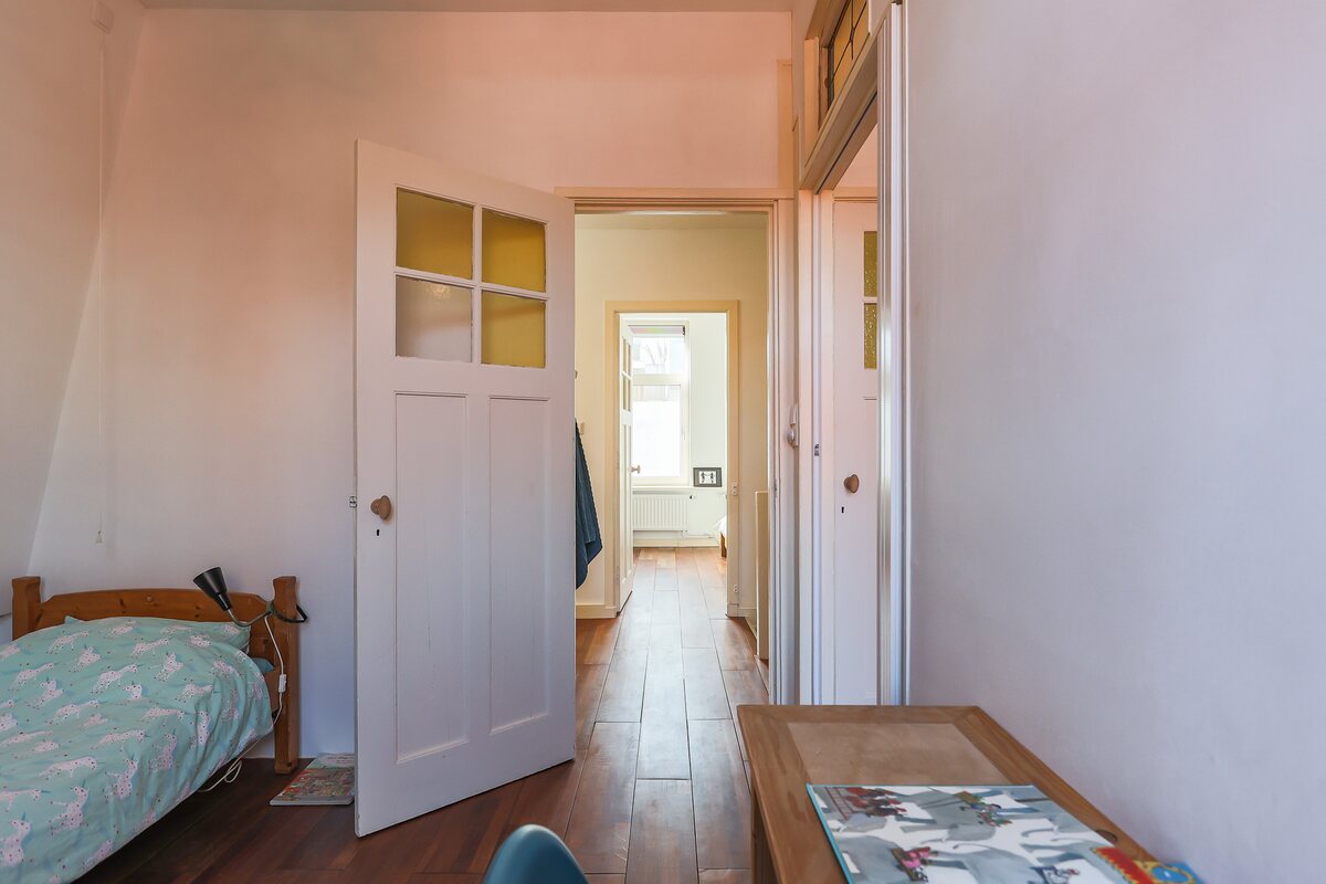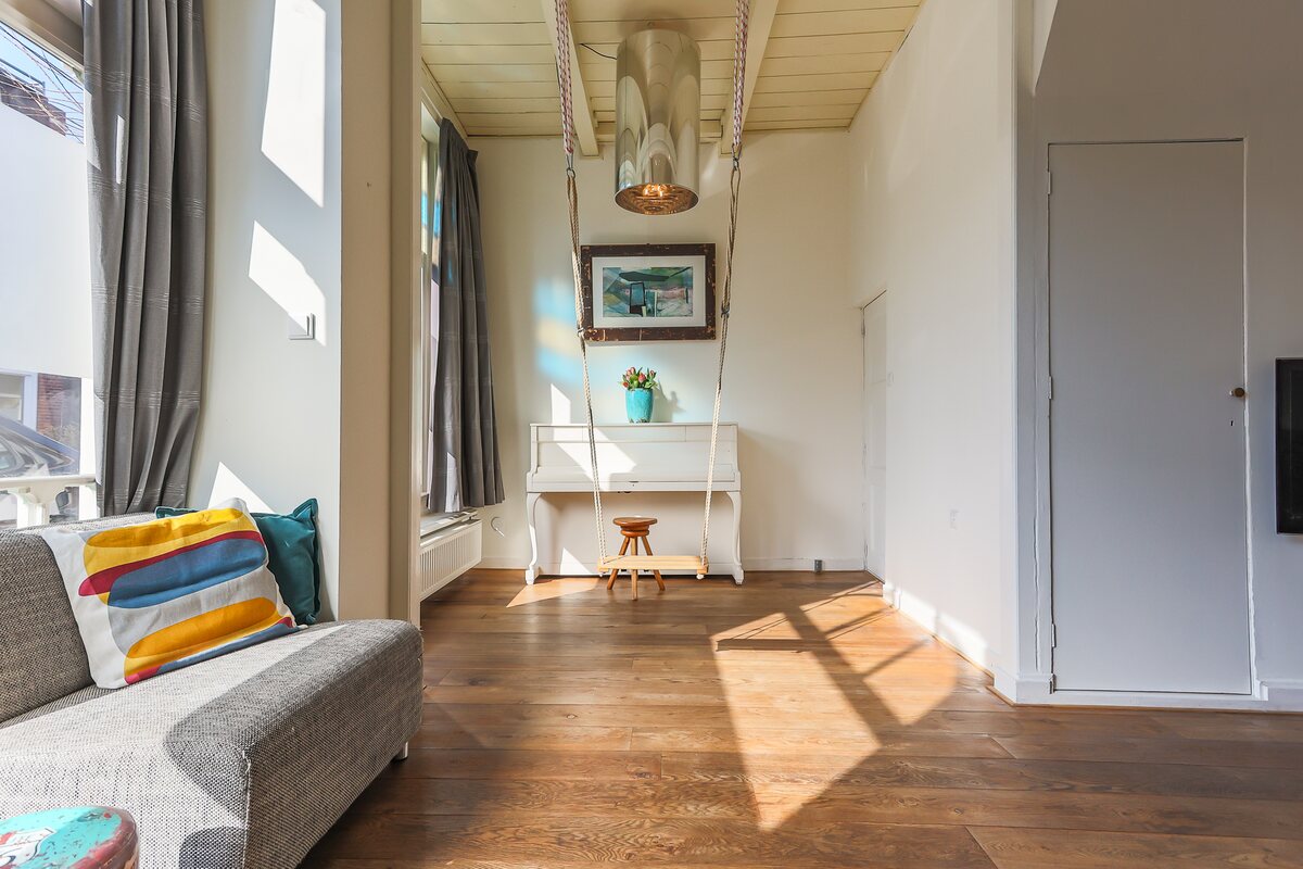 INDELING PAND Begane grond; hal, hangend toilet met fontein (2021), Stijlvolle U-vormige woonkamer ca. 42 m2 met een massief eikenvloer en strakke open keuken (2012), verdeeld over 2 blokken. Voorzien van inbouwapparatuur, een barretje en granieten blad. Fraaie hoge plafonds. Strak gestuukte wanden. Glas-in-lood ramen. Prachtig!Eerste verdieping; overloop, 3 slaapkamers (18, 9 en 9 m2). De 2 kleine slaapkamers staan in verbinding met elkaar. Nette badkamer met douche en wastafel. Separaat 2e toilet en een wasmachineruimte. Woonoppervlakte: 97 m2