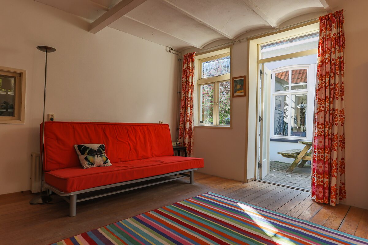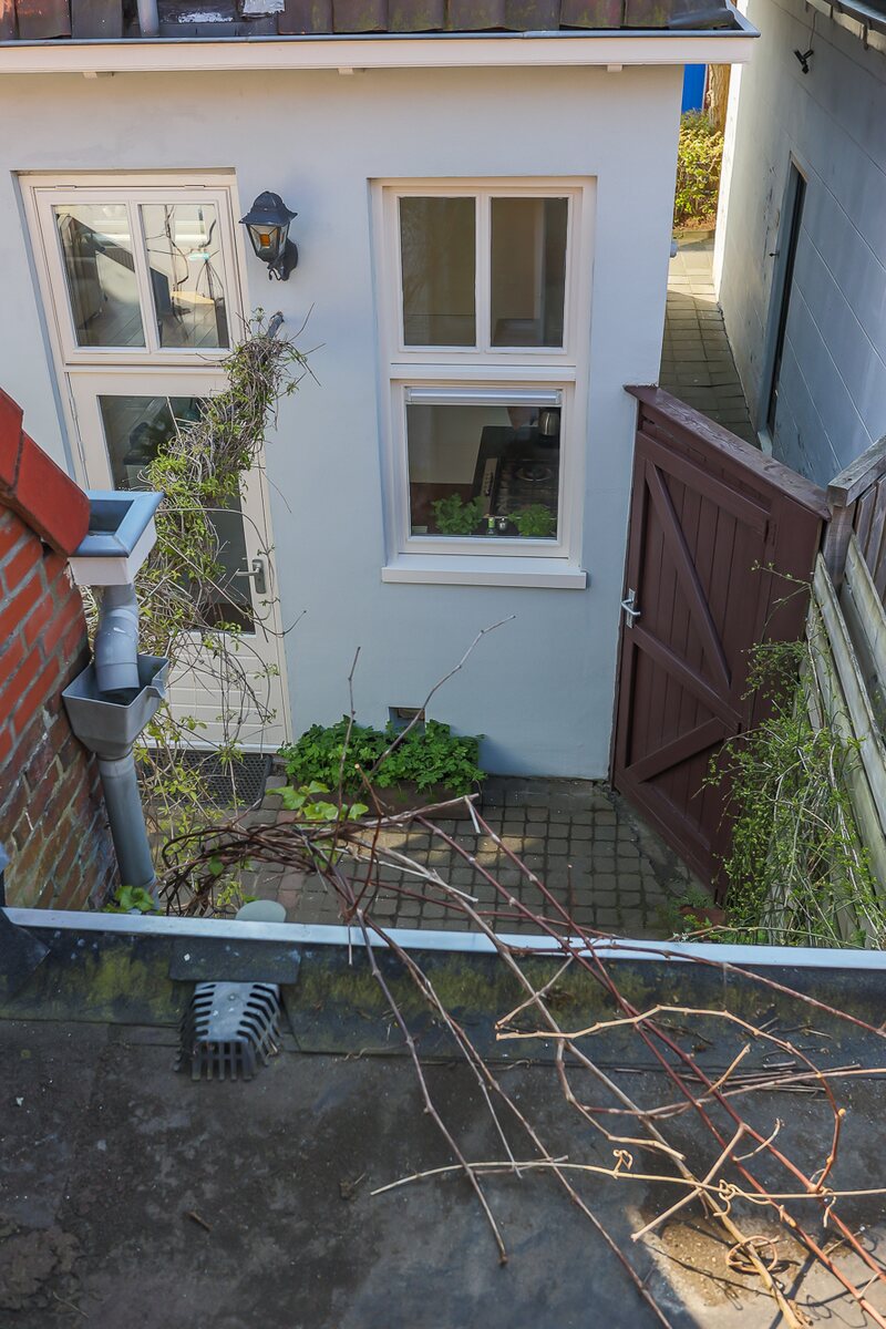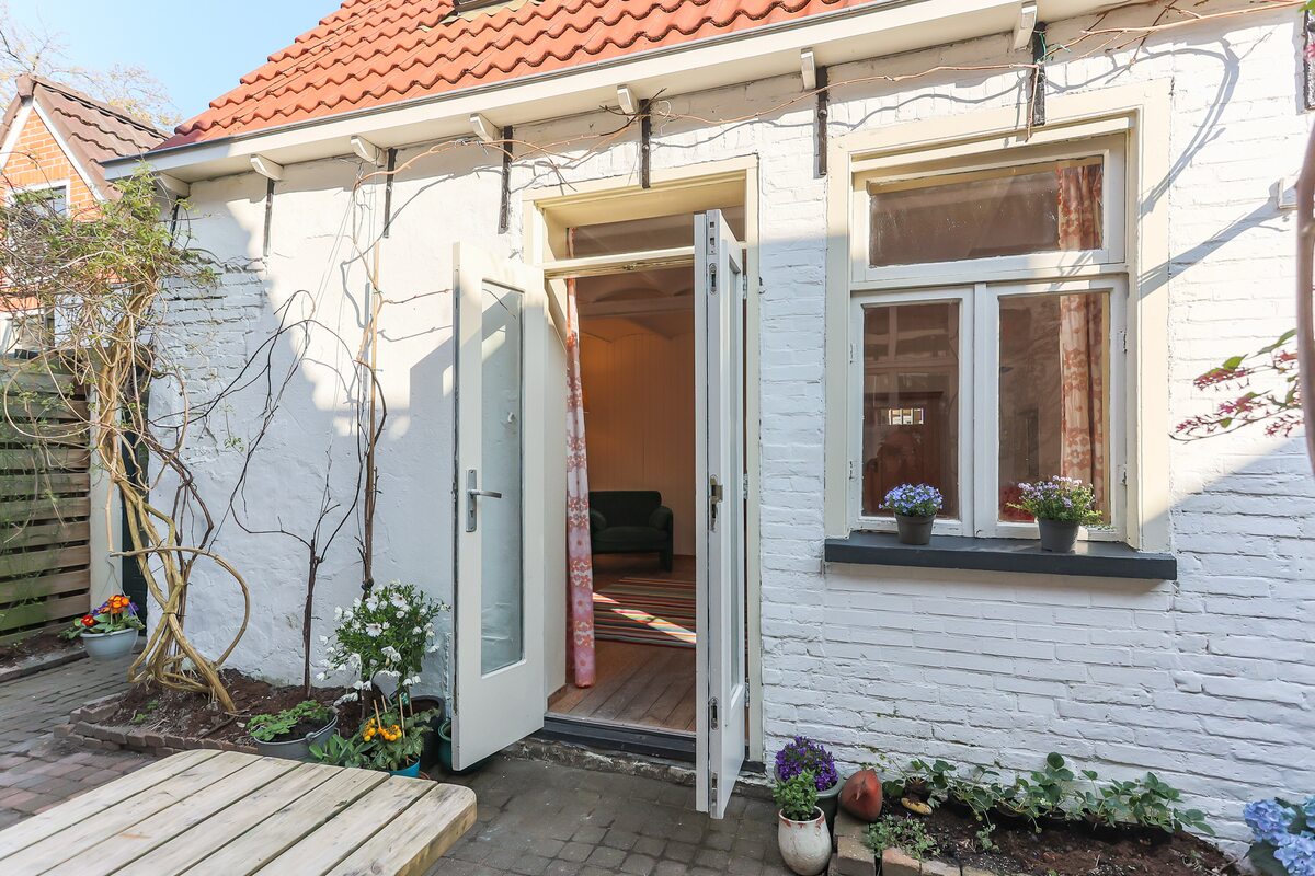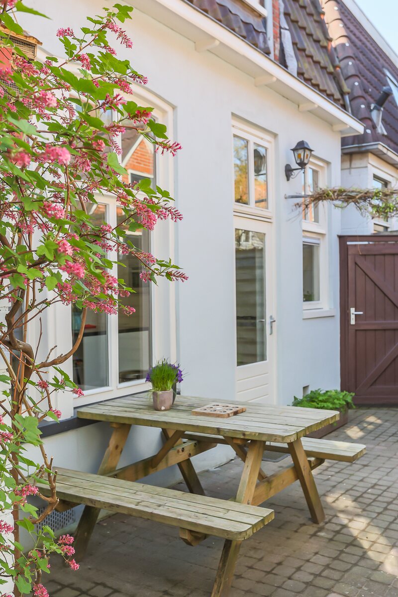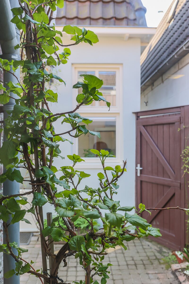 Tussen de 2 panden een leuke mediterraans aanvoelende tuin waar het heerlijk toeven is! Lekker beschut en privé, maar toch zonnig. Tuin is ca. 25 m2 groot. Het perceel is maar liefst 135 m2.
