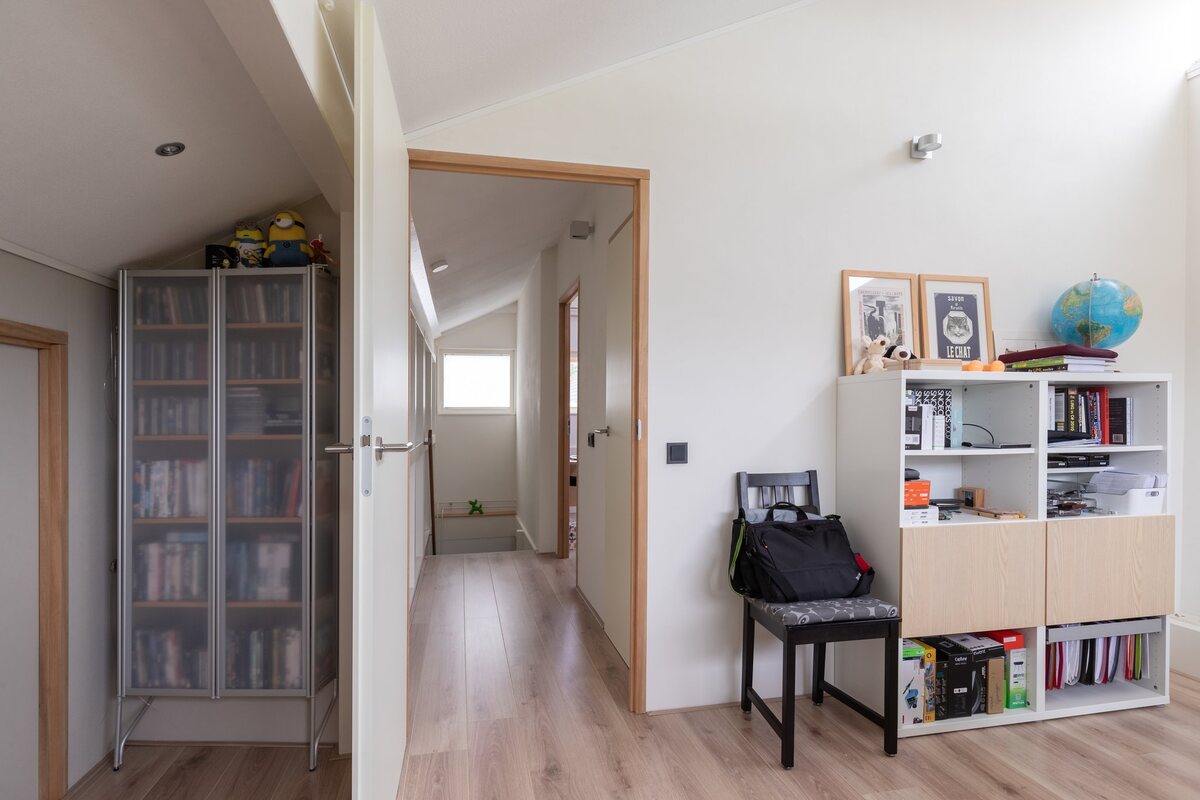 De woning is zeer goed onderhouden en heeft een open en speelse indeling. De aangebouwde garage is momenteel gesplitst in een berging en bijkeuken. Mogelijkheid tot levensloopbestendig wonen door een slaap- en badkamer op de begane grond.