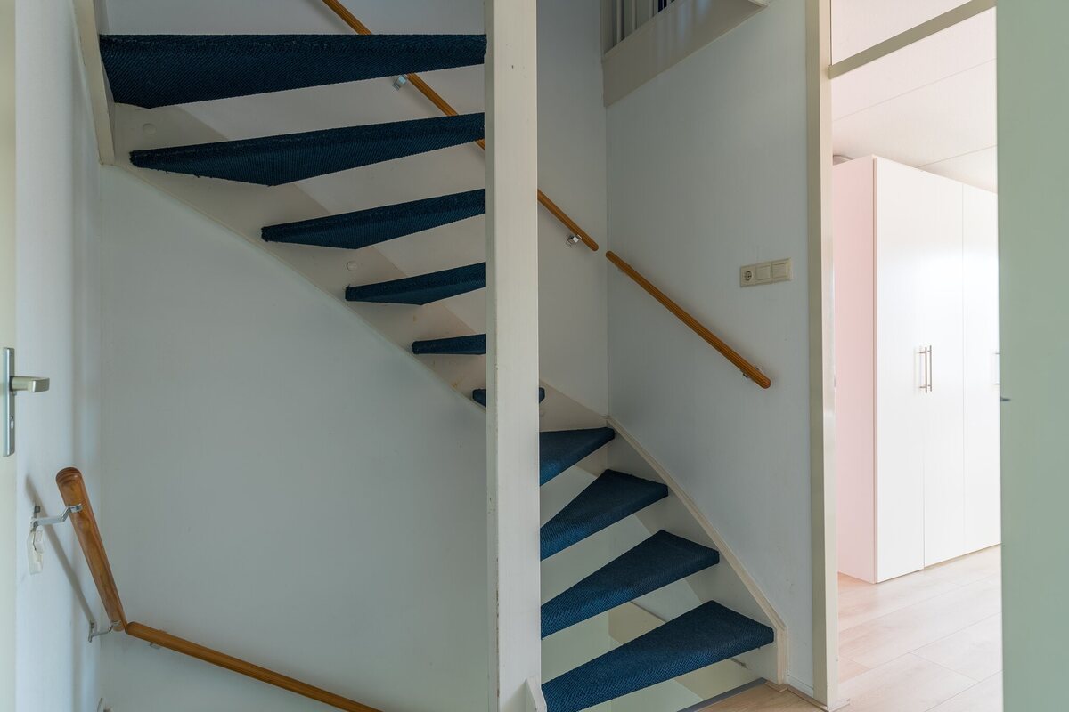 Begane grond: entree/hal, toilet, meterkast, L- vormige tuingerichte woonkamer (ca. 33 m2) met toegang tot de tuin en een moderne open keuken (voorzien van diverse inbouwapparatuur). Eerste verdieping: twee riante slaapkamers ca. 20 en 12 m²2, badkamer waarin een douche in bad, wastafel en een tweede toilet.Tweede verdieping: een flinke kamer ca. 14 m2 met wasruimte (4 m2) en veel bergruimte.