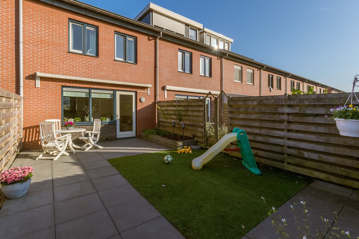 Voortuintje. Royale achtertuin, ca. 66 m2, met middag-/avondzon. De tuin is onderhoudsarm en heeft een achterom.