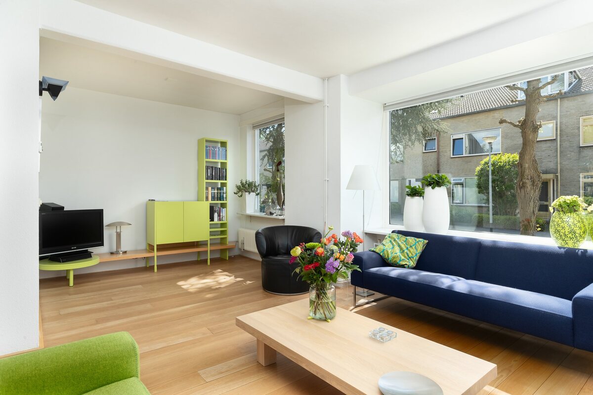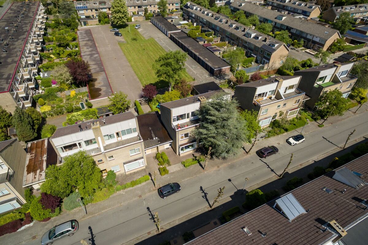 Indeling: Ruime entree/hal met garderobe, vaste wastafel en keurig toilet, doorloop naar de ruime bijkeuken en de woonkamer.Riante L-vormige woonkamer van maar liefst 42m² met erker, fraaie houten (beuken) vloer en een open keuken. Strak vormgegeven en lichte keuken (2014, ca. 8 m2) voorzien van alle gemakken: gaskookplaat met afzuigkap erboven, hetelucht oven, koelkast en vaatwasser. Loopdeur naar de tuin.Door deze indeling staat het koken en wonen op prettige manier met elkaar in verbinding. Royale bijkeuken (ca. 8 m2, voormalig garage) met opstelplaats voor de wasmachine en doorloop naar de berging (ca. 9 m2). Eerste verdieping: overloop, 3 slaapkamers van ca. 9m², 14 en 15m². Nette badkamer (ca. 7m2) voorzien van douche, wastafelmeubel en tweede toilet. Tweede verdieping: overloop met bergruimte en toegang tot twee kamers.Werkkamer aan de achterzijde (ca. 4 m2) en een royale slaapkamer van 17m² met toegang tot het dakterras (ca. 15 m2) welke is gelegen op het zonnige zuiden.