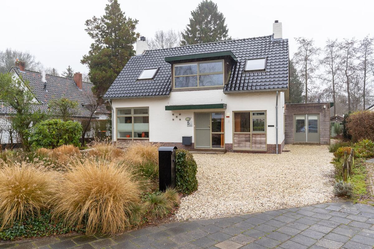 Buiten: Aan de voorzijde van de woning is een half ronde oprijlaan gerealiseerd waar meerdere auto's kunnen staan. De oprijlaan is voorzien van grind. Aan weerszijde van de woning kunt u de achtertuin bereiken. De besloten en zonnige achtertuin is voorzien van veel groen en biedt veel privacy. De zeer ruime en deels overdekte veranda aan de achterzijde van de woning biedt plaats om gedurende een groot deel van het jaar buiten te recreëren. Achter in de tuin staat nog een kleine berging voor de fietsen en tuingereedschap.