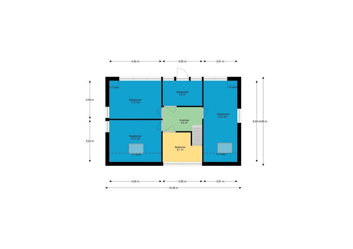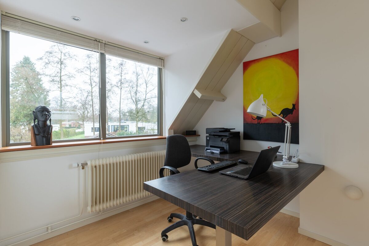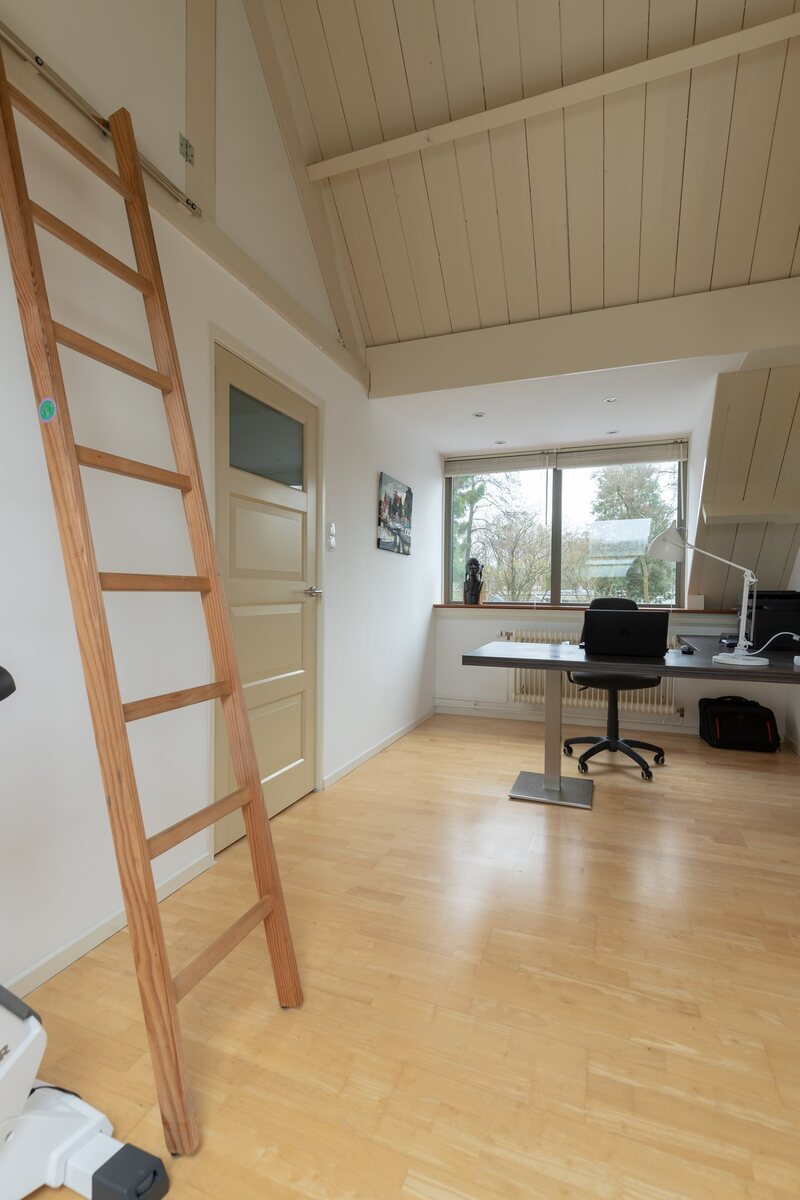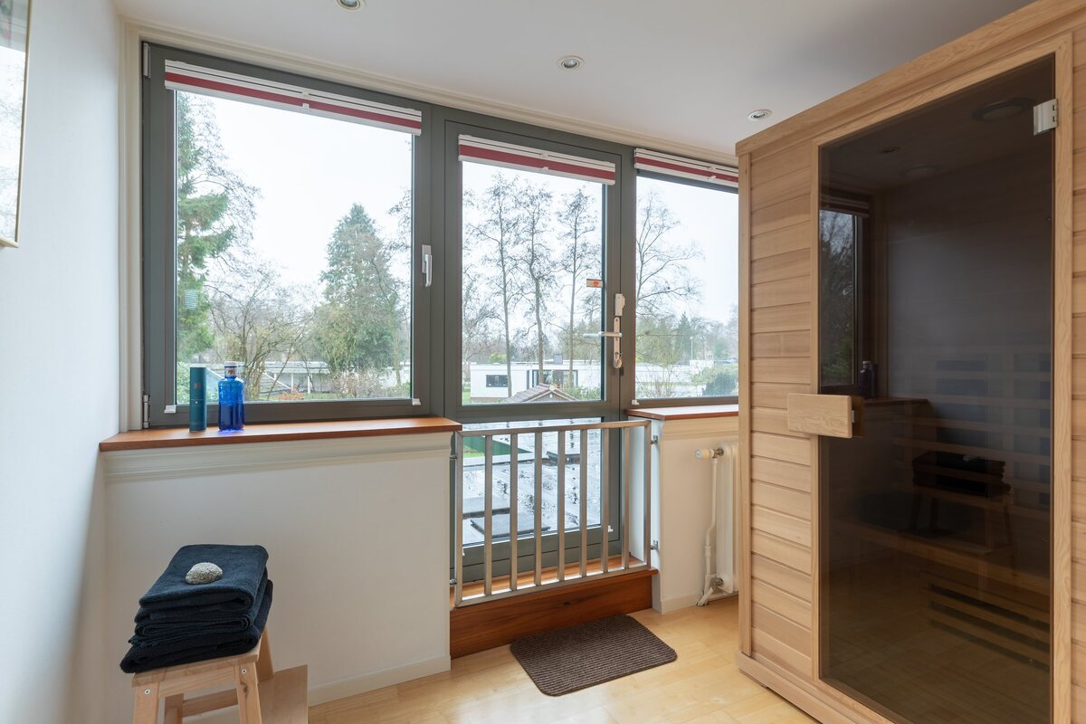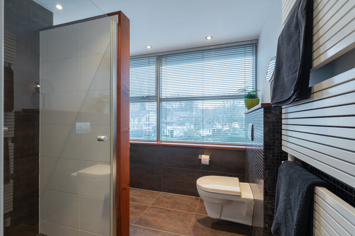 Verdieping: Op de verdieping bevinden zich vier slaapkamers, waarvan er één momenteel ingericht is als saunaruimte. De slaapkamers hebben een formaat van circa 14,3m², 11,5m², 10,2m² en 5,9m² groot. Over bijna de gehele achterkant is een groot dakkapel geplaatst. Tevens is er een moderne badkamer van circa 6,1m² aanwezig. De badkamer is voorzien van een toilet, inloopdouche en wastafelmeubel. Ook deze ruimte beschikt over een dakkapel, waardoor er geen schuine wanden zijn. Boven een groot deel van de slaapkamers is nog een ruime bergzolder aanwezig. Hier kunt u genoeg spullen kwijt die anders in het zicht blijven staan.