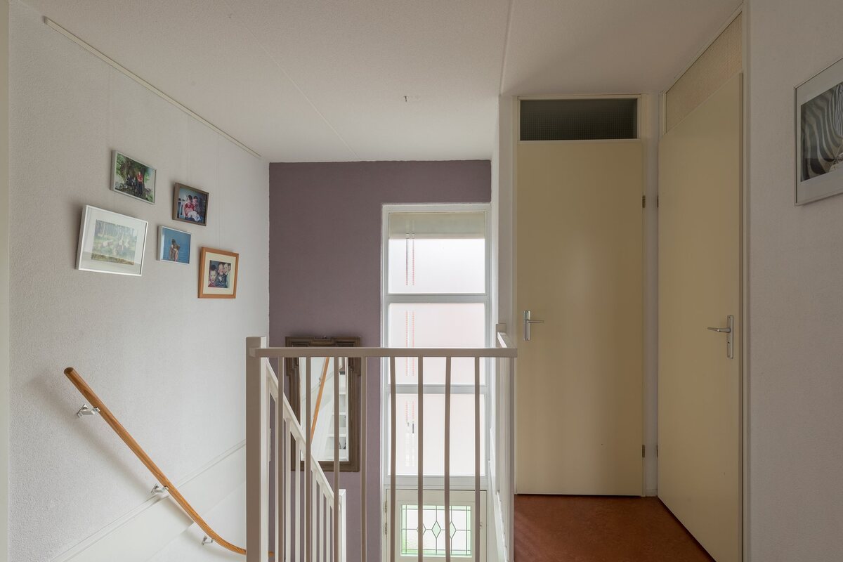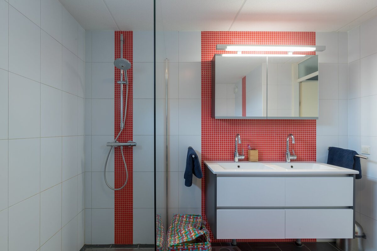 Eerste verdieping: overloop met vide en toegang tot 4 slaapkamers. De kamers zijn ca. 8.4m², 8.7m², 10m² en 13m² groot. De badkamer van ca. 6.9m², in 2013 volledig gemoderniseerd, beschikt over een dubbele wastafel, inloopdouche en een tweede toilet.