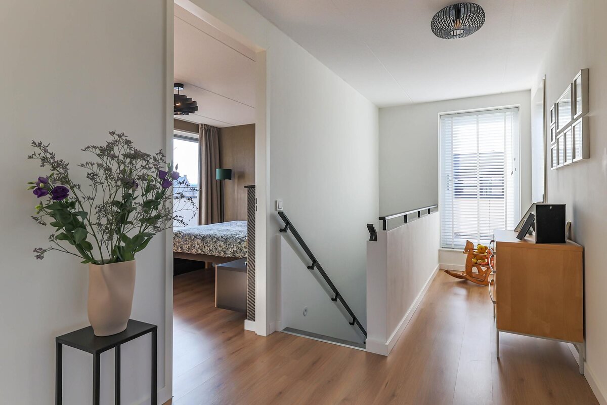 Verdieping met grote overloop en toegang tot alle vertrekken en het dakterras.Vier riante slaapkamers van 13, 14, 15 en 17 m2, allen voorzien van laminaat. De achtergelegen slaapkamers hebben beide toegang tot het heerlijke dakterras.Moderne en sfeervolle badkamer (ca.9 m2) met vloerverwarming, inloopdouche, wastafelmeubel en toilet.Groot dakterras op zuid van ca. 40 m2.