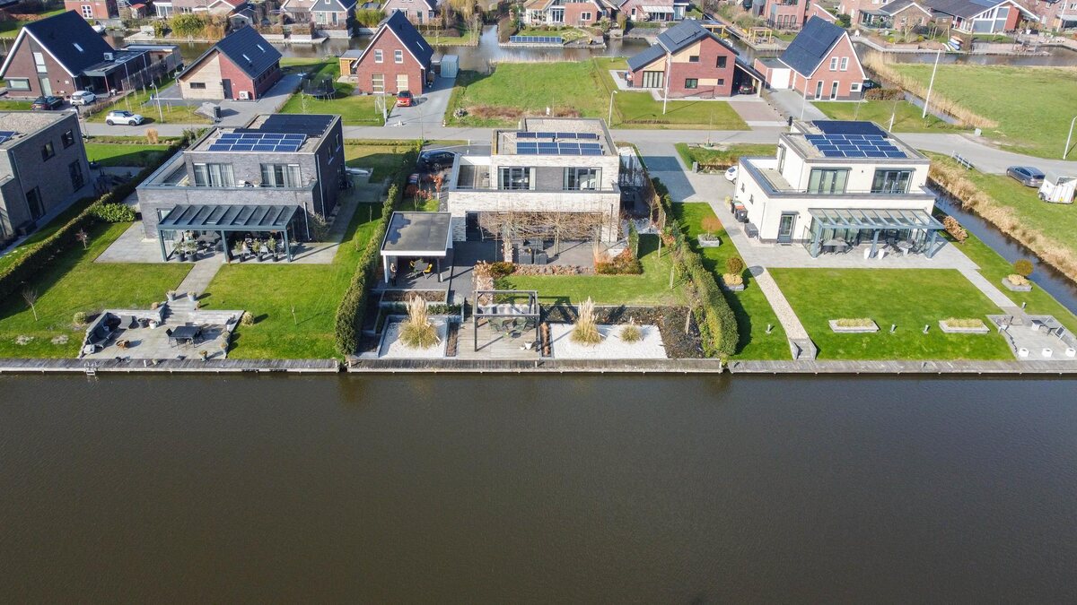 Prachtige gelegen, moderne en doordachte watervilla met rondom gelegen en zonovergoten tuin, eigen aanlegsteiger met vaarverbinding naar het Oldambtmeer en veel parkeerruimte op eigen terrein. Unieke panoramische woonkamer met luxe open woonkeuken, vier slaapkamers, fraaie badkamer en riant dakterras maken deze woning tot een liefhebbersobject. Daarnaast is er goed nagedacht over energiezuinigheid: volledig geïsoleerd, energielabel A, 12 zonnepanelen en vloerverwarming op de begane grond (m.u.v. bijkeuken). De woning is voorzien van kunststof kozijnen en derhalve onderhoudsarm.Indeling: