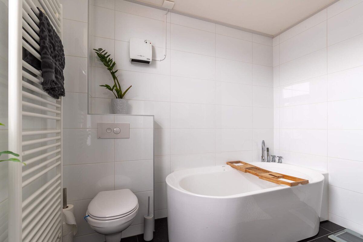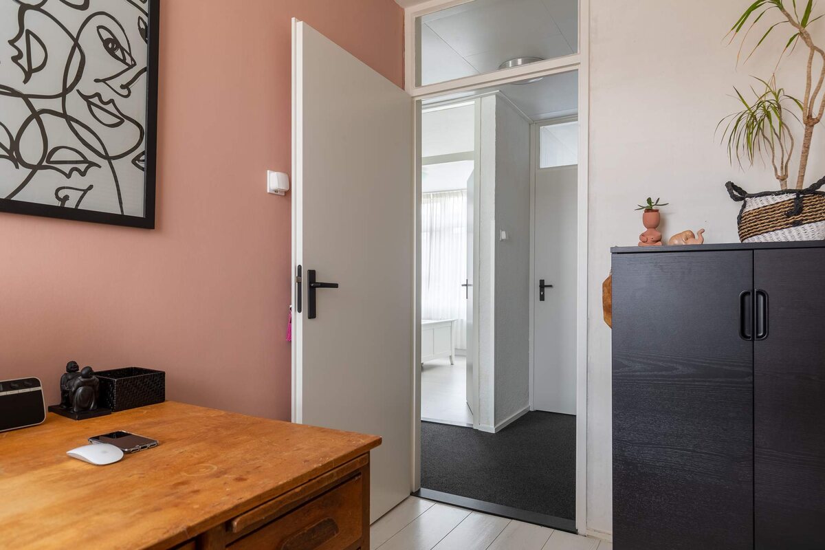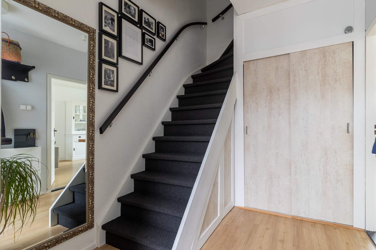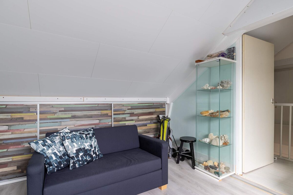 Begane grond: entree, ruime hal met hangend toilet. Lichte en verzorgde woonkamer van ca. 36 m2 met open keuken (met schiereiland en uiteraard v.v. inbouwapparatuur) en openslaande tuindeuren. Vloerverwarming met pvc-vloer. Bijkeuken met wasmachine aansluiting en toegang naar de achtertuin.Eerste verdieping: overloop, 3 slaapkamers van ca. (7, 11 en 12 m2). Keurige badkamer (2013) voorzien van douche, 2e toilet, ligbad en wastafel.Tweede verdieping: via vaste trap: overloop, bergruimte en een praktische vierde slaapkamer van ruim 10 m2.