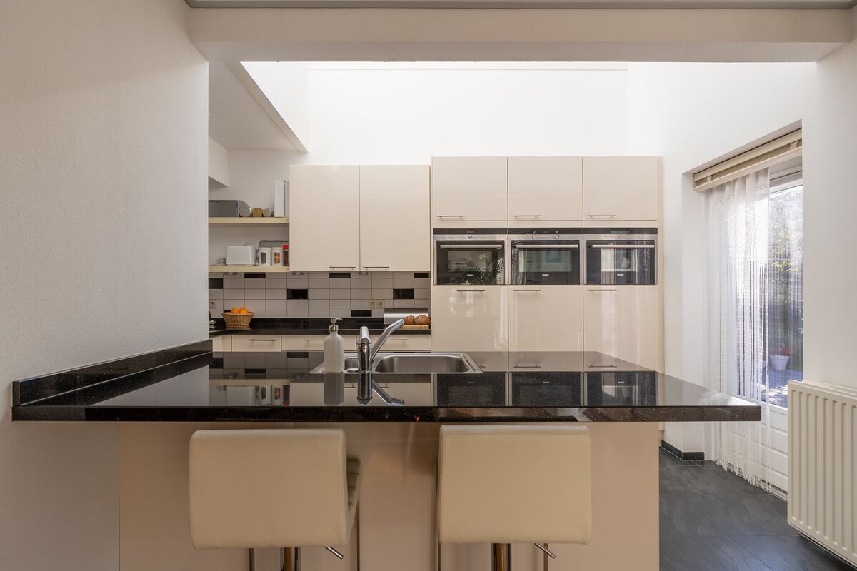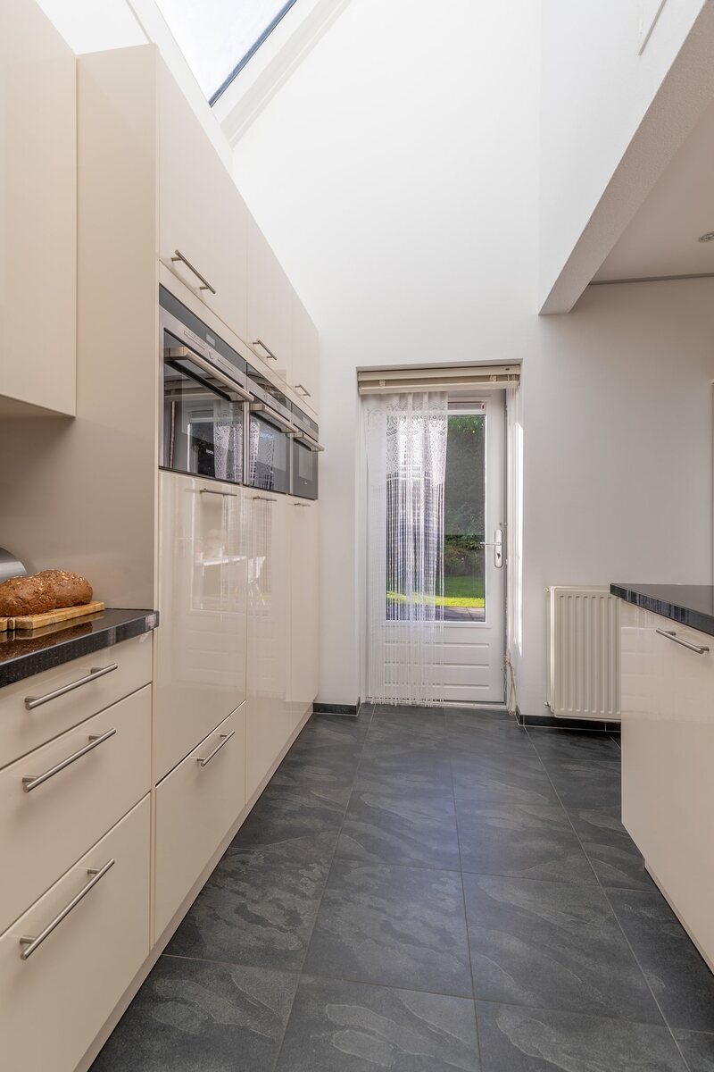 - keuken met tegelvloer en vloerverwarming;