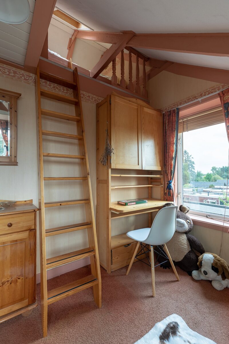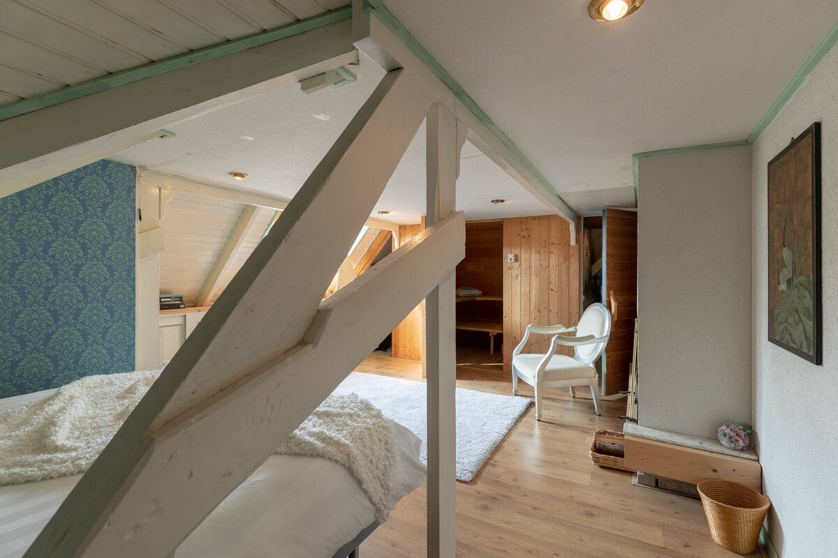 Op de tweede verdieping bevinden zich drie slaapkamers van ca. 6m², 8m² en 20m², waarvan één kamer nog een klein slaapzoldertje heeft. De grootste slaapkamer beschikt over een ingebouwde sauna, een open haard en diverse inbouwkasten. Via een vlizotrap is de bergzolder nog te bereiken. Dit kan ook nog via de vaste trap. De badkamer is voorzien van een wastafel, toilet, whirlpool, een stoomdouche en vloerverwarming.