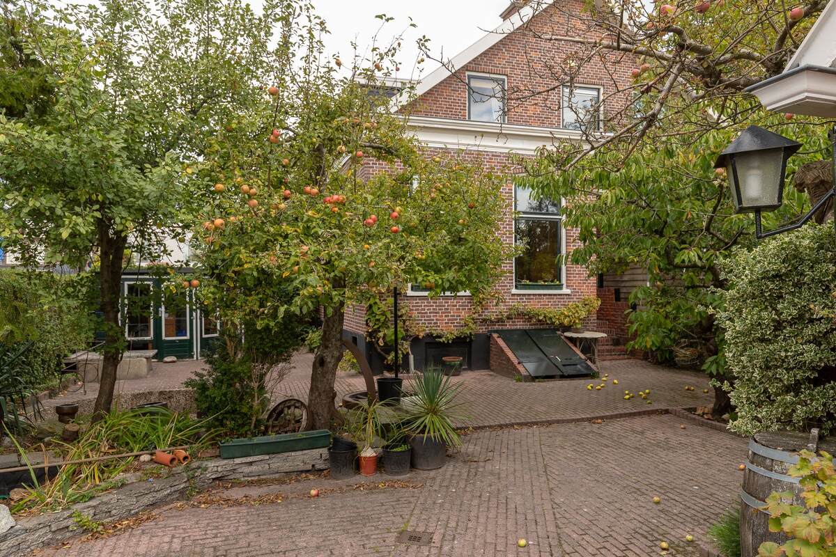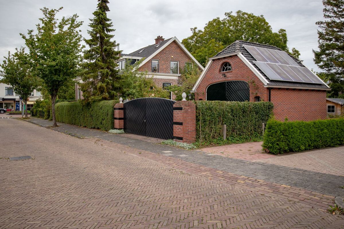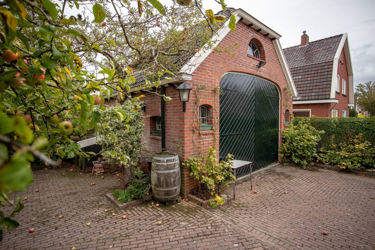 Aan de achterzijde staat nog eens grote stenen garage met vliering. De garage is groot genoeg om een caravan of camper te stallen. Aan de voor-, zij- en achterkant ligt een goed onderhouden tuin met zon ligging op het zuiden. Tevens bevindt zich hier nog een toegang tot een tweede kelder met daarin de C.V. ketel.
