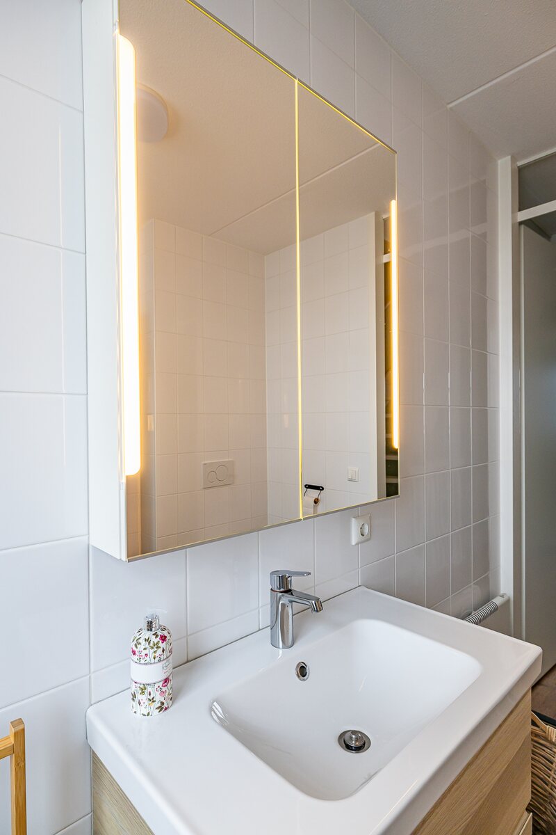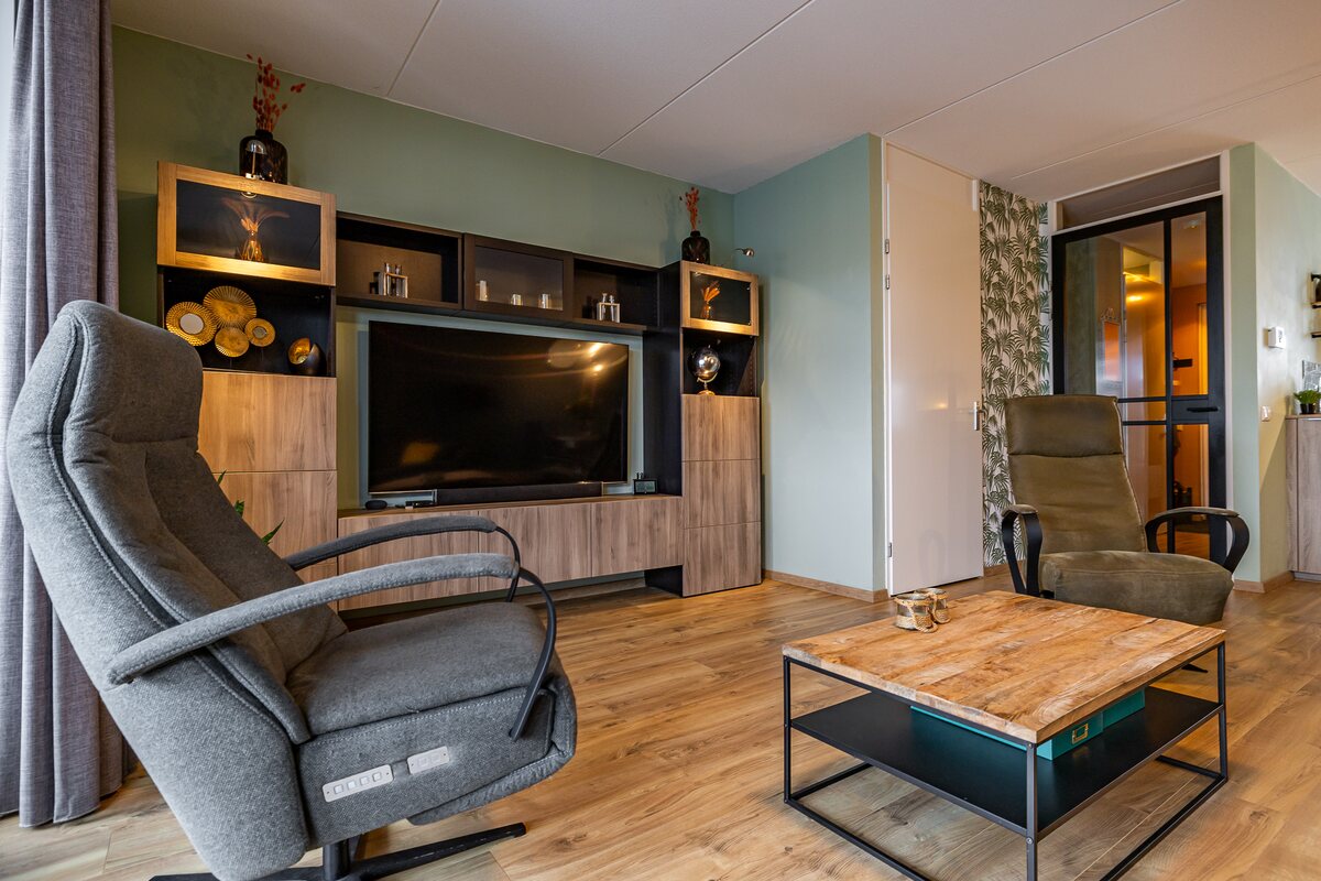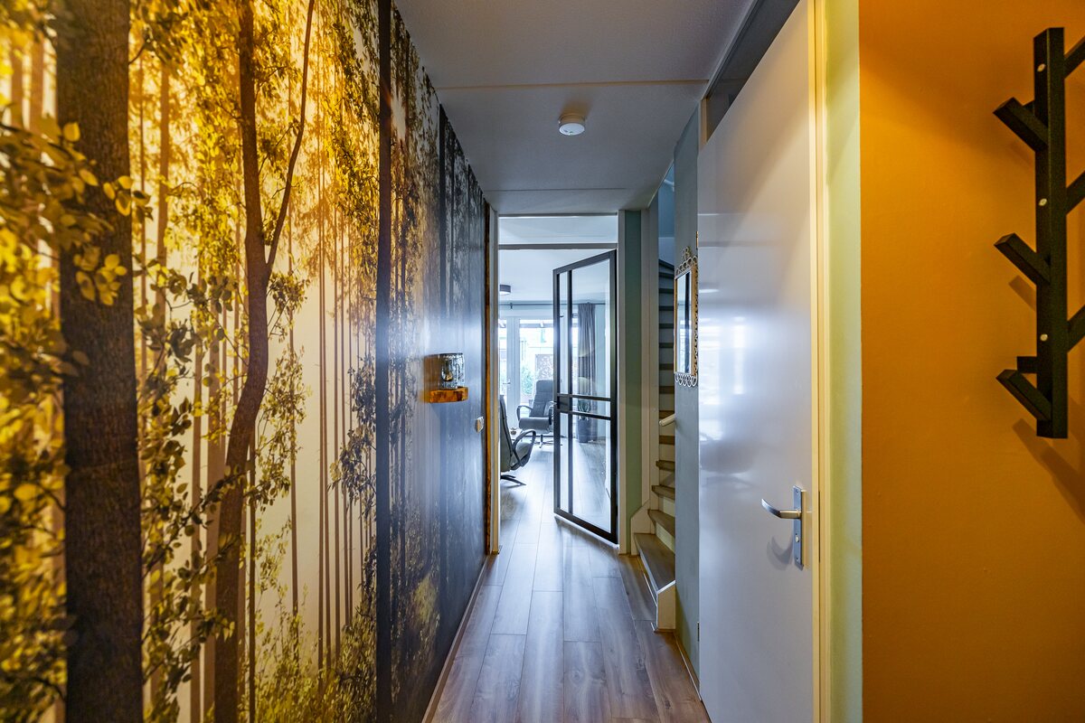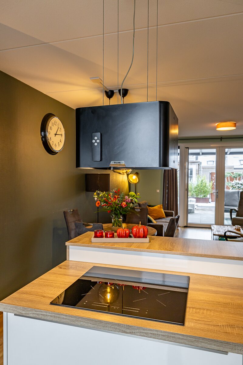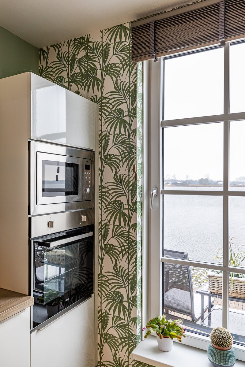 Hal/entree met trapopgang, modern toilet v.v. wandcloset, meterkast en toegang tot de woonkamer met open keuken.Tuingerichte woonkamer met open keuken (totaal ca. 37 m2). De woonkamer heeft openslaande deuren naar de veranda en tuin. Op de (verwarmde) vloer ligt kwaliteitslaminaat.Luxe inbouwkeuken met leuke kookbar voorzien van inductiekookplaat met hangende design afzuigkap. Een wandmeubel met vaatwasser, oven, magnetron en een losse koel-/vriescombi. De keuken heeft direct zicht op het Meer!