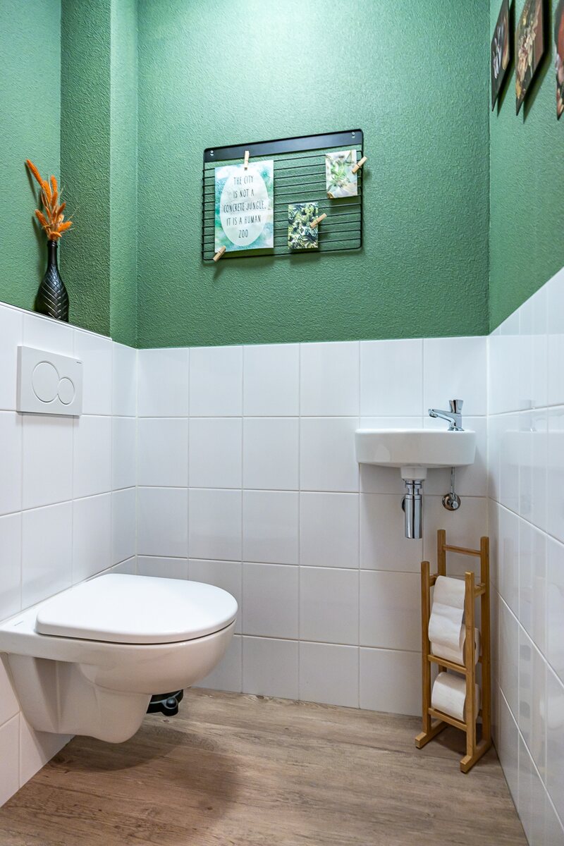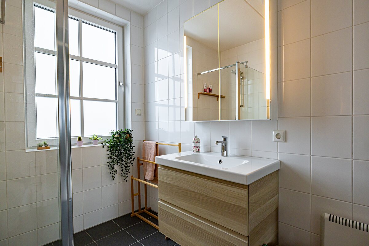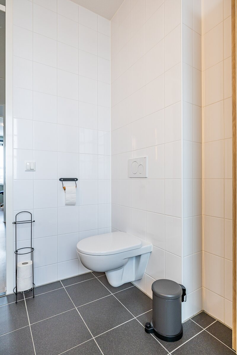 1e verdieping: overloop.Drie slaapkamers van ca. 14, 13 en 7 m², allen voorzien van laminaat en vloerverwarming.Moderne badkamer (ca. 6 m²) eveneens voorzien van vloerverwarming met inloopdouche, wastafelmeubel en 2e wandcloset.