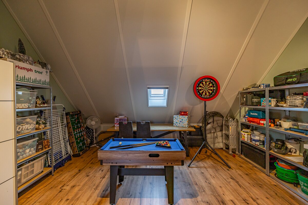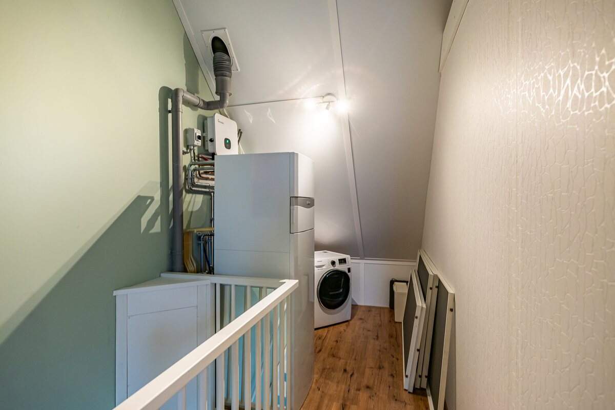 2e verdieping: bereikbaar middels vaste trap: zeer royale zolder met ingebouwde vierde slaapkamer (ca. 10 m2), opstelplaats van de binnen-unit warmtepomp + warmwatervat en de witgoedaansluiting.