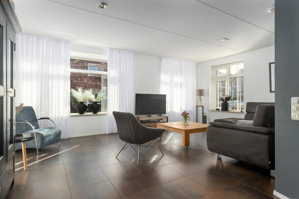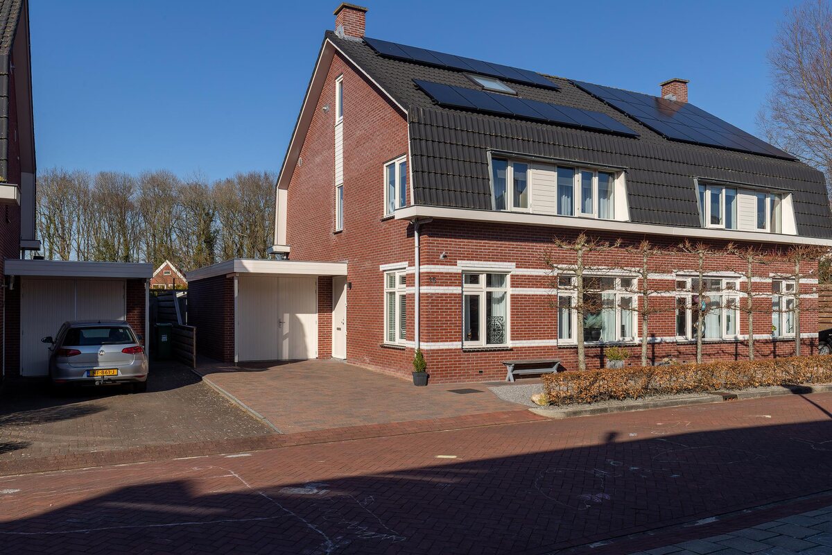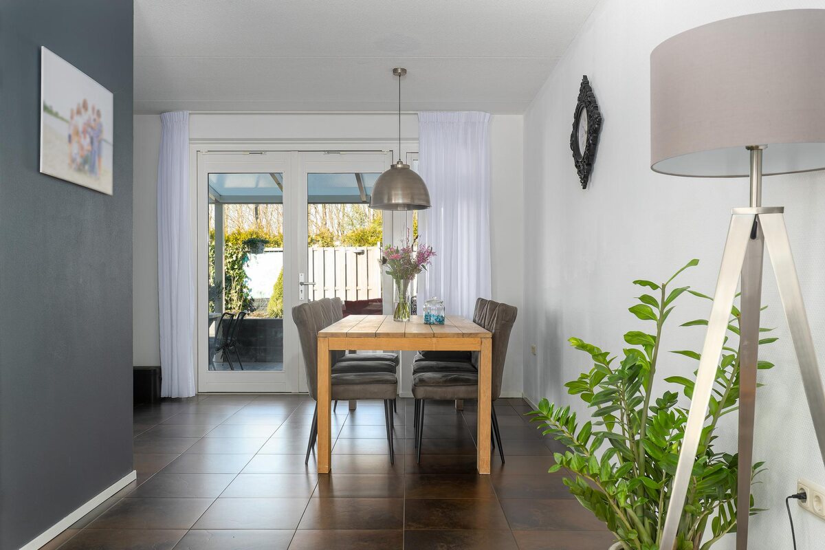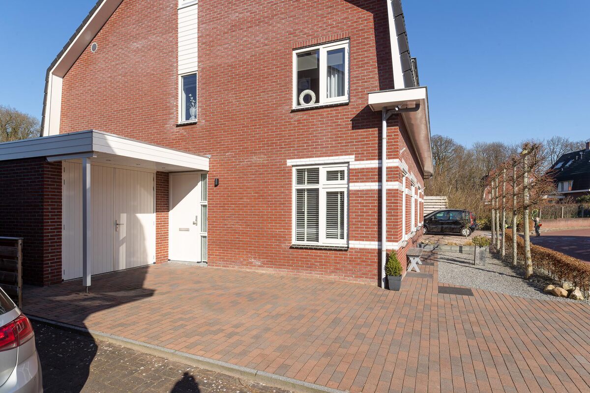 Tuin: de achtertuin is gelegen op het noordwesten en biedt veel privacy. Over de gehele breedte van de woning is een overkapping geplaatst. Zodoende kan men ook bij minder goed weer nog buiten zitten. Achterin de tuin staat nog een kleine houten berging van ca. 3 m² groot. De tuin is via een zijpad te bereiken.