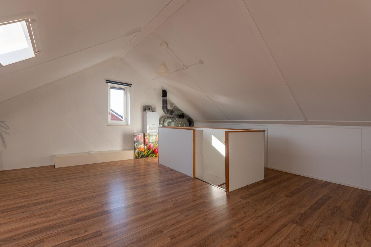 Tweede verdieping: multifunctionele ruimte van ca. 33 m² groot. Aan de voor- en achterzijde zijn knieschotten aanwezig voor extra bergruimte. Deze ruimte is vrij eenvoudig in te delen in extra vertrekken.