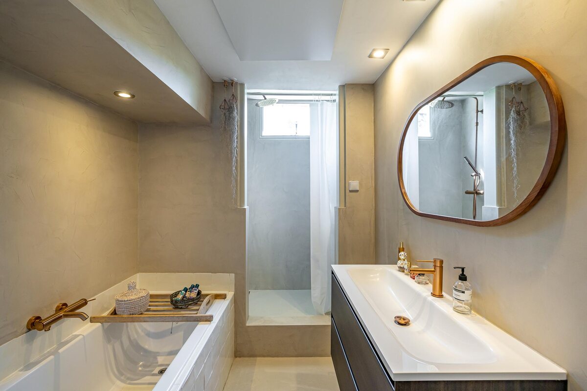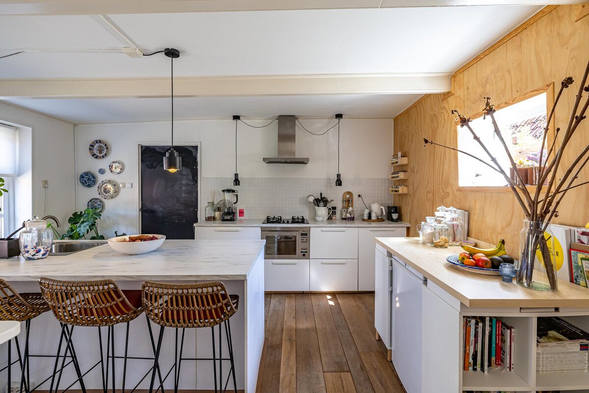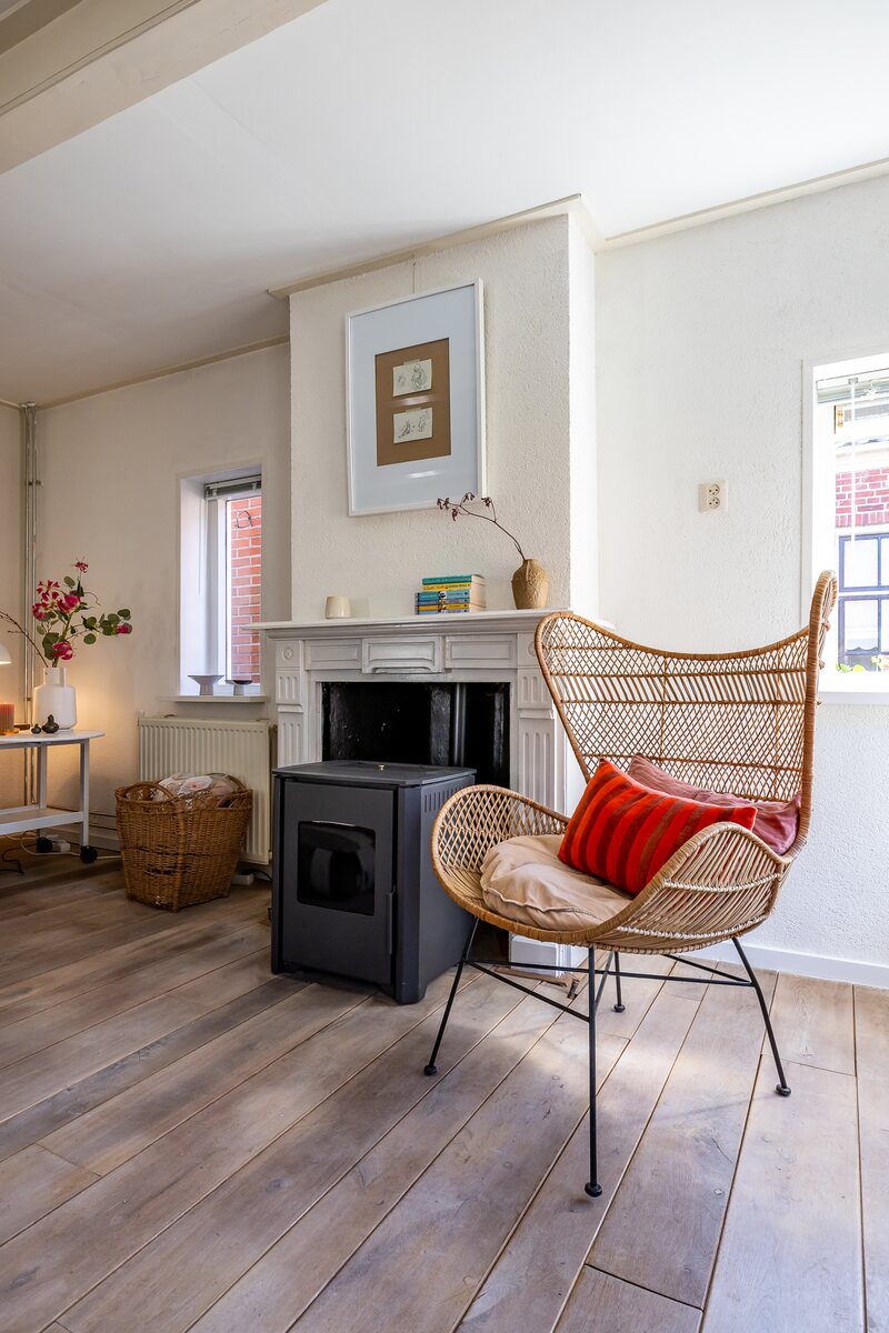 Begane grond: Via de entree met meterkast en trapopgang kom je in de woonkamer, deze is samen met de woonkeuken 45 m². De mooie schouw met pellet kachel in de woonkamer zorgt voor een gezellige, warme sfeer en er is een fijn ruimtelijk gevoel door het fraaie lichtinval. De prachtige woonkeuken is in 2020 geplaatst en is voorzien van inbouwapparatuur, veel kastruimte en een kookeiland met een gezellige bar. Hier kun je heerlijk kokkerellen terwijl je in contact blijft met gasten aan de bar, aan de eettafel of in de woonkamer. Via een tussenhal zijn het toilet en de badkamer bereikbaar. Het moderne zwevend toilet is in 2023 geplaatst. De stijlvolle moderne badkamer is 5 m², is in 2023 geplaatst en beschikt over een ligbad, wastafelmeubel en inloopdouche; een plaatje! Via de hal met de achterdeur naar de tuin en cv-opstelling, heb je via een tussenhal toegang tot de praktische wasruimte van 4 m² met wasmachine-aansluiting en tot de slaapkamer. De prachtige sfeervolle slaapkamer is 12 m² en via een schuifpui heb je toegang tot de tuin.Eerste verdieping: Via de overloop bereik je de twee (slaap)kamers met een vloeroppervlak van 19 en 17 m², echter de stahoogte in het midden van de kamers is circa 2 meter. Met een of twee dakkapel(len) is hier echter de mogelijkheid tot het vergroten van de stahoogte en het woonoppervlak.